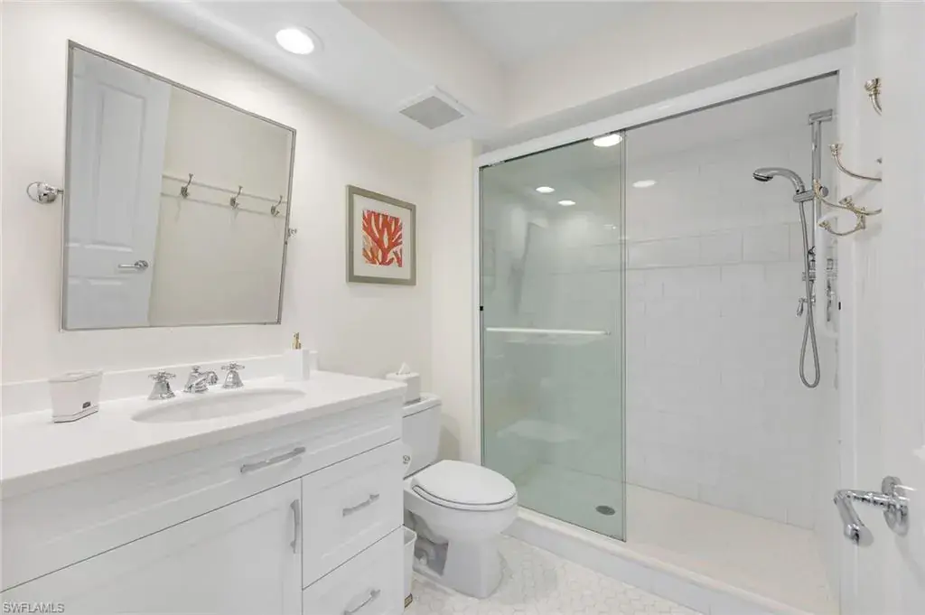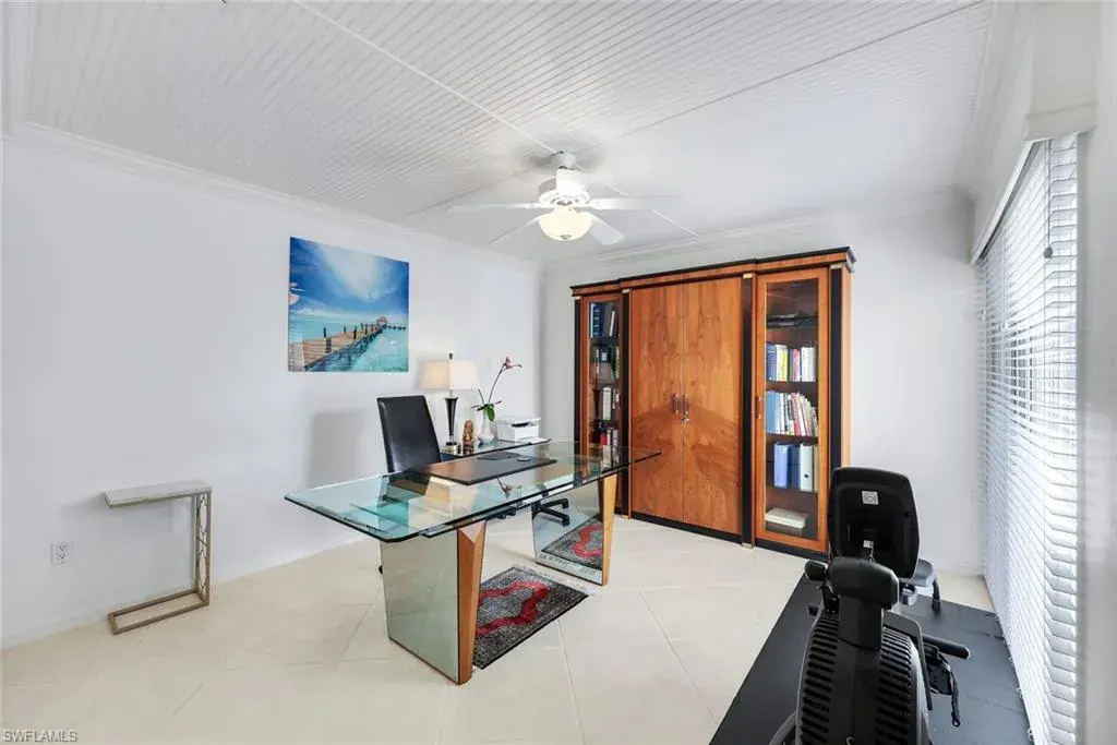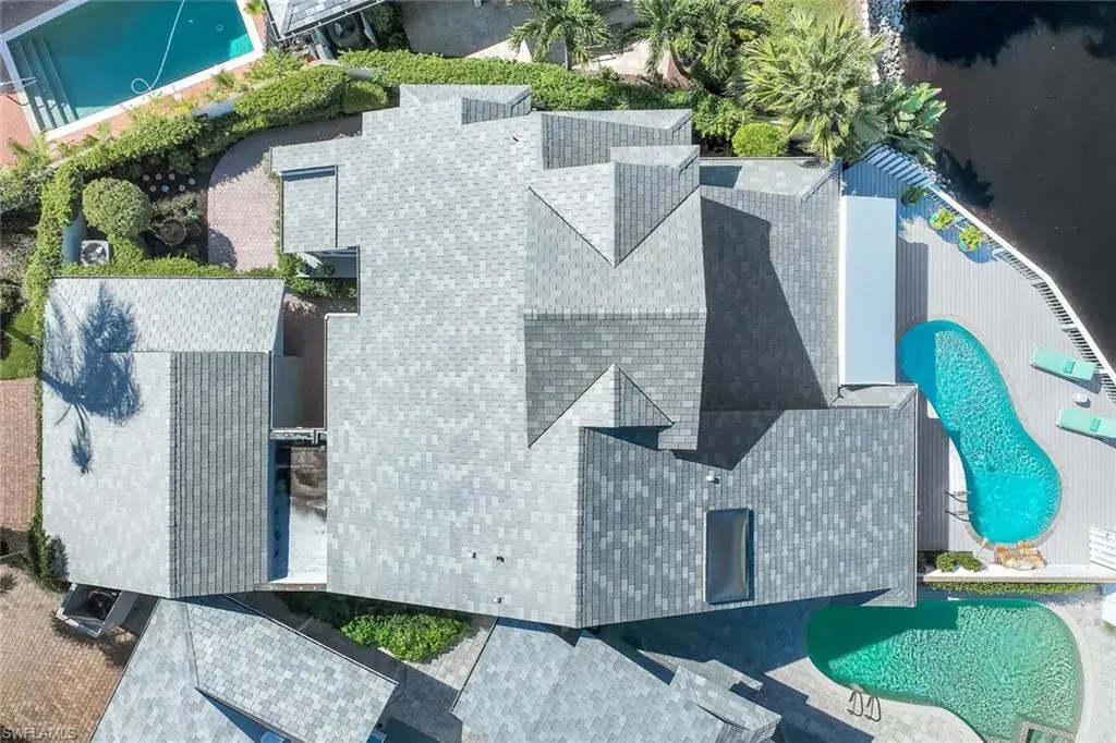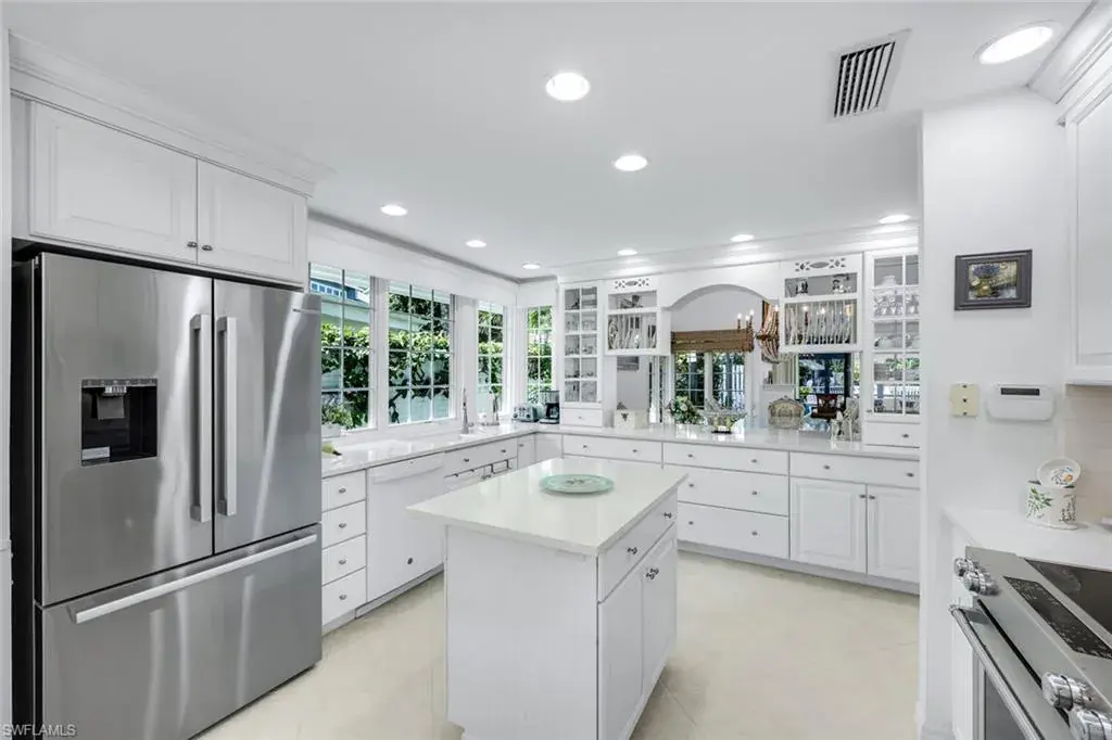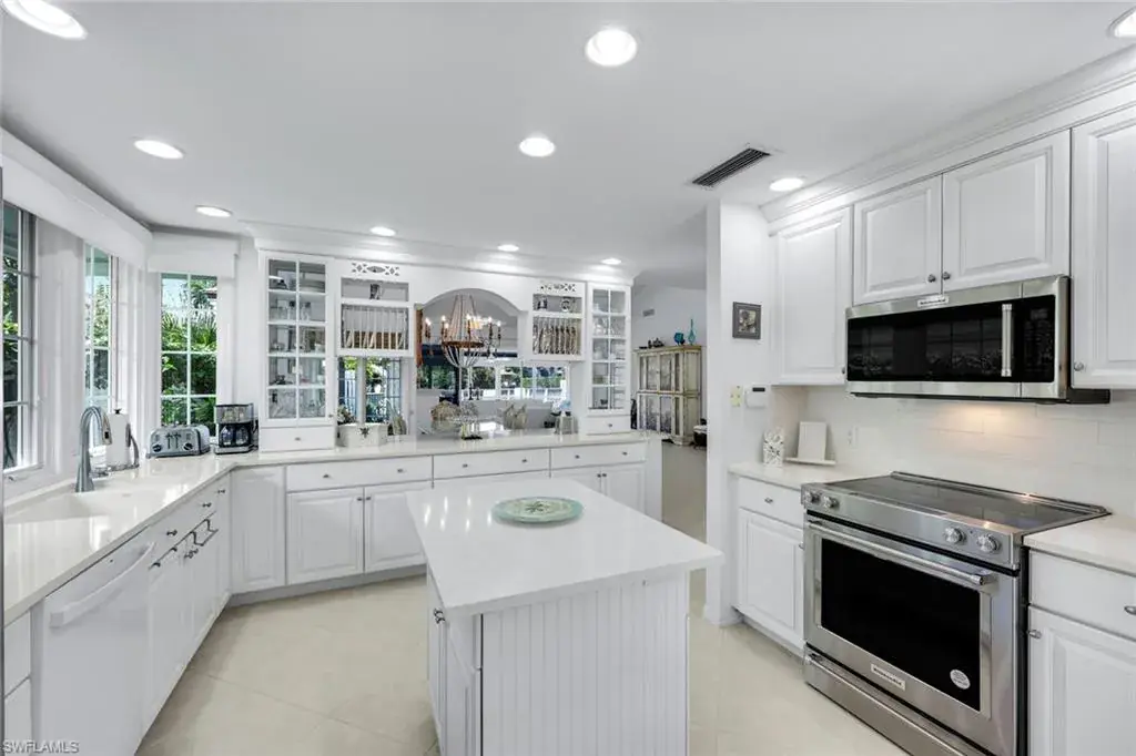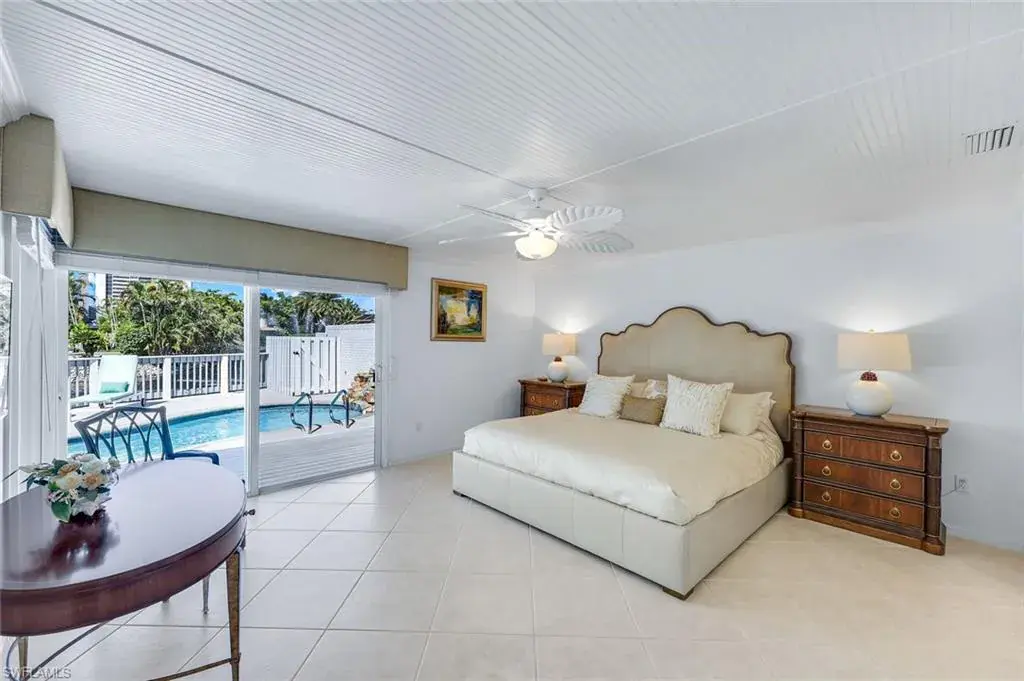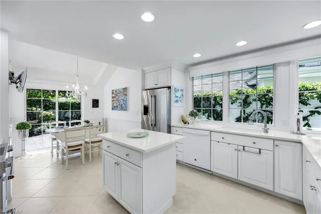 Nestled in the prestigious Bridge Way Villas enclave of Pelican Bay, this exquisite single story lakefront villa is a true haven for those who cherish stunning views and outdoor living. Experience the very best of Naples’ upscale coastal lifestyle with a tranquil oasis designed for relaxation and entertaining. The heart of this home is its spectacular outdoor space, where a very spacious covered lanai overlooks a large pool deck and a custom free-form pool with a built-in cascading water fountain. This is a private sanctuary for sun-soaked afternoons and quiet evenings. The coveted western exposure provides this home with gorgeous sunset skies that paint the tranquil lake and fountain view with vibrant color every evening. You will love that these exceptional, breathtaking views are featured from the main living area, spacious living room, and the master bedroom. The interior of this beautifully maintained 3-bedroom, 2.5-bath residence provides 2,100 square feet of extraordinary living space in this single story home with no steps to navigate. The home features an open-concept layout with soaring 20-foot vaulted ceilings, electric fireplace to enjoin the winter months and a magnificent kitchen with stainless steel appliances including a new range and microwave, quartz countertops, and a morning room. Master bath is a relaxing retreat with a walk- in shower, a freestanding soaking tub and walk in closet. Recent updates include a new roof in 2021, new washer and dryer and new air-conditioning to the two-car garage. Living here grants access to all Pelican Bay privileges, including nearly three miles of private white-sand beaches, beachfront dining at two private restaurants, tennis and pickleball courts, a fitness center, walking trails, and kayaking. The villa is located on a quiet cul-de-sac and is a short walk to Waterside Shops and Artis-Naples.