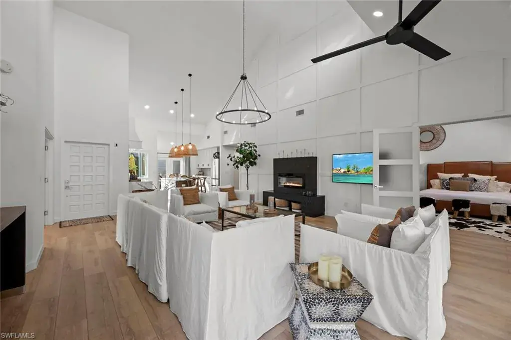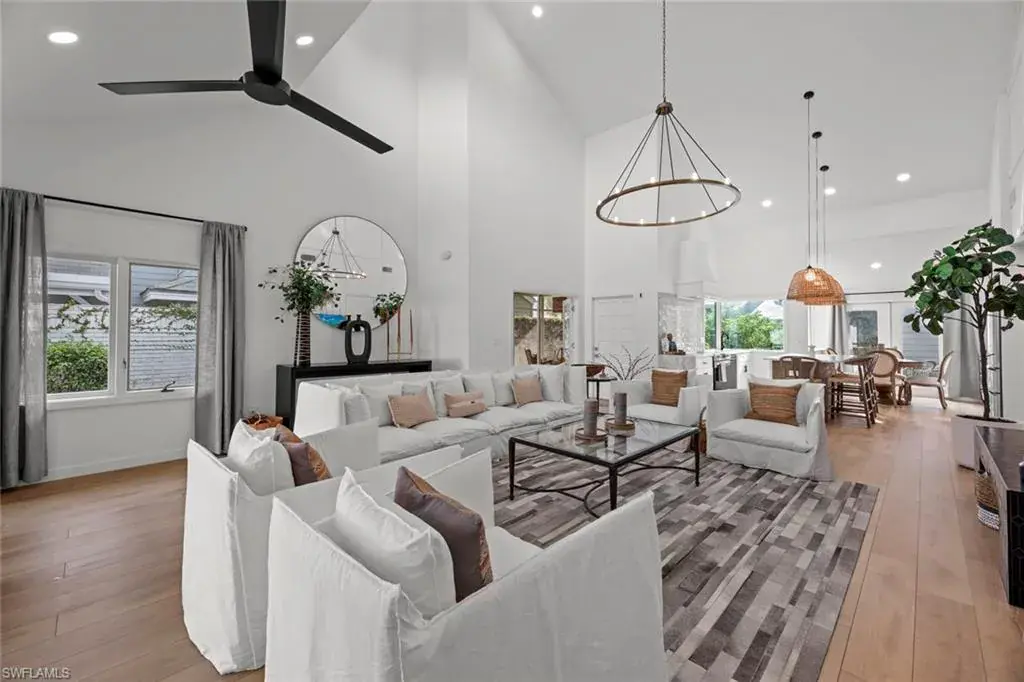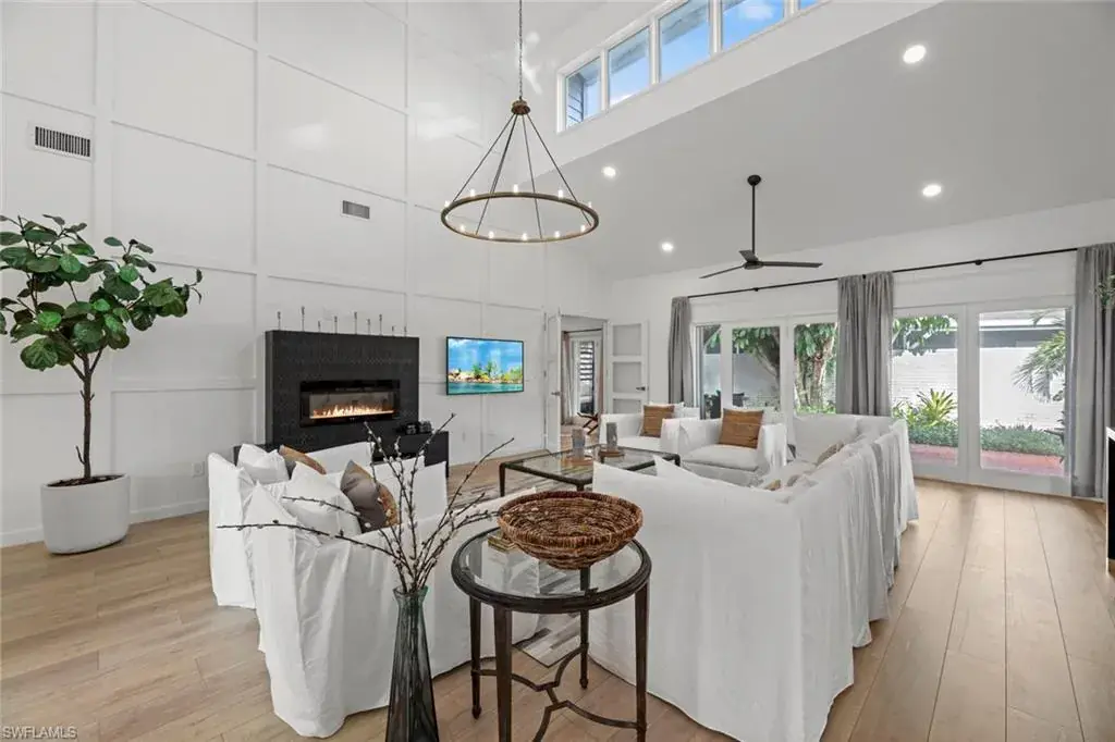 UNIQUE COASTAL MODERN VIBE IN PELICAN BAY. This FULLY RENOVATED and TURNKEY FURNISHED Detached Villa has Soaring Ceilings with Skylights and Transom windows to bring in the abundant natural light. BRAND NEW in 2023 is the ROOF, A/C, POOL PUMP, COLORED REMOTE POOL LIGHTS and GARDEN LIGHTS. Enjoy your enclave of your Private Pool out front and Entertain in privacy in your Covered Grotto Sitting Area in the back. There is also a 2 car garage with pavers patio driveway. Bridgeway Villas is such a Spectacular Location as you are a short walk to Waterside Shops and Artis-Naples.