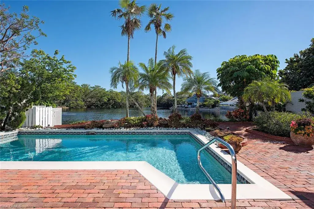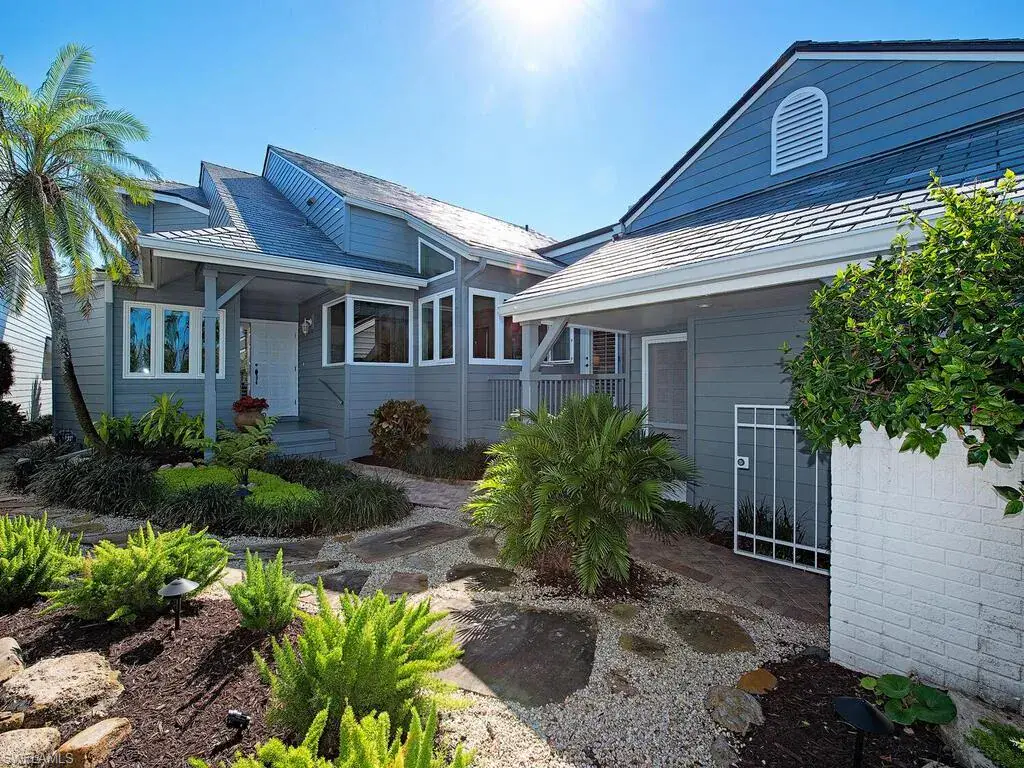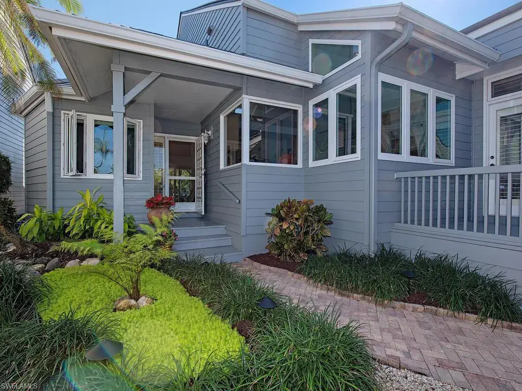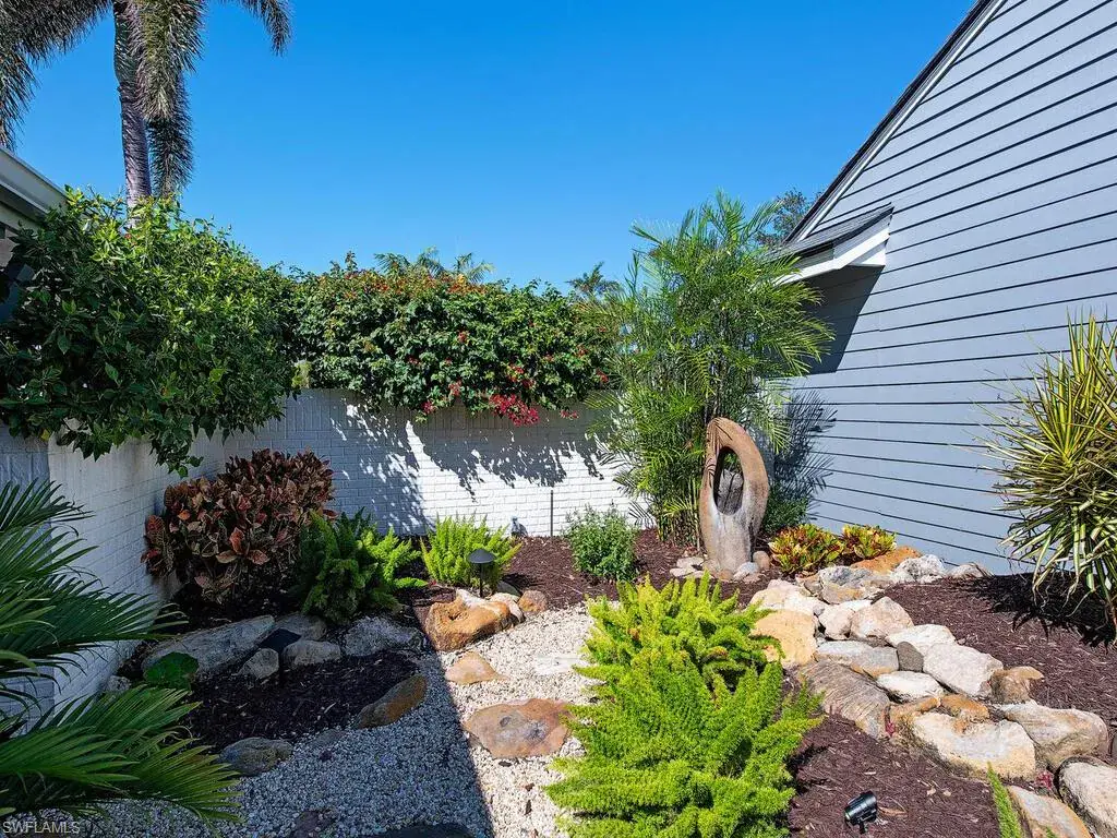 A very special detached Bridgeway Villa can now be yours. Recently updated with NEW furnishings included with the home, 656 Bridgeway was the site chosen as the Model when this community was built. As you approach the free-standing villa, reminiscent of Cape Cod, a winding flat-stone path leads you through the charming courtyard, past a soothing fountain surrounded by verdant tropical plants and trees. Southern exposure assures continuous sun on the spacious terrace, where the generously sized heated pool overlooks the entire pond. Additional paths guide you around the sparkling pool. Lush orchids tumble from the palms and stag-horn ferns. Dining al fresco is enhanced by the large pond fountain, beautifully lit at night.