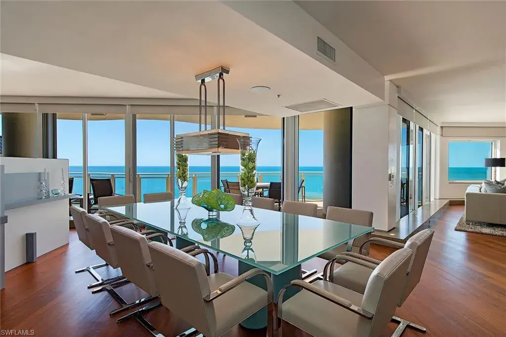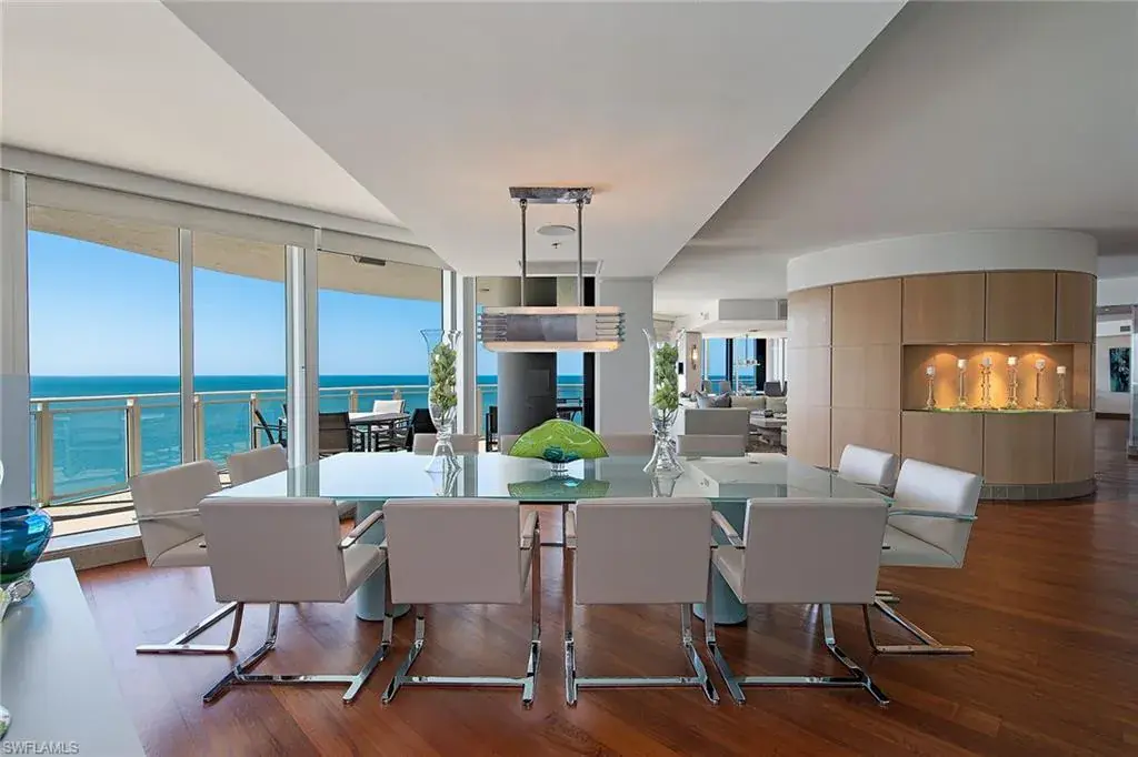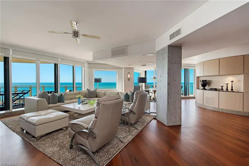Welcome to the pinnacle of coastal luxury. This rarely available penthouse atop The Brighton at Bay Colony offers more than 6,100 square feet of refined living with panoramic Gulf views stretching from Park Shore to Sanibel Island. Accessed by a private, secured elevator, this top-floor sanctuary seamlessly blends elegance, comfort and security. Inside, you’ll find four spacious bedrooms, a den, four full baths and two half baths, designed to accommodate grand entertaining and private relaxation. Rich teak floors run throughout the expansive living spaces, setting the tone for the sleek, chef-inspired kitchen outfitted with premium German appliances and stainless-steel finishes. Enjoy effortless living with abundant storage, dual washers and dryers, electric sunshades, hurricane-rated windows, and full storm protection via electric shutters. Go out onto your private rooftop terrace with all new decking, an outdoor retreat, featuring a summer kitchen, private spa and half bath, ideal for sunset cocktails or starlit soirees. This residence also includes two dedicated parking spaces and a private poolside cabana for those wonderful Naples days. The building itself has recently completed a sophisticated lobby renovation and amenity upgrades to include a completely remastered lobby, social room with catering kitchen, fitness center, updated elevators and a new roof. The front entrance and pool deck refurbishment underway is scheduled for completion by April 2026, all fully paid for by the owner. All that’s left for you to do is move in and enjoy the height of coastal living.