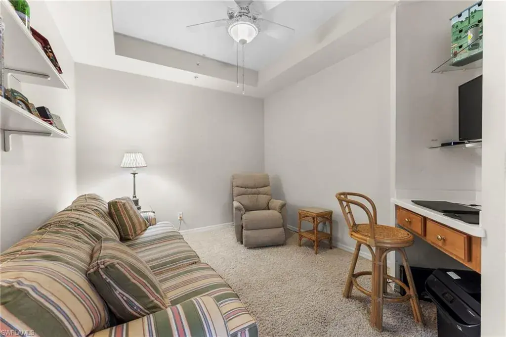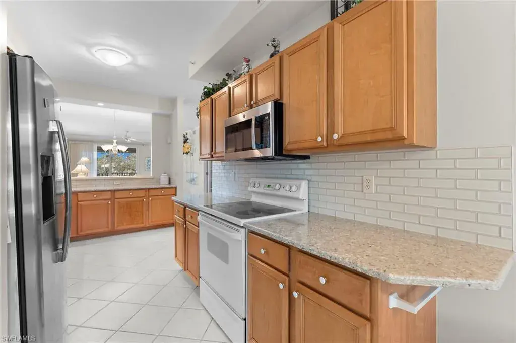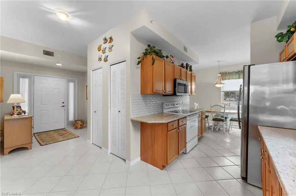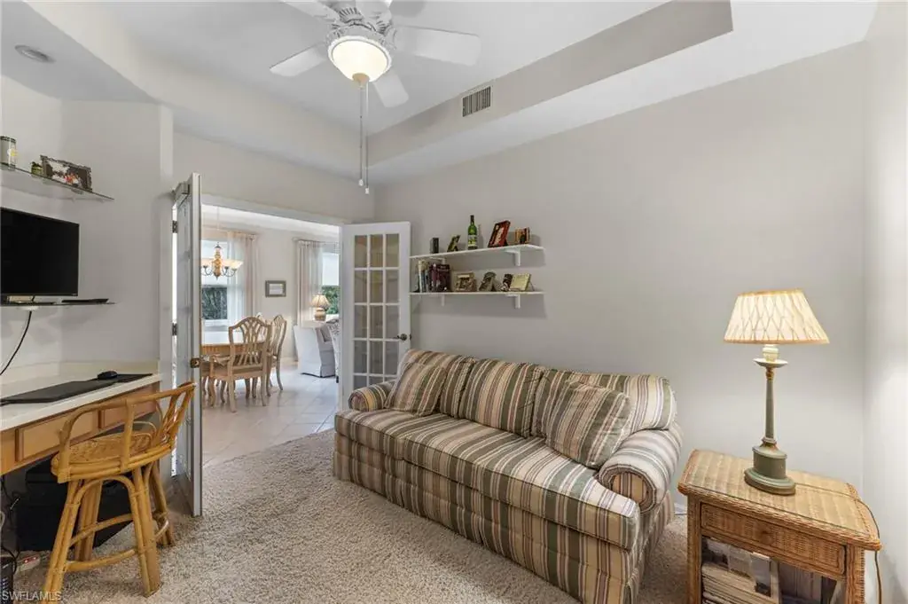 Enjoy the best of the Naples lifestyle in this bright and spacious 2 Bed + Den, 2 Bath corner-unit condo located in the prestigious Forest Glen Golf & Country Club. Perched on the 2nd floor, this end-unit offers exceptional privacy and breathtaking lake and golf course views—perfect for morning coffee or evening sunsets from your oversized screened lanai. With 1,534 sq ft of well-designed living space, you’ll appreciate the light-filled interiors, tile flooring throughout the main areas, and a versatile den ideal for a home office or guest room. The kitchen features ample cabinetry, decorative backsplash, and a charming breakfast nook. The property is outfitted with impact windows and doors, providing peace of mind and energy efficiency. As part of a premier bundled golf community, enjoy year-round golf with membership included in your fees! Beyond the greens, indulge in resort-style amenities: clubhouse dining, community pool & spa, tennis, pickleball, fitness center, bocce, business center, and scenic walking paths. Located just minutes from Naples’ world-class beaches, shopping, and dining, this condo is your affordable gateway to luxury living. Whether you’re a full-time resident or seeking the perfect seasonal retreat, this home offers comfort, convenience, and the coveted Florida golf lifestyle—all at an incredible value!