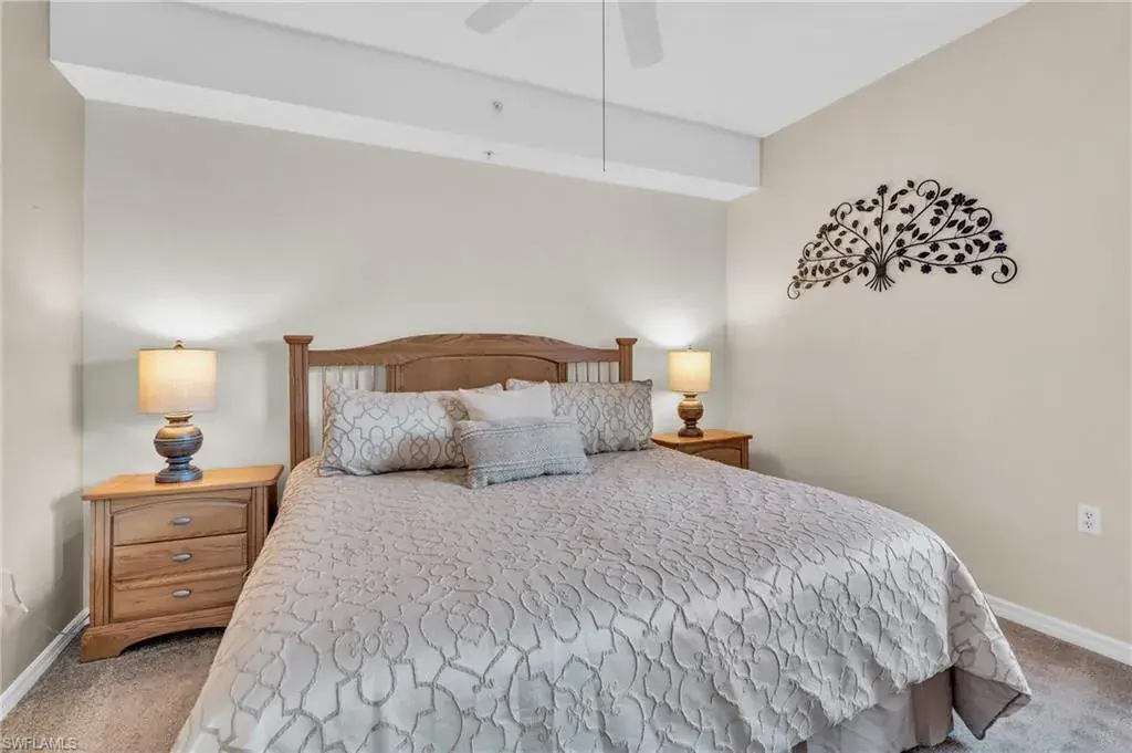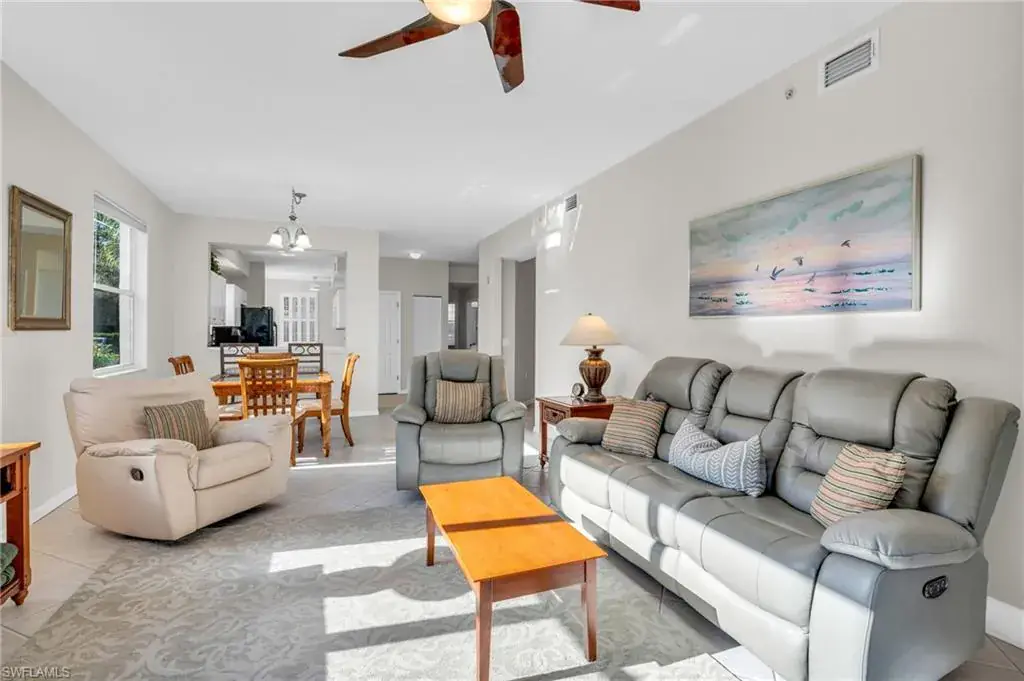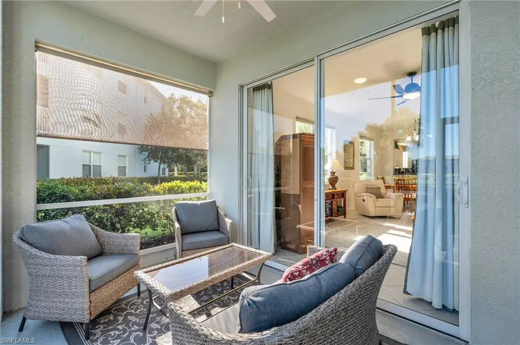 This is a steal in a Bundled GOLF Community with Pickleball Courts onsite!! Sellers would love to sell!!LOWEST PRICED END UNIT WITH DEN & INCREDIBLE LIGHT!! Exceptional Golf Course views with pond and fountain! . With a spacious layout, the condo features two bedrooms in a split plan for extra guest privacy. The primary bedroom has lovely views, a walk-in closet, and a large bathroom. Relax on the screened-in lanai and enjoy the Florida sunshine. The living room includes includes a wide screen smart TV. The unit also includes a newer central air conditioner and water heater, plus a parking space right out front and a nearby storage room. Located in Forest Glen Golf & Country Club, this condo is part of a vibrant,BUNDLED GOLF community. Forest Glen offers many amenities, including tennis courts, pickleball, bocce, swimming pools, and a fitness center plus nature trails for walking or biking. The clubhouse has two restaurants, plus there’s a spa, and a full calendar of community events throughout the year. Just a short drive to beautiful Gulf beaches, downtown Olde Naples, and Marco Island, this condo is perfectly located for relaxation and recreation. Experience all that Forest Glen has to offer! **THIS PROPERTY QUALIFIES FOR A 1% LENDER INCENTIVE IF USING PREFERRED LENDER. INQUIRE FOR MORE DETAILS.