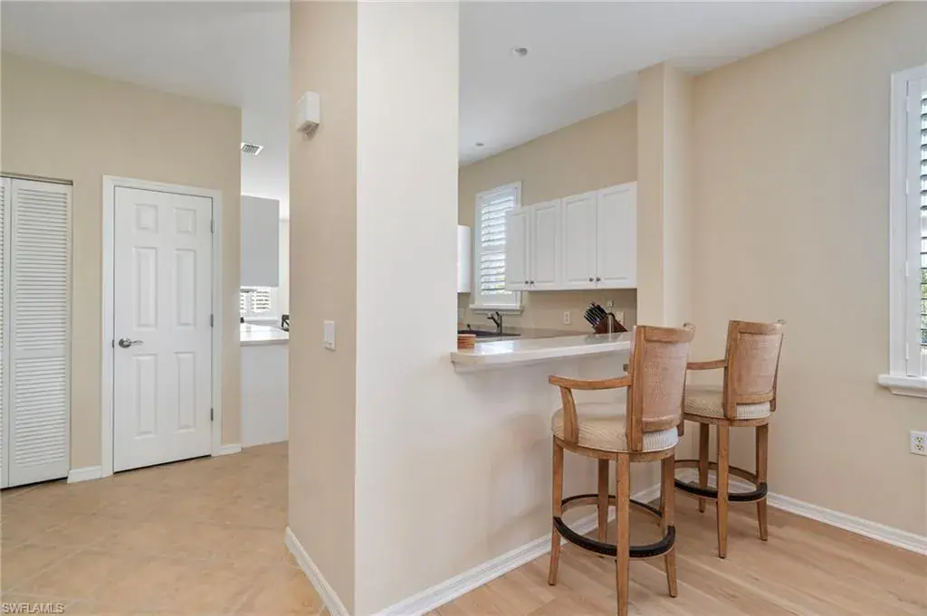 END UNIT WITH GOLF, LAKE VIEWS & PICKLEBALL ONSITE!! This beautifully updated 2BR/2BA plus den condo offers a bright and open layout with a closed-in lanai, perfect for enjoying serene mornings or sunset views. As an end unit, it provides extra windows for natural light and privacy. The spacious master suite features a large bedroom, 2 XLarge closets, and plenty of storage. All interioir doors including hinges have been upgraded. An eat-in updated kitchen countertops and sink adds convenience, while the spectacular views of the golf course and lake create a true Naples lifestyle retreat. Forest Glen is a member-owned, debt-free bundled golf community and home to an award-winning 18-hole championship course designed by Arthur Hills—voted the #1 course in the USA by GolfNow.com! Amenities include a newly renovated clubhouse with member pub, poolside bar & grill, a very active tennis program with tennis pro and 4 lighted Har-Tru courts, pickleball, nature trails, 24/7 fitness center, aqua range, and putting green. The community also offers fun social activities, from poolside potlucks to special events, creating a warm and welcoming atmosphere. This unit comes with a dedicated covered parking space and a storage unit conveniently located near the front door. Pet-friendly and move-in ready, this is resort-style living at its finest! THIS PROPERTY QUALIFIES FOR A 1% LENDER INCENTIVE IF USING PREFERRED LENDER, INQUIRE FOR MORE DETAILS**