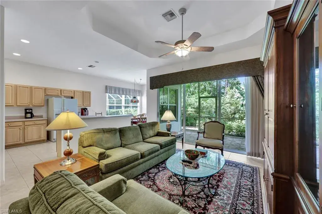 Quiet private Villa Single Family Home offers 3 Bedrooms, 2 Full Baths and a two-car garage it is set on a cul-de-sac It is located on Grafton Court which backs onto a totally Private Preserve area and no flood insurance is required! This is the largest villa floor plan with 1857 square feet! A screened entry opens to a Great Room with soaring high ceilings and architectural trays. Large windows fill the Great Room and Breakfast Area with light. The spacious primary bedroom suite has a tray ceiling, dual vanities, step-in shower, soaking tub, separate water closet and his and hers large walk-in closets. The split bedroom floor plan features 2 guest bedrooms and bathroom. Relax on the large screened lanai surrounded by lush landscaping in a private serene setting with no neighbors behind you. The paver driveway has ample parking for you and guests. The fees include Internet, cable, exterior painting every 5-6 years, lawn, mulch, and trimming, giving you lots of time to enjoy all the amenities that comes with Your Social Membership. Your fees include everything! Head to the Clubhouse for fabulous dining, bar, golf simulator, har-tru lit tennis courts, ping pong, billiards, library, card rooms, fire pit, great events, golfing May through October and much more. At the Divot you will find a full fitness center, outstanding complimentary fitness classes, breakfast and lunch. Glen Eagle is a Gated Community offering 2 gates leading to great restaurants, multiple grocery stores, shopping and only 4 miles to downtown Olde Naples, its beaches and boutiques. Naples is the Pickleball Capital of the World and this home is only 10 minutes to the USOP- National Pickle Ball Center which host the world pickleball tournaments each year, plus there are over 100 pickleball courts throughout Naples!