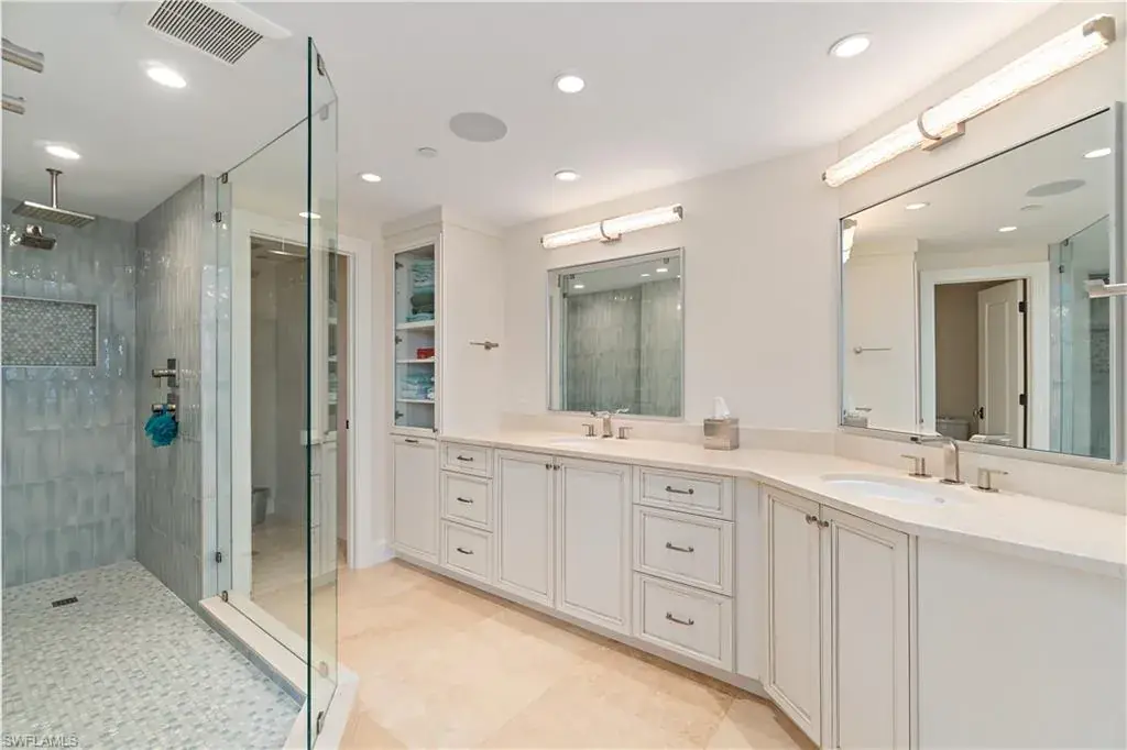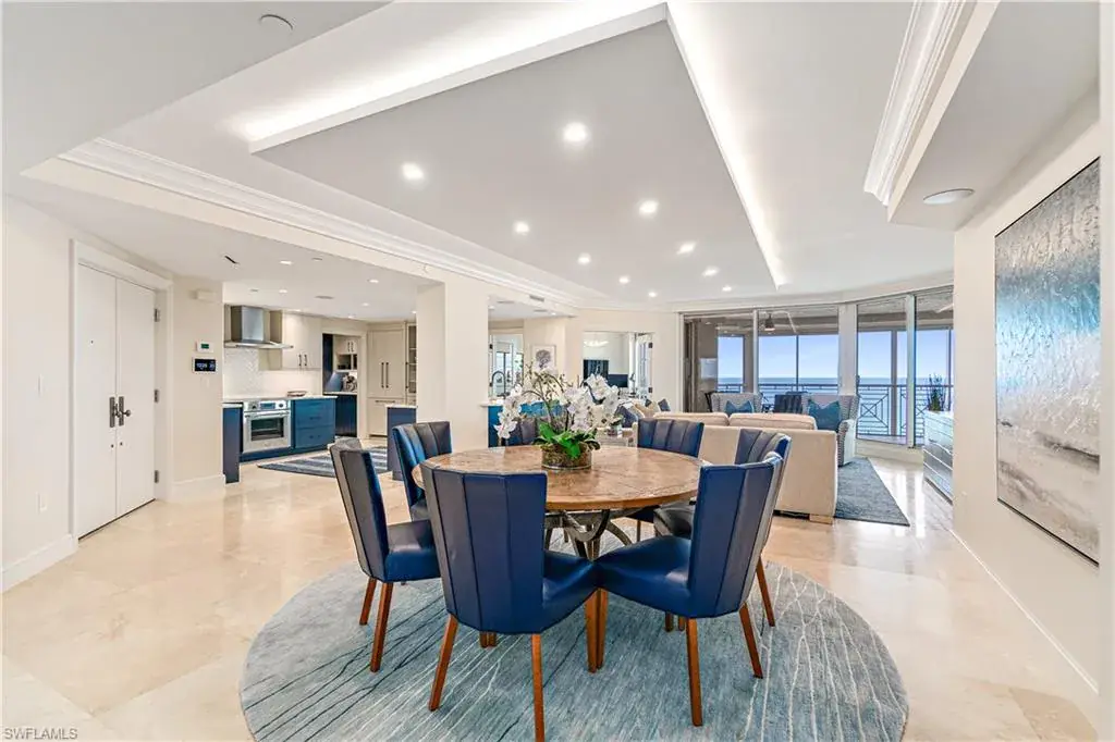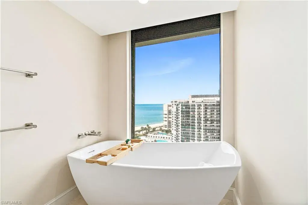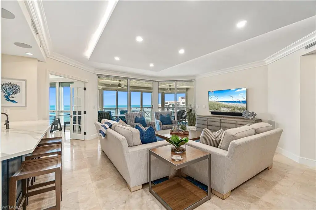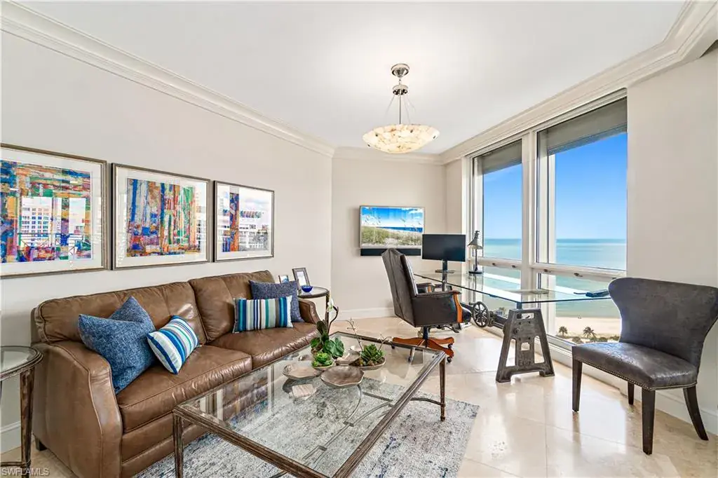 Indulge in a luxurious beachfront lifestyle in this exquisitely updated 17th-floor residence at The Brittany at Park Shore—a true expression of elevated coastal living. Ideally positioned in the coveted ’04 stack, this sophisticated retreat captures sweeping western views of the Gulf, serene bay vistas, and the dazzling city skyline by night, all framed by dual covered balconies and a light-filled interior. Encompassing three en-suite bedrooms plus a den, three bathrooms, and 2,500 square feet of refined living space, the thoughtfully designed layout blends comfort with elegance. The gourmet kitchen is appointed with a top-tier Thermador appliance package, wine refrigerator, butler’s pantry, quartz countertops, and custom cabinetry offering generous storage, flowing seamlessly into the open living and dining areas adjacent to the west-facing lanai—ideal for effortless entertaining. A separate den/home office also enjoys stunning westward views, providing an inspiring workspace. The primary suite is a tranquil sanctuary featuring dual walk-in closets, dual sinks, a walk-in shower with multiple shower heads, and a soaking tub with peaceful vistas. Additional features include Control4 home automation with surround sound and lighting, electric storm shutters, custom ceiling details, extra storage, and two secured covered parking spaces. Residents of The Brittany enjoy an array of world-class amenities, including a resort-style beachfront pool and spa, fitness center, tennis courts, private beach access, elegant guest suites, and a social/card room—all supported by 24-hour security. Located just steps from Venetian Village’s upscale dining and boutiques, and minutes from Waterside Shops, Artis–Naples, Mercato, and the iconic charm of 5th Avenue South, this offering also provides access to boat slip leasing or purchase at the Venetian Yacht Club, making it a rare opportunity to experience Naples’ coastal lifestyle at its finest.