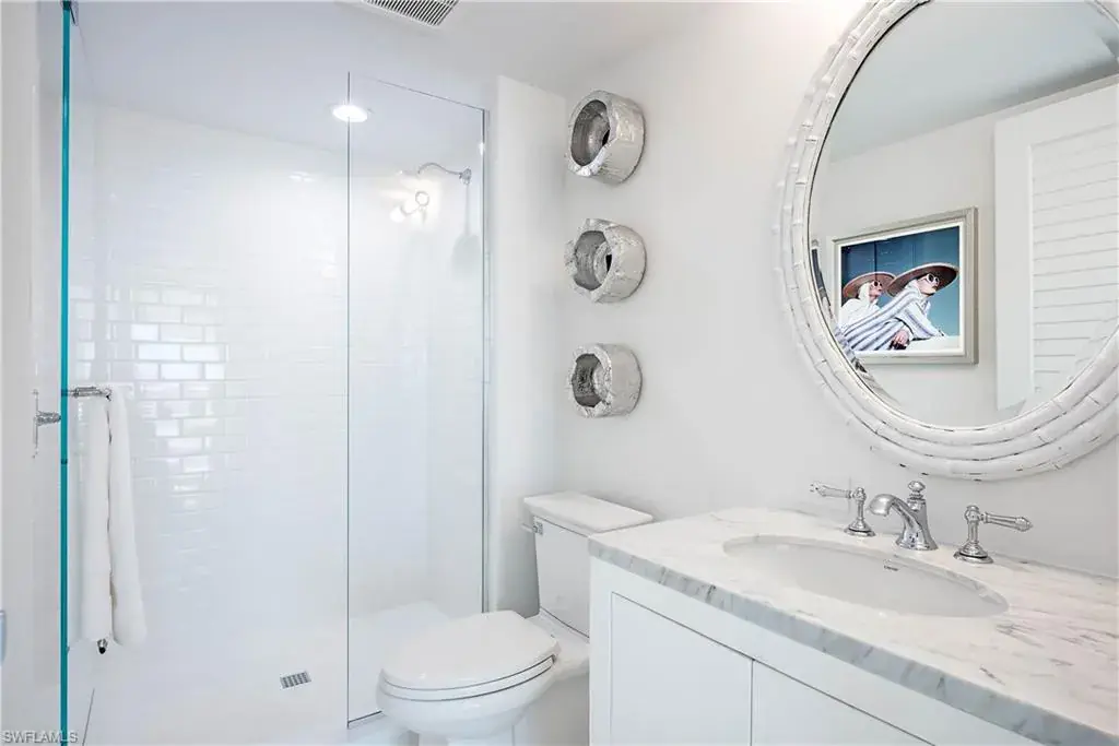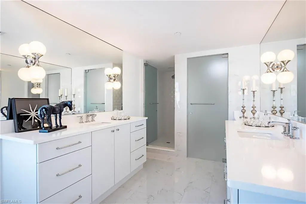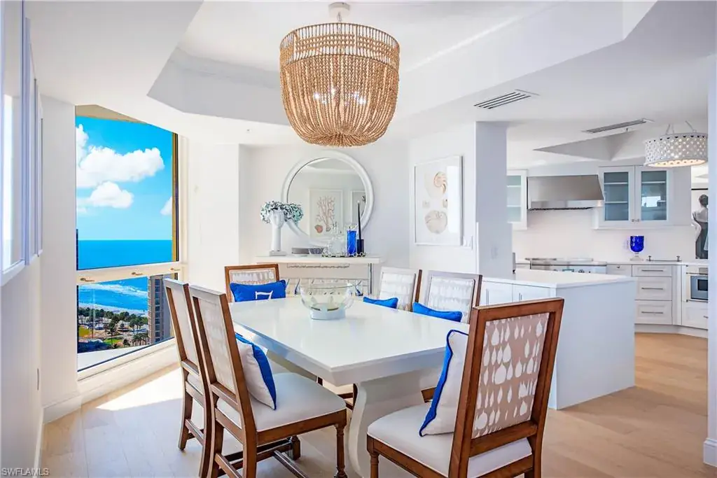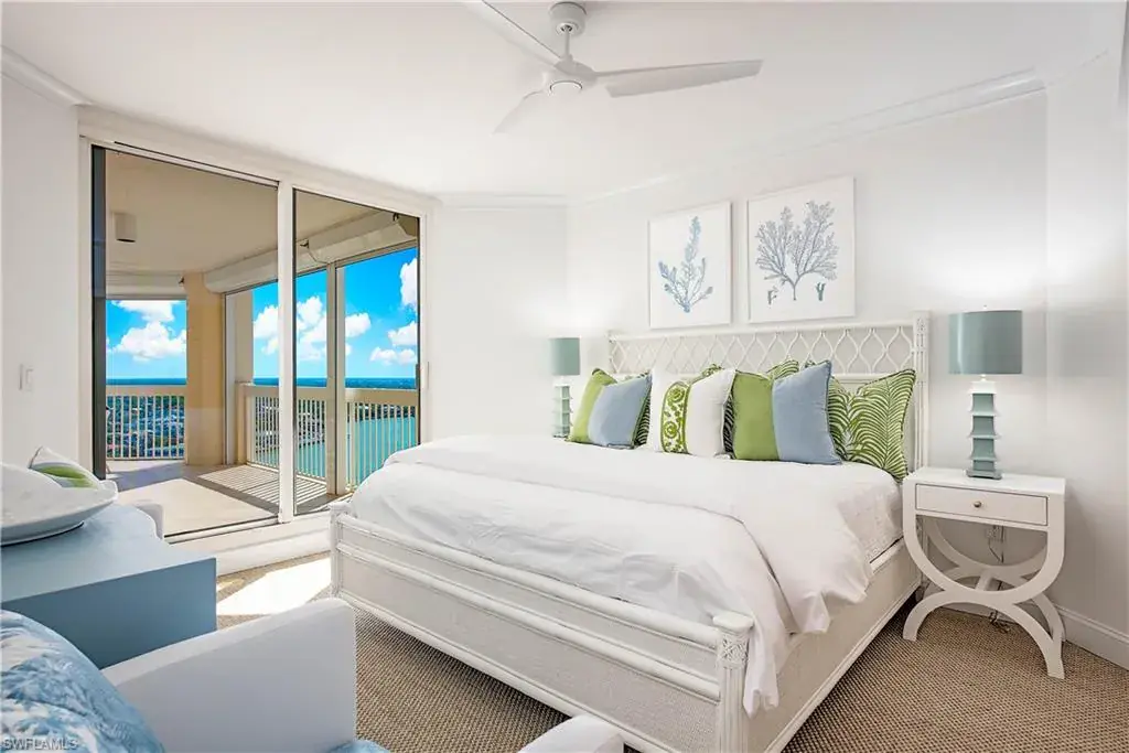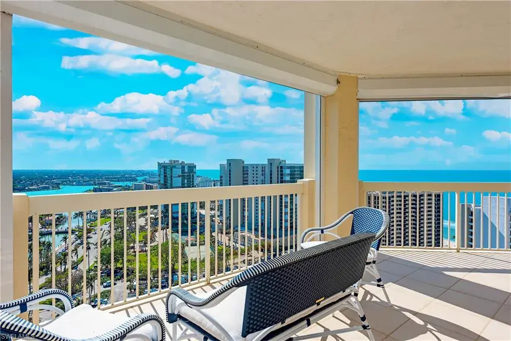Remastered in 2024 with absolute sophistication by Joy Tribout Interior Design, this exquisitely updated 20th-floor residence in The Brittany at Park Shore is a true testament to luxurious elevated living. Positioned in the coveted ’05 stack, this haven captures breathtaking western Gulf views, serene bay vistas, and the sparkling cityscape at night, offering premier panoramic vistas from dual covered balconies and an abundance of natural light in every room. The carefully designed floor plan encompasses four en-suite bedrooms, four bathrooms, and 3,278 square feet of impeccable living space. Each spacious living area is refined with the finest custom finishes, including wide plank white oak flooring, beautifully remastered bathrooms, intricate ceiling details, and perfectly curated furnishings and fixtures. The gourmet kitchen features a top-tier Thermador appliance package, induction range, dual beverage drawers, and custom cabinetry and countertops. The primary bedroom en-suite includes a walk-in shower with multiple shower heads, dual sinks, oversized walk in closet, and soaking tub with tranquil views. Additional conveniences include electric shutters for privacy and storm protection, extra storage, and two secured, covered parking spaces, providing both peace of mind and exclusivity. This residence is offered fully turnkey, thoughtfully prepared for effortless and immediate enjoyment. The Brittany offers world-class amenities, including a resort-style beachfront pool and spa, a well-equipped fitness center, tennis courts, private beach access, elegant guest suites, and a social card room, all complemented by 24-hour security services. Ideally located just steps from Venetian Village, residents enjoy upscale dining, shopping, and entertainment, with proximity to destinations like Waterside Shops, Artis-Naples, and Mercato, as well as the charm of 5th Avenue South and 3rd Street South. Boating enthusiasts have the rare opportunity to lease or purchase boat slips at the Venetian Yacht Club, adding a maritime dimension to this living experience. This residence offers an unmatched blend of timeless sophistication, modern comfort, and the serene beauty of Naples’ coastal lifestyle.