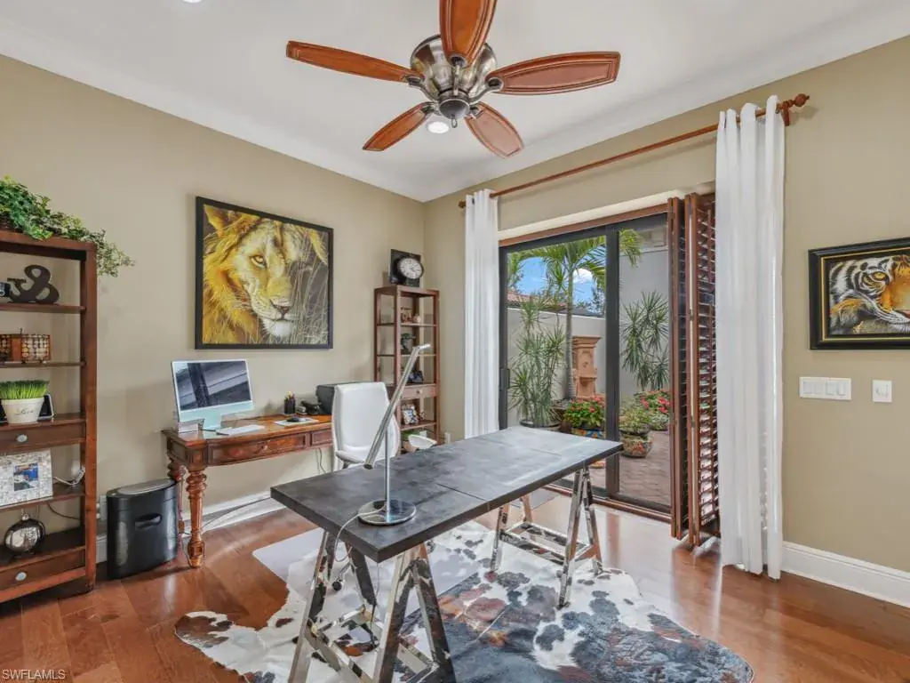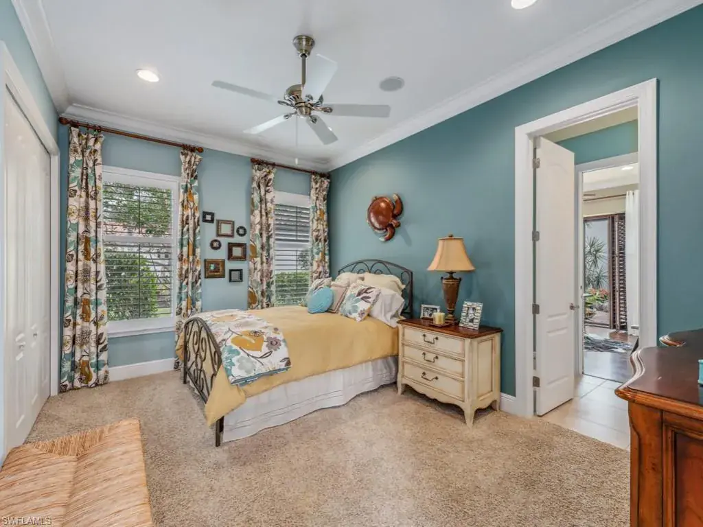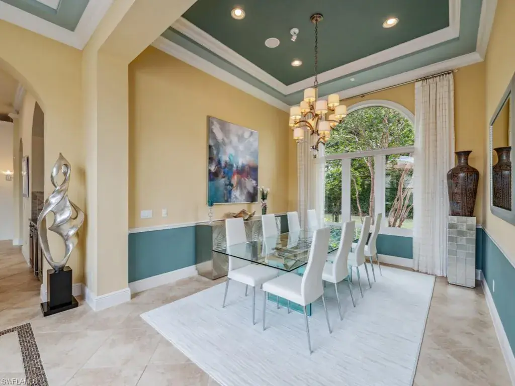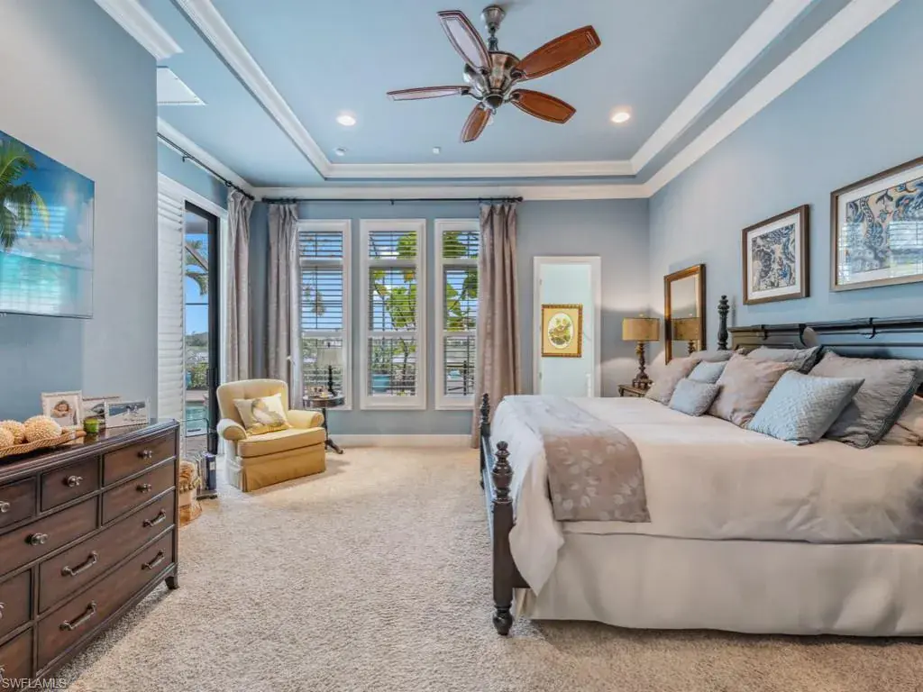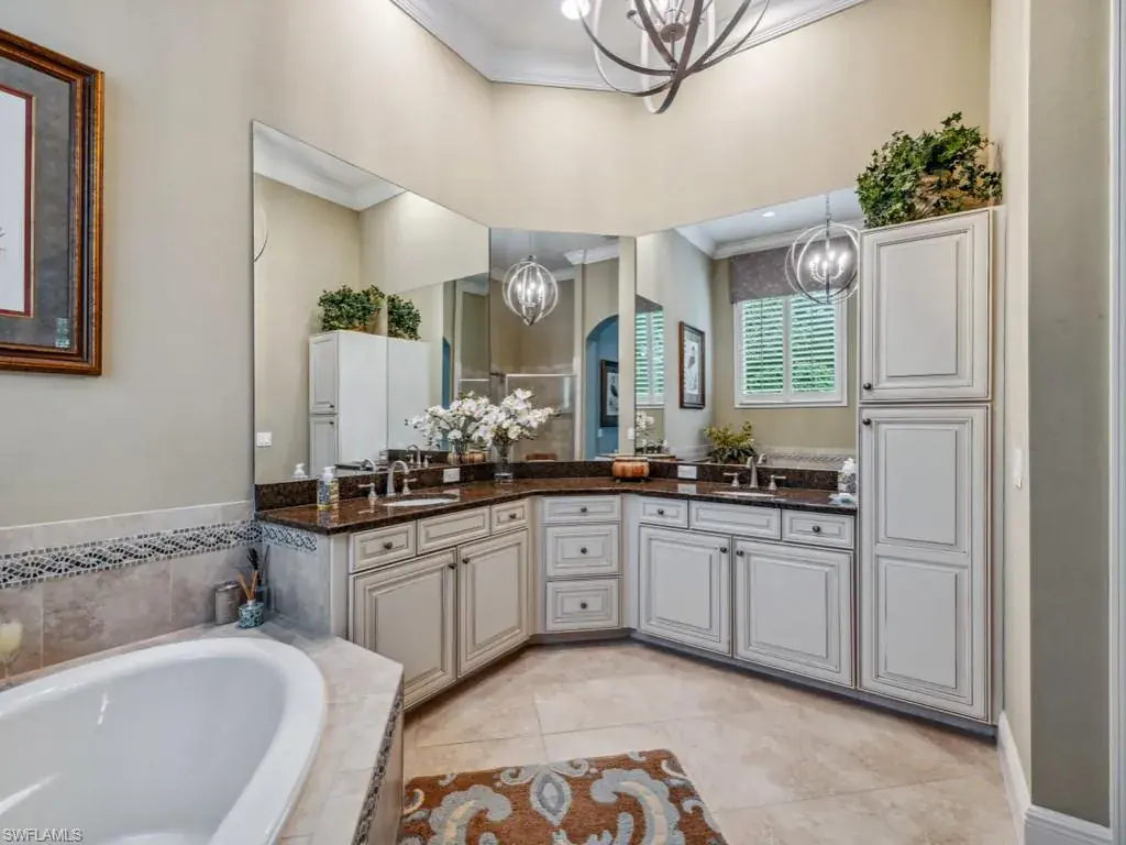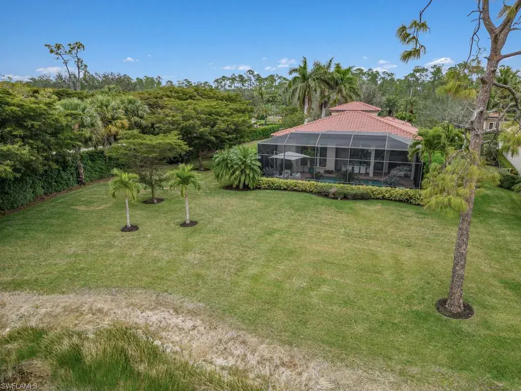 Located in the beautiful Mediterra Golf & Country Club of Naples that offers a newly renovated private beach club for residents – This stunning home combines refined architecture with modern luxury, starting with the striking curb appeal with lush landscaping, lakes with fountains both in front and behind the house, and the spacious paver driveway, which leads past iron gates and stone-accented pillars into a private courtyard entry. The foyer emphasizes an open and welcoming atmosphere with soaring ceilings, arched passageways, and gentle, neutral tones. The sunlit den is located just beyond the foyer, which functions as a private office with courtyard access through tall sliding doors. The formal dining room exudes style & sophistication with a beautiful glass table and tasteful contemporary décor. The main living areas accommodate open-concept design, allowing seamless flow between spaces, incorporating modern design elements, stylish furniture, and abundant natural lighting through the wall of tall glass sliding doors connecting the Living and outdoor spaces. The Gourmet kitchen is full of light with a private courtyard adjacent and features a walk-in pantry, premium Monogram appliances, beautiful wood cabinetry, granite countertops wrapped around the gas cooktop, double wall ovens, and a breakfast bar. Just a few steps from the kitchen is a convenient bar with its own wine cooler, perfect for entertaining. The primary suite is indulgent, with two walk-in closets, private outdoor access, a quiet sitting area, and a spa-inspired bath equipped with a separate tub & shower, dual vanities, modern fixtures, and tasteful finishes. The guest bedrooms are spacious and well-appointed, with contemporary décor, large windows, and en-suite bathrooms. The large screened outdoor area is the perfect gathering space to soak in those sunny days. A generous-sized pool & spa are the centerpiece. It includes an outdoor kitchen, dining space, and lounge seating, creating a perfect oasis for relaxation & entertainment with the delightful backdrop of vibrant landscaping and a sparkling lake in the backyard. Mediterra is a prestigious luxury golf & country club community featuring Two championship Tom-Fazio golf courses for avid golfers, multiple tennis courts, pickle-ball & bocce, fitness center, pristine bike & jogging trails, and luxurious dining at the private country club restaurant. The Mediterra Beach Club offers an escape to a 10,000 sq. ft two-story private oceanfront paradise on the Gulf of Mexico. Featuring a restaurant & bar that serves members via indoor & outdoor dining, this private facility boasts a heated swimming pool, a sundeck, and cabana beach service for chairs, umbrellas & refreshments.
