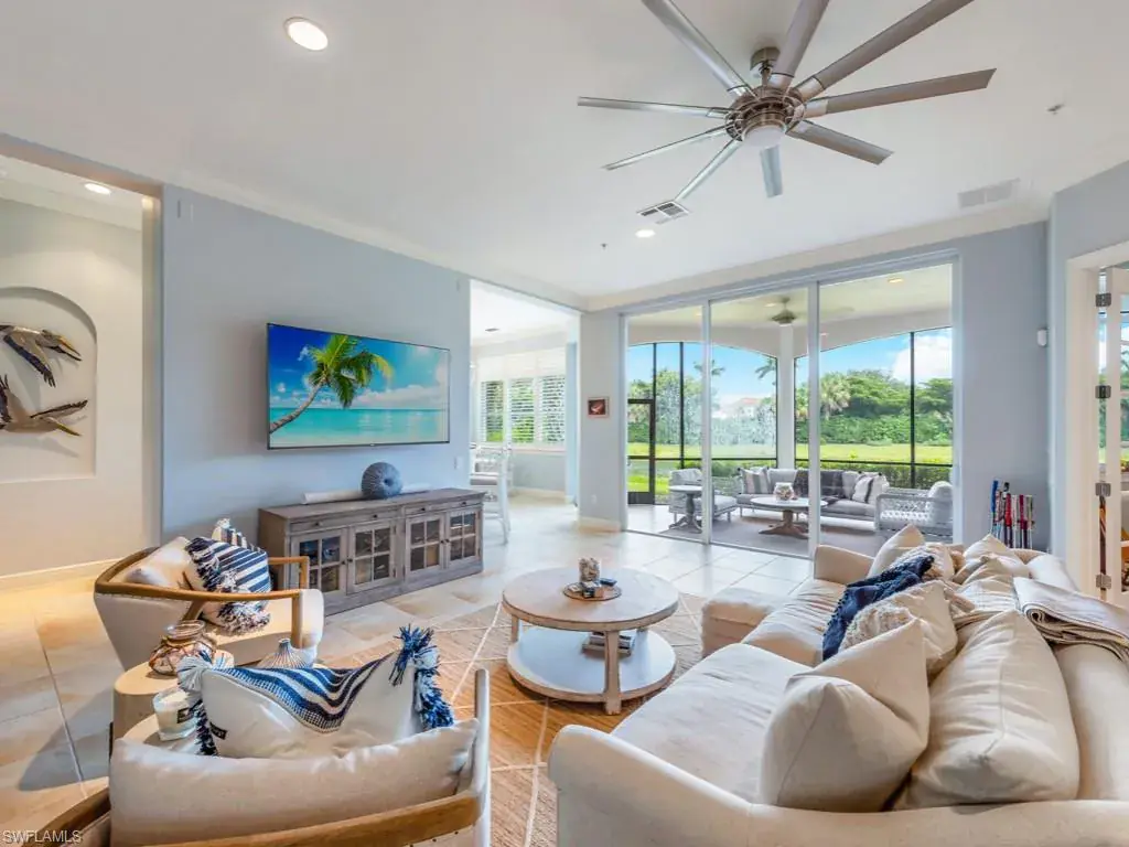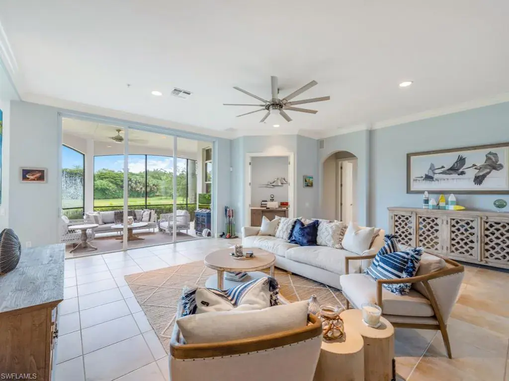 *GOLF MEMBERSHIP SLOT AVAILABLE IMMEDIATELY!* – 28541 Calabria Court, Unit 101, This stunning three-bedroom + den and three-bathroom coach home with refined style enveloping every aspect. An interior that welcomes you right in with light & bright design accents and an open & spacious floor plan which seamlessly blends elegance & functionality. The tastefully appointed living room with an adjacent bar floods the space with natural light, creating a bright & inviting atmosphere. The inspired kitchen boasts high-end stainless-steel appliances, granite countertops, & stunning wood cabinetry. The primary bedroom suite offers a luxurious en-suite bathroom with a soaking tub, walk-in shower, & dual vanities. The private lanai is a highlight, perfect for enjoying a quiet moment or hosting gatherings while immersed in the splendid lake views of this unit. Mediterra is a prestigious luxury golf & country club community in Naples, featuring Two championship Tom-Fazio golf courses for avid golfers, a private beach club with a restaurant & bar, multiple tennis courts, pickle-ball & bocce, fitness center, pristine bike & jogging trails, and luxurious dining at the private country club restaurant. Enjoy exclusive access to this captivating lifestyle, where elegance meets indulgence.