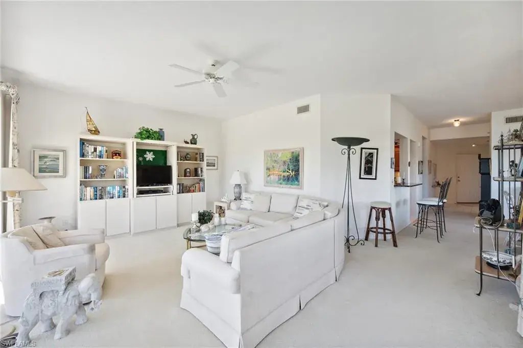 C8821 – Rarely available 03 mid rise w/gorgeous panoramic views of golf course & lake. Well maintained open floor plan features updated kitchen w/granite counters, wood cabinets, pull out shelves, stainless steel dishwasher & large double sink. 2 glass enclosed balconies plus large screened lanai. Spacious guest bedroom includes furniture for immediate use. Extra shelves in laundry room. Large custom walk-in closet in Master bedroom. Whirlpool tub in Master Bathroom. Calais offers convenient location to walk or ride tram to the beach & restaurants. Community clubhouse has exercise room, full kitchen, card/library room, social room & manager’s office. Don’t miss this opportunity to enjoy all the amenities of Pelican Bay, which includes easy access to Artis Naples, Waterside shopping, Barnes & Nobles, restaurants, biking & nature trails.