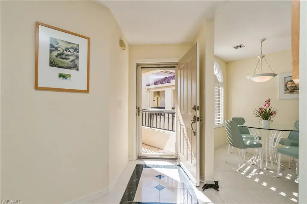 Rarely available top floor carriage home w/elevator. Updated throughout w/11′ ceilings in living area. Glass enclosed lanai for full-time use. Private, gorgeous lake & golf course views. Newer a/c, water heater, fresh paint in kitchen & Master Bath, new lights & fan in kitchen, master, guest bathroom & hallway. Detached 1 car garage & guest parking. Calais offers redone clubhouse, heated pool & spa, exercise room, manager’s office, full kitchen, card area, covered outdoor seating, 2 gas grills & excellent location to boardwalk to beach & restaurants. Pelican Bay has 20 Har-tru tennis courts, pickleball coming shortly & fully equipped gym.