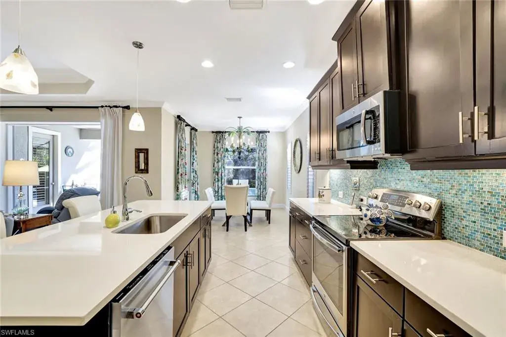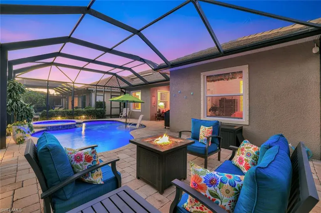 Beautiful one owner home perfectly situated in the sought-after gated community of Canopy. Freshly painted 3 bedroom plus den, 2 1/2 bath with private preserve view. Spacious kitchen with island, stainless appliances, quartz countertops, tile backsplash, under cabinet lighting, walk-in pantry. Primary bedroom with ensuite bathroom has double sinks, oversized shower. Tile floors throughout; tray ceilings. Updates include impact doors & windows (2024), HVAC (2022), garage door opener (2024). Salt system heated pool with sun shelf and spa, easily controlled using your cell. Extended screened lanai offers plenty of space for entertaining. Laundry room with sink. Two car garage with pull down stairs; great for extra storage!