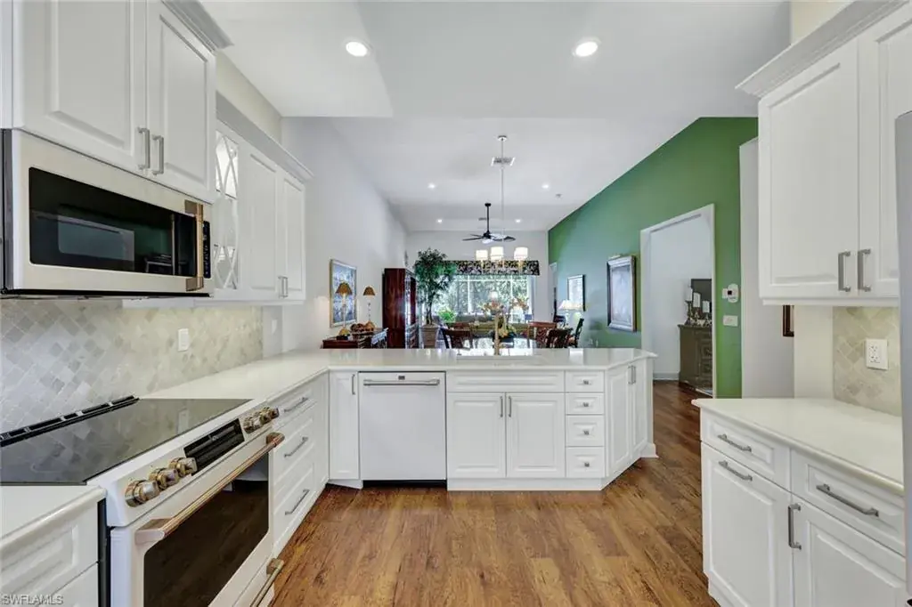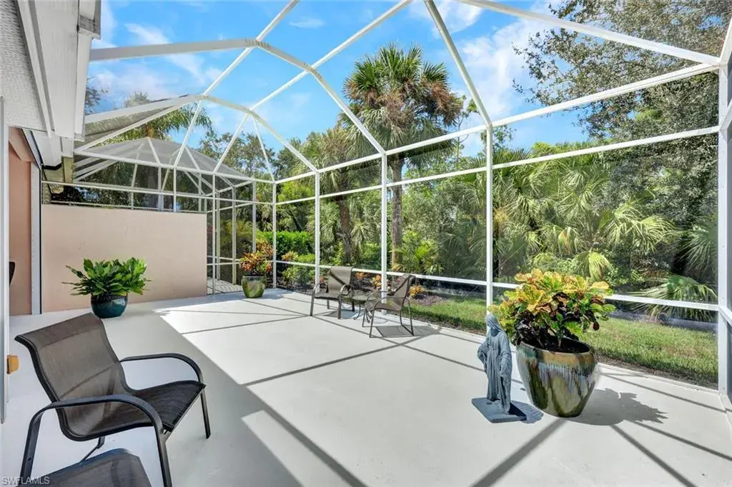 Gorgeous 2 plus den villa home nestled in the vibrant town of Naples, this exquisite property offers an unparalleled lifestyle with a host of community amenities including tennis and bocce courts, a clubhouse featuring a 60-ft lap pool and hot tub, a fishing pier, and a tot lot for endless enjoyment. Revel in the beauty of a preserve view from your expansive screened lanai, the perfect setting for relaxation or entertaining. The home boasts a fully updated kitchen showcasing white cabinetry, stunning quartz counters with a double ogee edge, complemented by a Cafe Appliance package in matte white with brushed bronze accents, along with brushed bronze hardware. Enhance your living experience with updated laminate wood flooring, updated lighting fixtures throughout and a brick-paved driveway surrounded by meticulously updated landscaping that adds exceptional curb appeal. Full hurricane protection ensures peace of mind. The den can easily be converted into a 3rd bedroom by adding the doors back on which the seller has available. Situated within walking distance to Seed to Table and The Strand shopping plaza, and just 6 miles from Naples’ pristine white sand beaches, this residence offers convenience to premier shopping, dining, and entertainment options, making it a perfect haven for those seeking the best of Florida living.