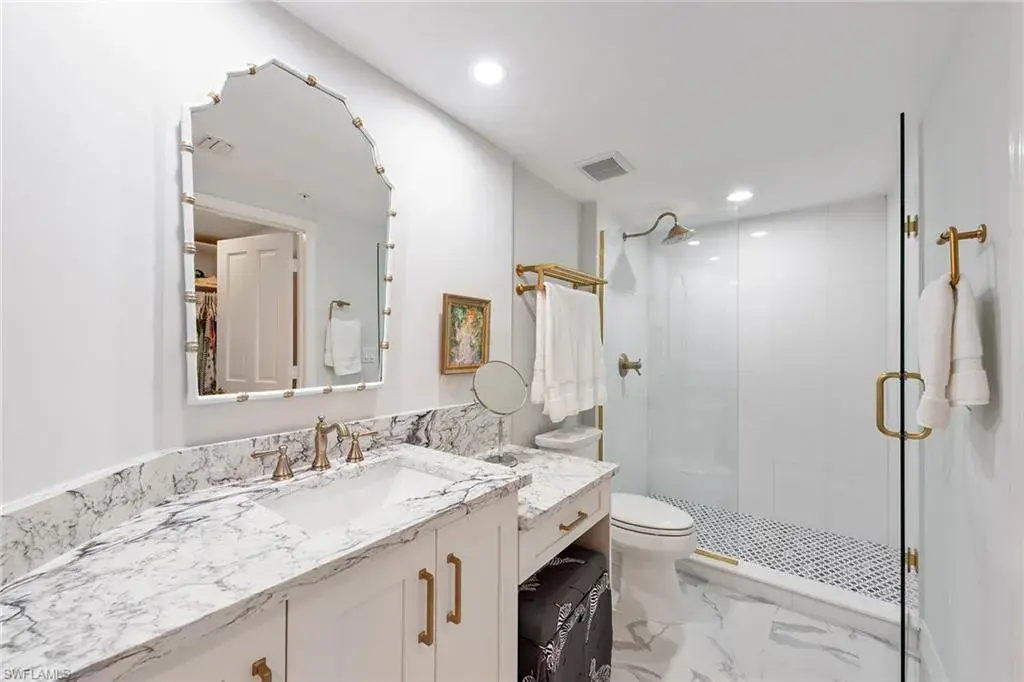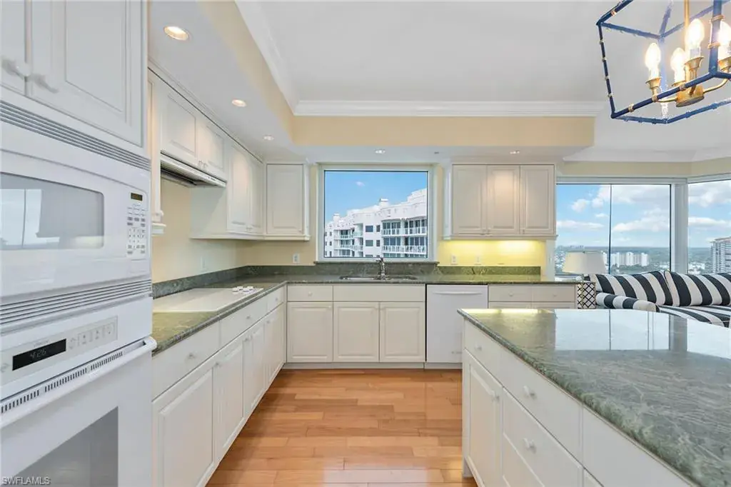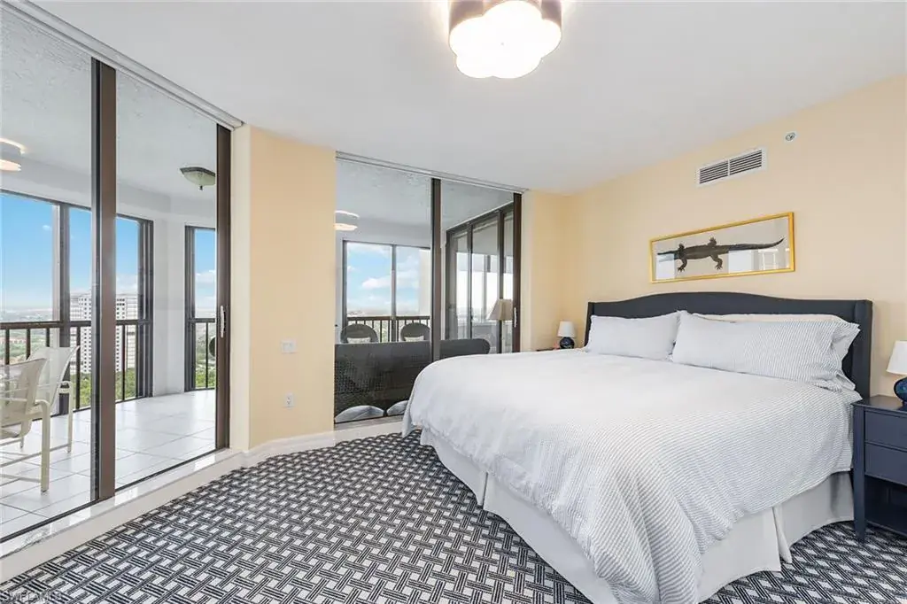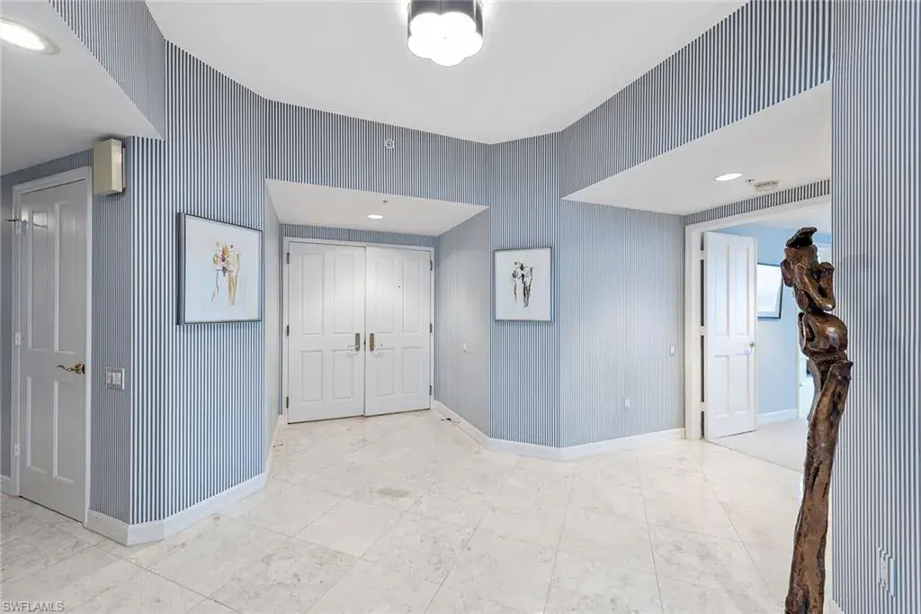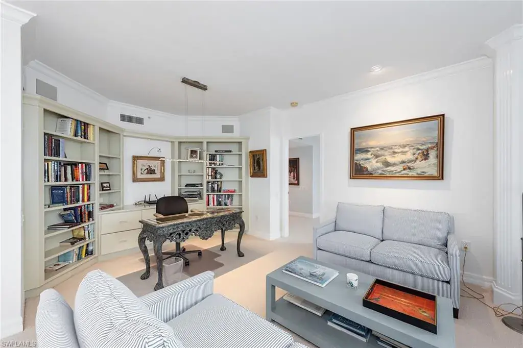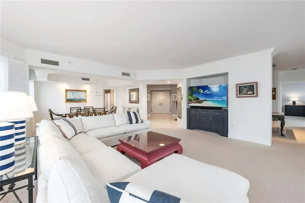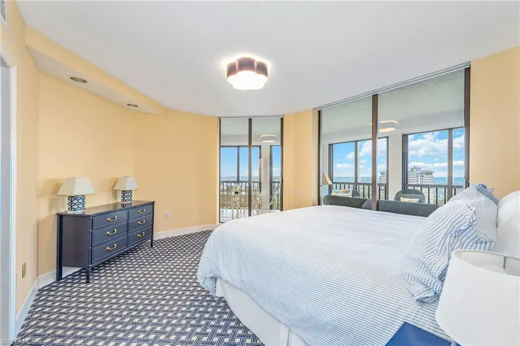 Gorgeous gulf and beach views! High-floor gulf view residence directly on the beach in the private gated community of Bay Colony. Featuring panoramic views of the Gulf of Mexico through hurricane-impact glass picture windows and floor-to-ceiling glass sliders off the main living area and the primary bedroom. This highly sought-after design welcomes you into an elegant entry foyer and spacious living area boasting tile, elegant moldings, lighting and trim and a separate dining area. The open kitchen with casual den area offers plenty of room for entertaining family and guests including two full guest bedrooms, both with en-suite baths. Extra storage at lobby level. The Carlysle amenities include an impeccable lobby with 24-hour staffed front desk, two guest suites, fitness center, social rooms and a resort-style pool. Bay Colony residents enjoy the use of their private beach club and restaurant, a tennis club, as well as use of amenities of Pelican Bay.