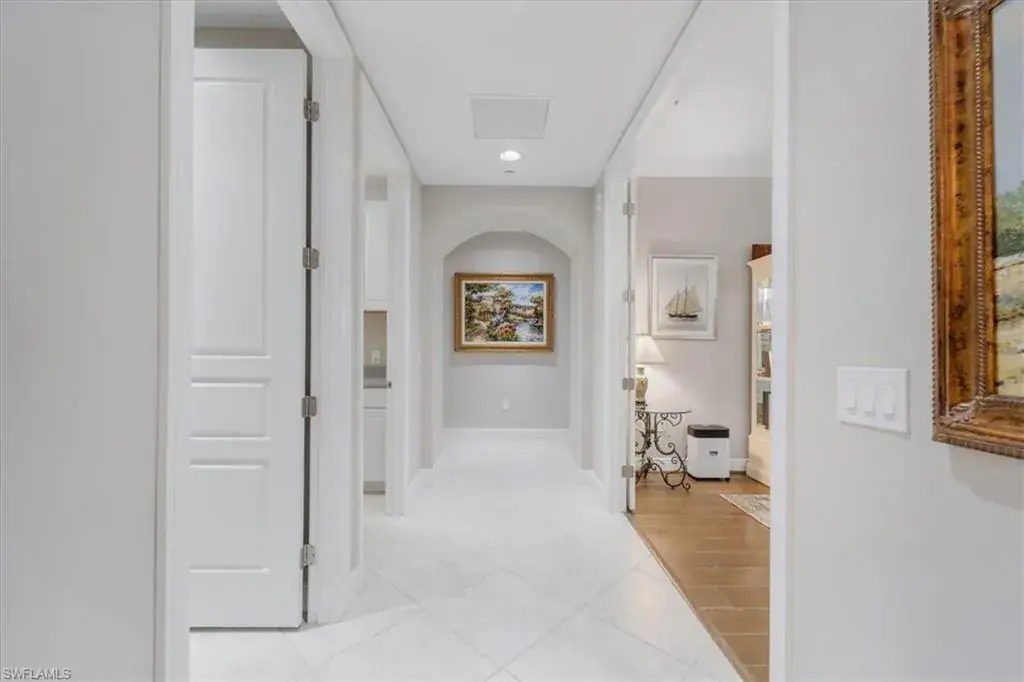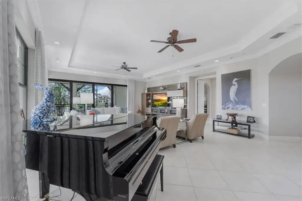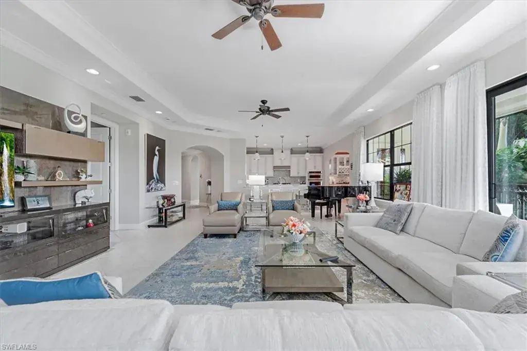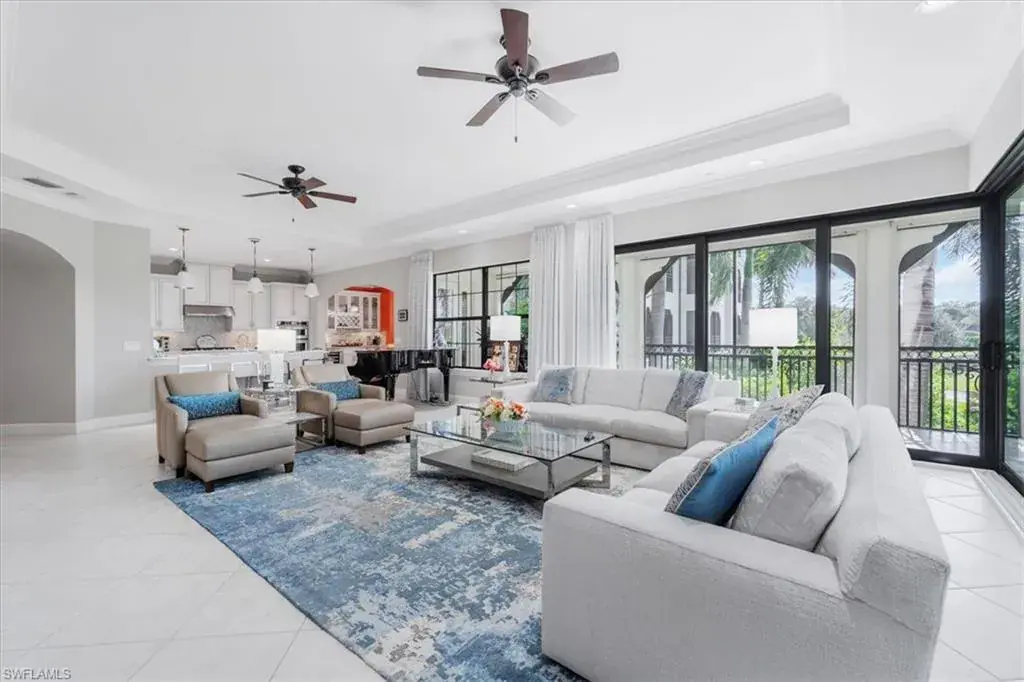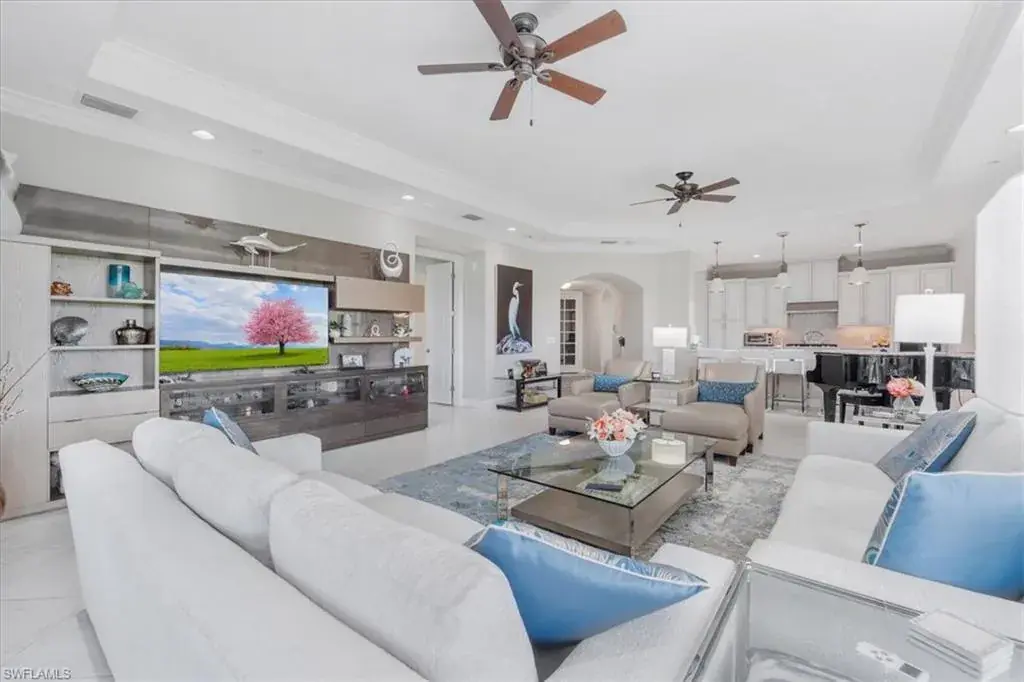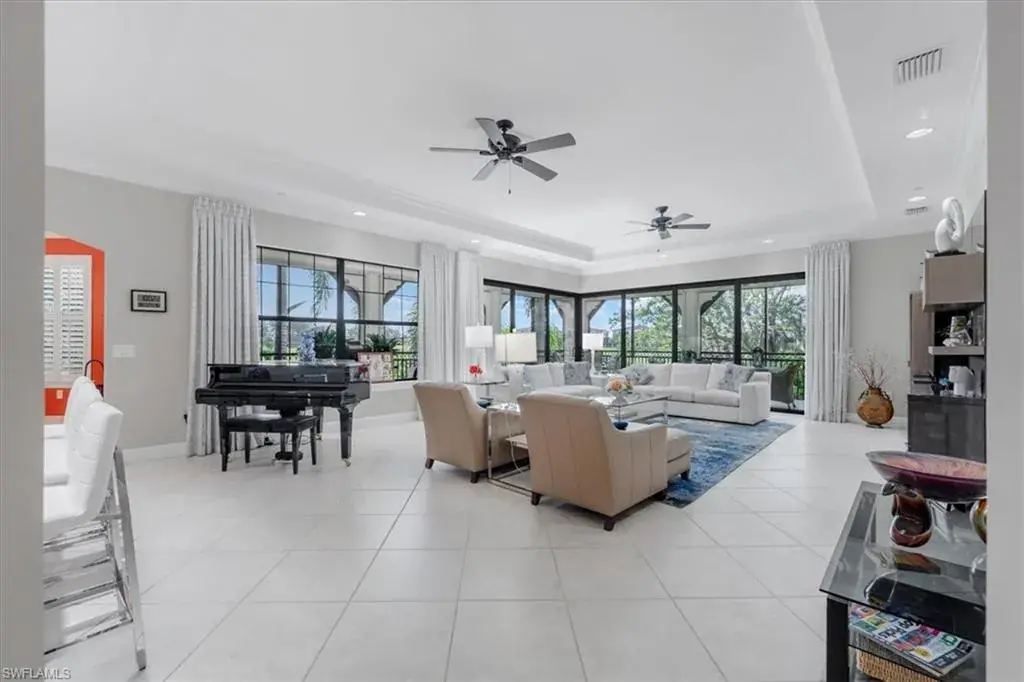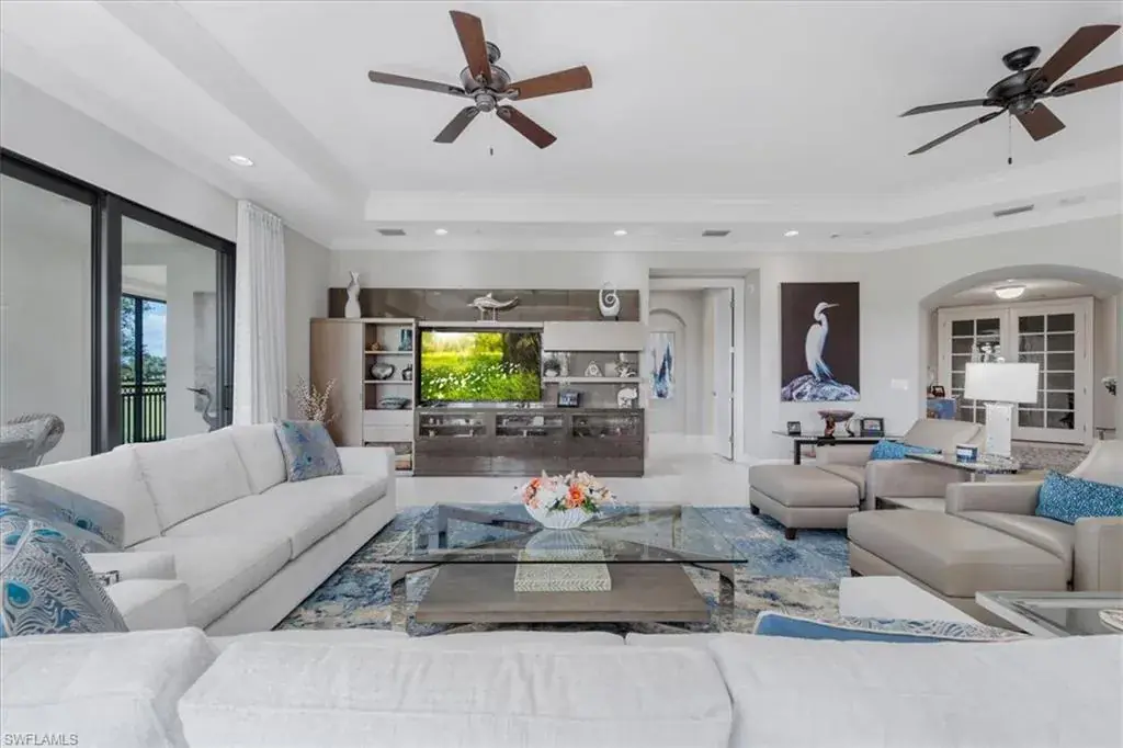 Luxury Living, Immaculate & Classy describes this End Unit Penthouse with elevator, located in the Prestigious Talis Park Community, if you’re Watching this house? The Seller is not dropping the Price…. Come get it now!! IMMEDIATE FULL GOLF MEMBERSHIP AVAILABLE SKIP THE WAIT LIST with this unit!!, this WCI built unit offers the most stunning spectacular south facing lake view of four golf holes fairway & greens on the Championship Pete Dye / Greg Norman designed Golf Course. This resort style property will exceed your expectations with all the amenities that are available. Entering this home, you are taken with the very spacious open entertaining floor plan, tray ceilings, high-end finishes, furnishings, plantation shutters & window draperies, deluxe upgraded molding package throughout, large quartz island breakfast bar white shaker cabinet kitchen offers stainless steel KitchenAid appliances, gas stove, compactor, commercial grade hood, pantry, recessed lighting & a dinette area with a serving station complete with refrigerator & wine cooler, the main family room offers a tray ceiling, porcelain tile floors, recessed lighting, large custom built in wall unit & 90 degree sliding impact glass doors that open up to your amazing wrap around screened balcony view with 8 electric Storm Smart roll down shutters for all your storm protection & entertaining needs, the den / office includes double French doors, tile wood plank flooring, all custom made cabinetry, glass book cases, quartz tops & includes all modern technology, there is also a screened balcony with new Storm Smart roll down shutters, down the hall there is a half bath, laundry room & two nicely appointed ensuite guest bedrooms with New high-end Berber carpeting, crown moldings & walk in closets, the main suite offers a tray ceiling, sliders out to the private lanai, tile wood plank flooring, large custom built in California walk in closet, the main bath offers a large quartz double vanity top, soaking tub, tiled walk in shower & a private lavatory, this property has a New A/C System 2025, tankless hot water heater for endless hot water demands, garbage chute, two assigned parking spaces & a storage area in the parking garage, non-flood zone location, close to I-75, 20 minutes to the airport, & the upscale shopping & night life in Naples. This is a must-see property for all the amenities, features, location & the Exclusive Luxury Florida Lifestyle.