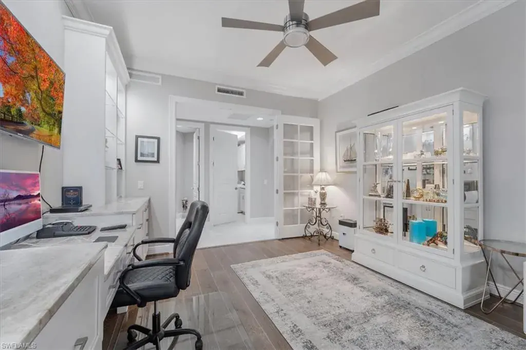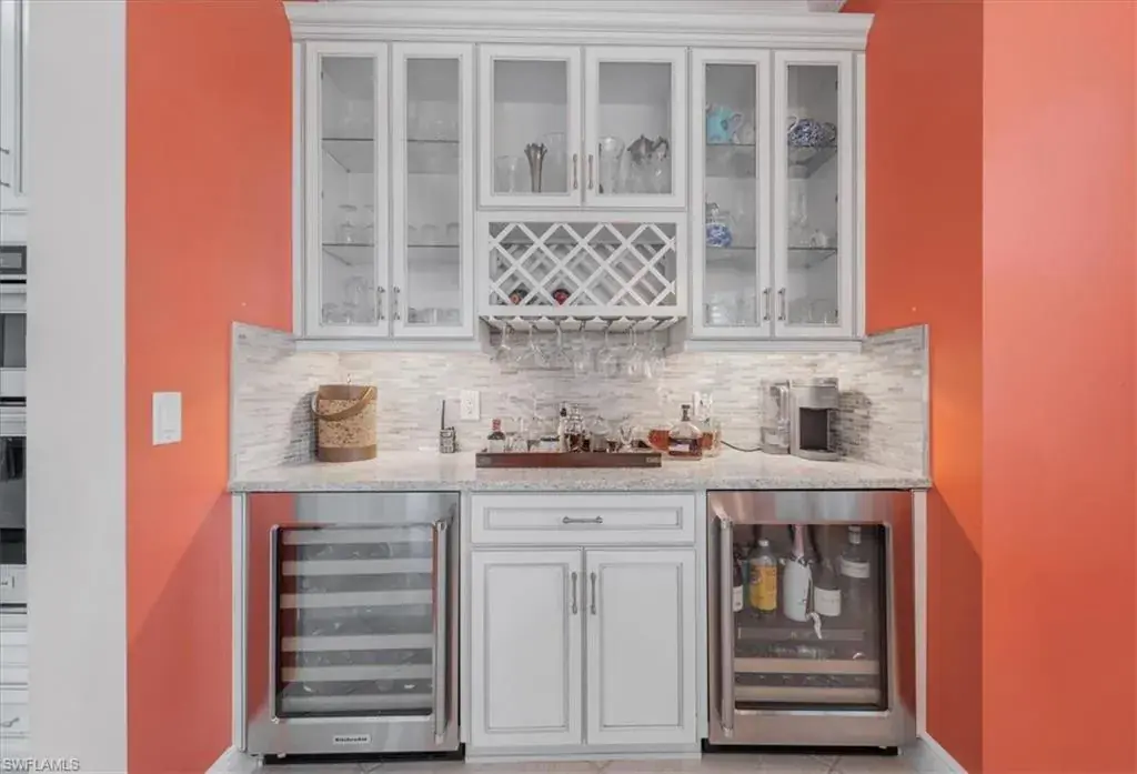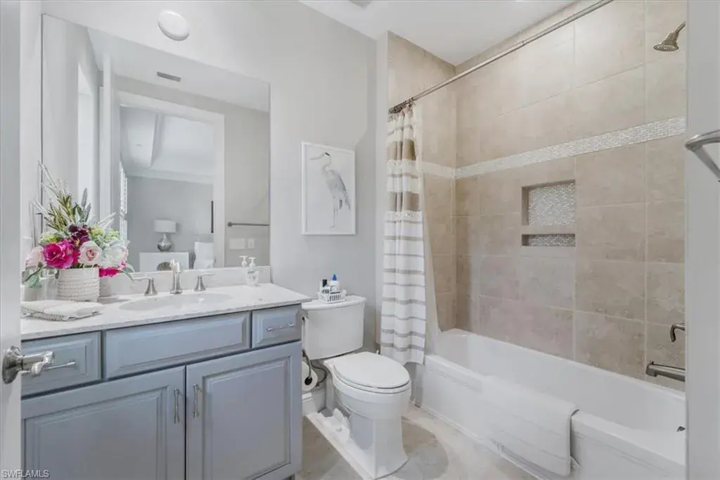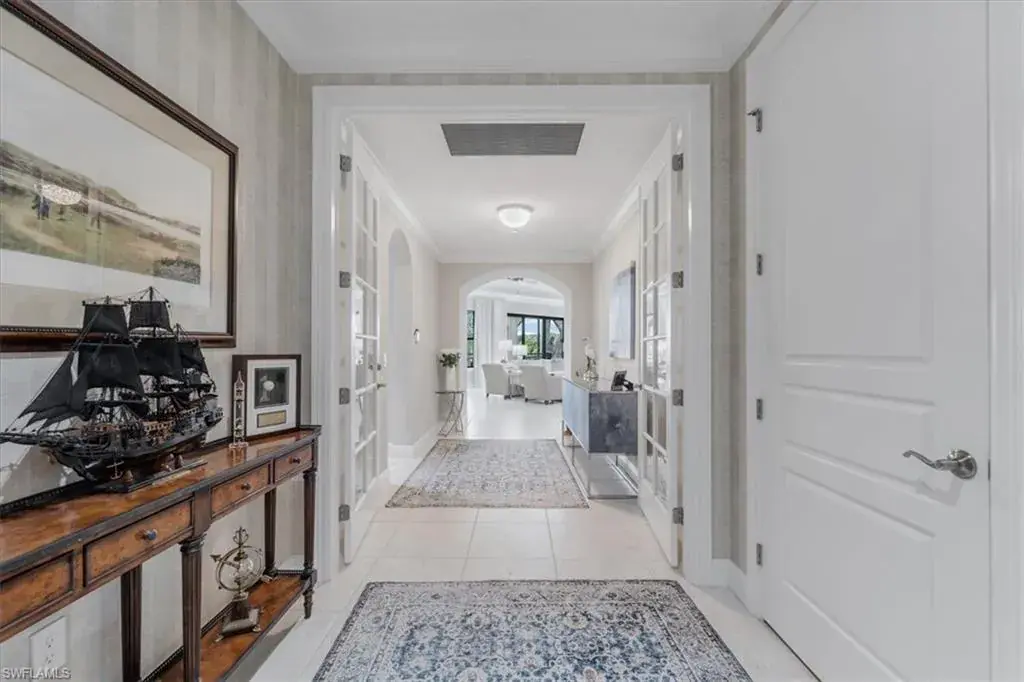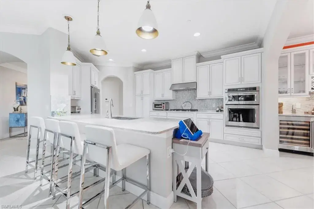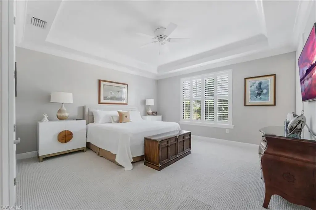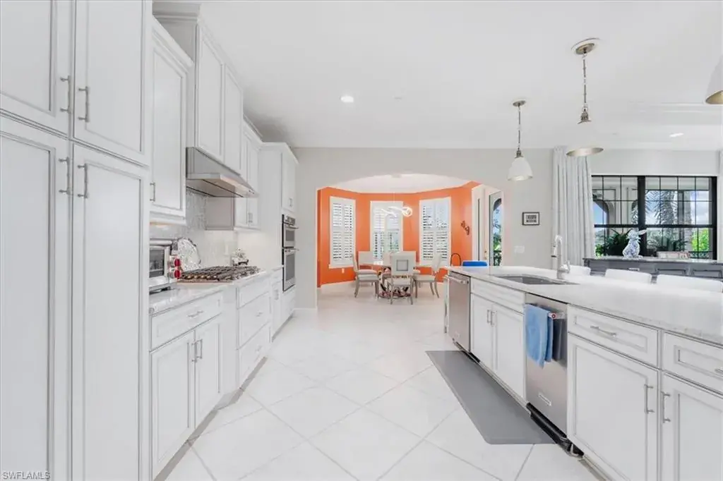 Luxury Living, Immaculate & Classy describes this End Unit Penthouse with elevator, located in the Prestigious Talis Park Community, if you’re Watching this house? The Seller is not dropping the Price…. Come get it now!! IMMEDIATE FULL GOLF MEMBERSHIP AVAILABLE SKIP THE WAIT LIST with this unit!!, this WCI built unit offers the most stunning spectacular south facing lake view of four golf holes fairway & greens on the Championship Pete Dye / Greg Norman designed Golf Course. This resort style property will exceed your expectations with all the amenities that are available. Entering this home, you are taken with the very spacious open entertaining floor plan, tray ceilings, high-end finishes, furnishings, plantation shutters & window draperies, deluxe upgraded molding package throughout, large quartz island breakfast bar white shaker cabinet kitchen offers stainless steel KitchenAid appliances, gas stove, compactor, commercial grade hood, pantry, recessed lighting & a dinette area with a serving station complete with refrigerator & wine cooler, the main family room offers a tray ceiling, porcelain tile floors, recessed lighting, large custom built in wall unit & 90 degree sliding impact glass doors that open up to your amazing wrap around screened balcony view with 8 electric Storm Smart roll down shutters for all your storm protection & entertaining needs, the den / office includes double French doors, tile wood plank flooring, all custom made cabinetry, glass book cases, quartz tops & includes all modern technology, there is also a screened balcony with new Storm Smart roll down shutters, down the hall there is a half bath, laundry room & two nicely appointed ensuite guest bedrooms with New high-end Berber carpeting, crown moldings & walk in closets, the main suite offers a tray ceiling, sliders out to the private lanai, tile wood plank flooring, large custom built in California walk in closet, the main bath offers a large quartz double vanity top, soaking tub, tiled walk in shower & a private lavatory, this property has a New A/C System 2025, tankless hot water heater for endless hot water demands, garbage chute, two assigned parking spaces & a storage area in the parking garage, non-flood zone location, close to I-75, 20 minutes to the airport, & the upscale shopping & night life in Naples. This is a must-see property for all the amenities, features, location & the Exclusive Luxury Florida Lifestyle.