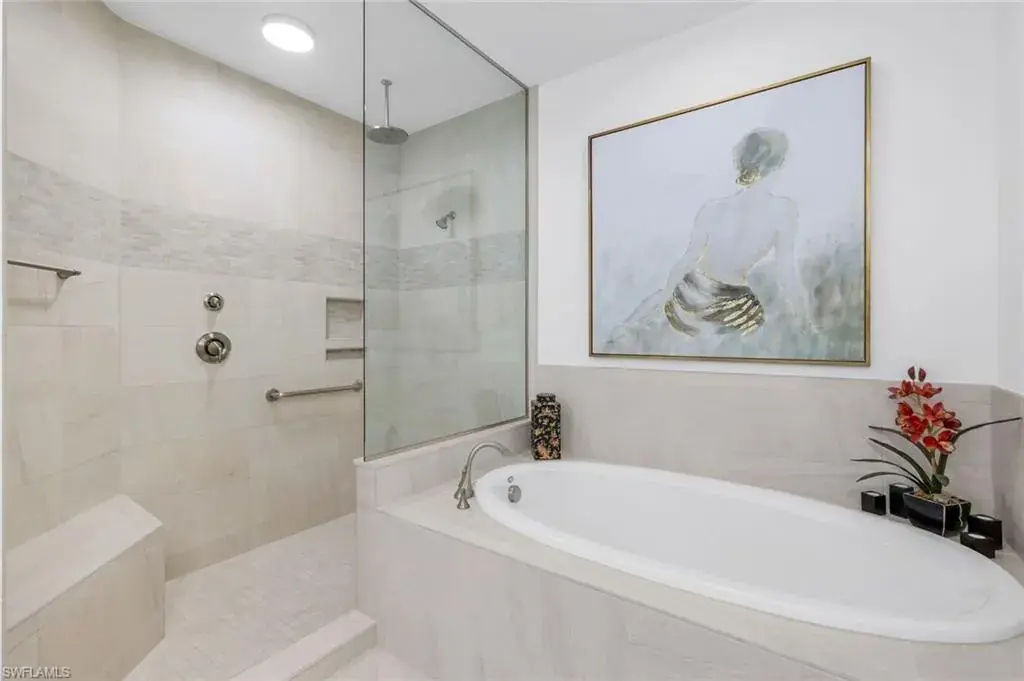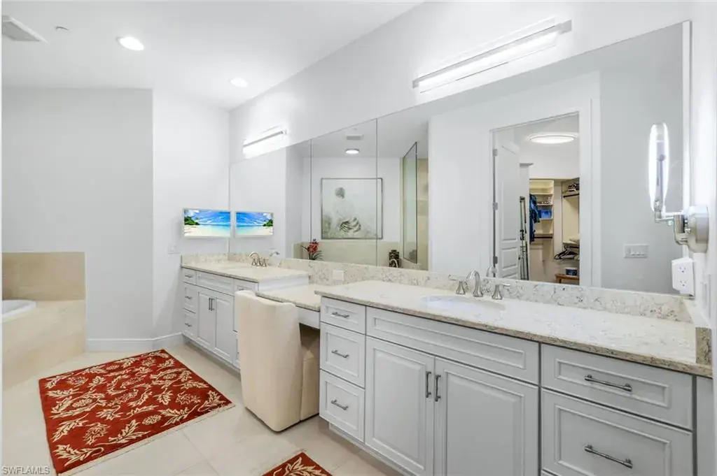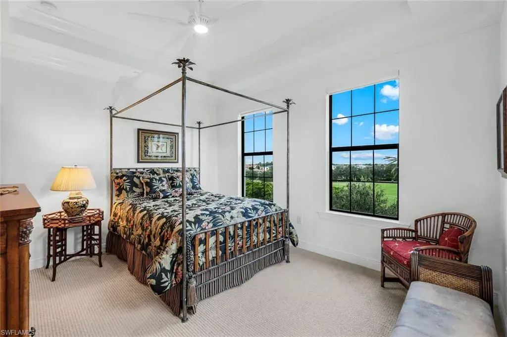 As you move into the primary suite, the space unfolds as a private haven, featuring dual sinks, soaking tub, separate shower, Toto toilet seat, remote-controlled blackout shade, and a custom California Closet. Each guest suite offers relaxing comfort, ample storage, and thoughtful design, ideal for vacation living or enjoying Southwest Florida, while a versatile den provides flexibility as a home office, library, or media space, maintaining the home’s sense of ease and refinement.