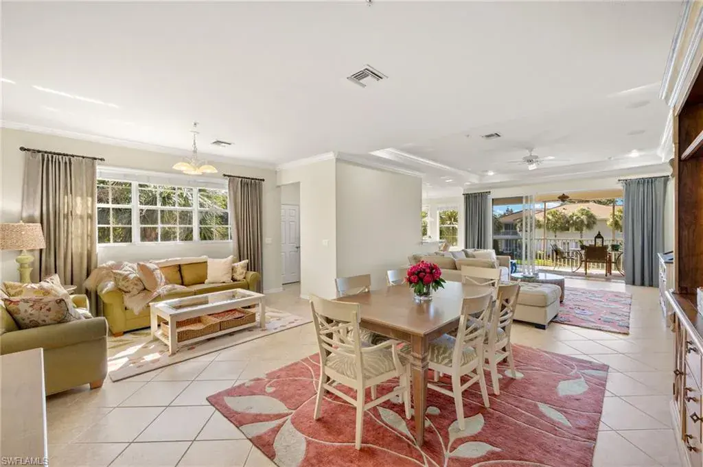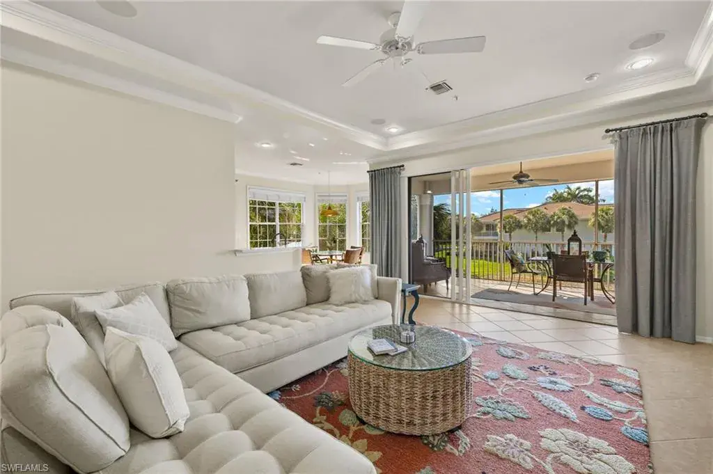 PLEASE CLICK ON 3D AND DRONE/VIDEO TOURS! NOT IN A FLOOD ZONE. A unique offering in an outstanding AVIANO development. VIEWS! Lake and Fountain facing luxury home by Toll Brothers. NEW 2023 TILE ROOF, 2023 EXTERIOR PAINT. The largest floorplan, total 2664 sq ft spacious end unit second floor residence has beautiful lake view and southern exposure, lives like a single-family home. Soaring 10ft tall ceilings, chic open concept kitchen with quartz countertops and breakfast bar, custom backsplash tile, newer sink and disposal. 2025 DISHWASHER, 2023 WASHER/DRYER, 2016 KITCHEN APPLIANCES, 2016 QUARTZ COUNTERS, NEW UPGRADED SINK, CUSTOM BACKSPLASH, DISPOSAL. 2016 TRANE 16 SEER AC, 2017 HOT WATER HEATER. 2015 INTERIOR PAINT THROUGHOUT, CROWN MOLDING ADDED. SURROUND SOUND. Sunny great room perfect for entertaining and family gatherings seamlessly connects to the expansive lanai. Largest owner’s suite has an extra sitting area, and a massive walk-in closet. Spa like Master Bathroom has a large tub and separate shower, his and hers separate vanities. Spacious 2nd and 3rd bedrooms have great closet space. Well run financially solid association has the community pool, clubhouse with gym and party room, steps from this house. Coveted gated neighborhood of Aviano provides a luxury secure maintenance free lifestyle in a wooded setting with Royal Palm trees, 10 min driving to sandy gulfshore beaches, 5th Ave, Mercato, A+ rated North Naples schools, great shopping and dining. Pet friendly, no weight limits. Luxury living at its finest. Don’t just take it from us: watch the video and experience this lifestyle for yourself. FOR INVESTORS – 12 LEASES A YEAR ALLOWED, 30 DAYS MINIMUM.