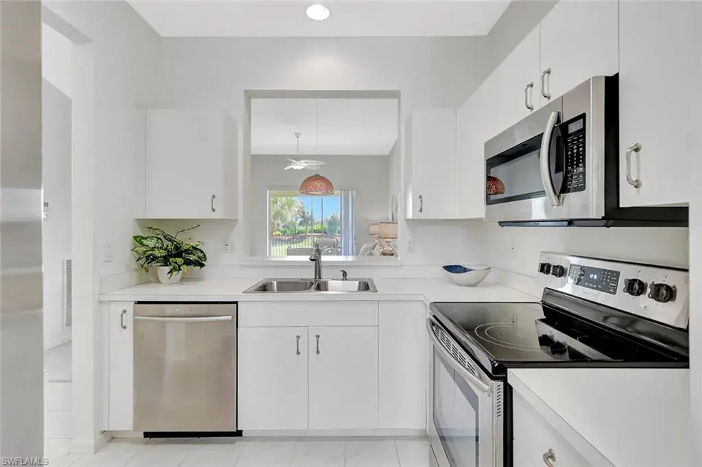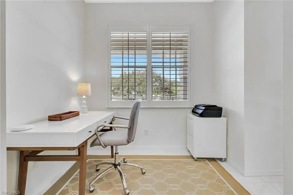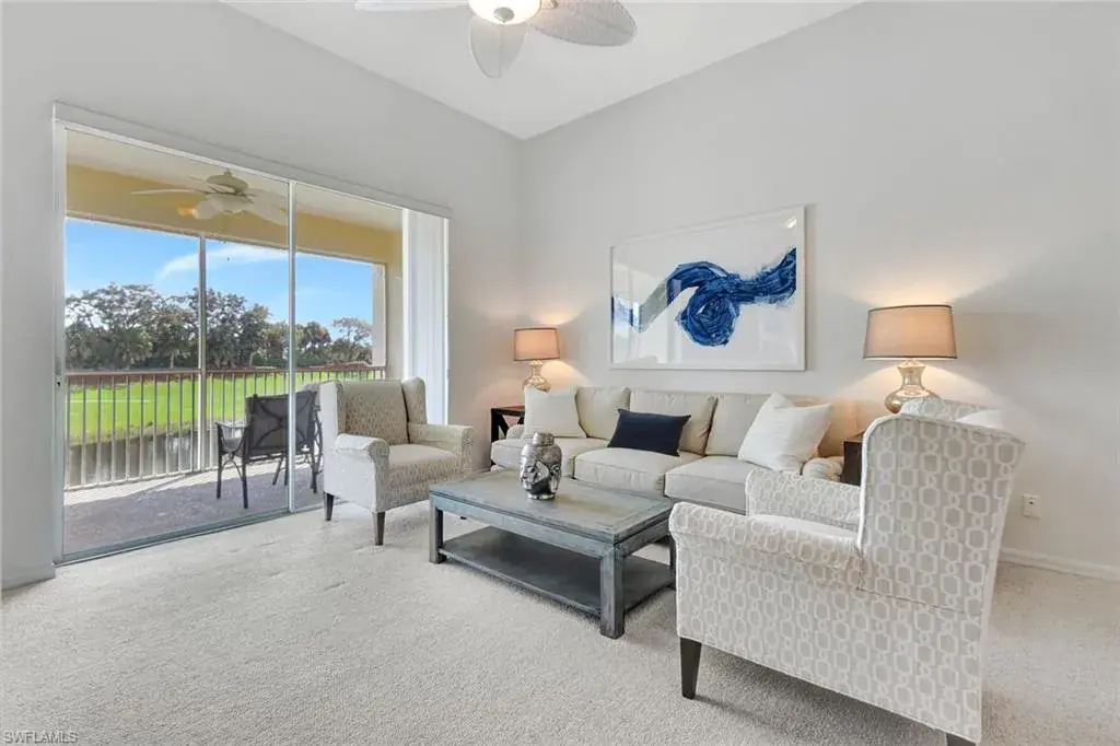 Welcome to your new home in the highly sought-after Stonebridge Country Club. This true bundled golf community is ideally located in prestigious North Naples—just minutes from world-class beaches, shopping, dining, and entertainment. This 2-bedroom, 2-bath second-floor condo is offered TURNKEY FURNISHED, for effortless living, and includes one covered-parking spot, as well. Step inside this light and bright residence to discover soaring volume ceilings, neutral ceramic tile flooring, plantation shutters, in residence laundry, and much, much more. The kitchen features stainless steel appliances, ample cabinetry, and generous counter space—perfect for everyday living or entertaining guests. The spacious primary suite and inviting guest bedroom provide comfort and privacy for residents and visitors alike. Relax on your screened-in lanai and take in the gorgeous eastern exposure with serene lake and golf course views overlooking the Par-4 14th hole. With newer AC and hot water heater, this home is ready for you to move in and start living your best Naples lifestyle today. Stonebridge is a community where every residence includes a full golf membership and access to an array of resort-style amenities. Enjoy the Gordon Lewis–designed par-71 championship golf course, featuring seven sets of tees for every skill level, a vibrant tennis community with five Har-Tru courts, a state-of-the-art fitness center, resort-style pool, and a beautifully renovated clubhouse offering multiple dining venues and social activities year-round. Opportunities like this in Stonebridge don’t last long—schedule your private showing before it’s gone!