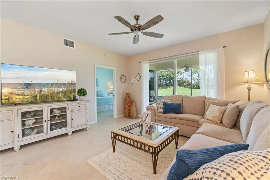 Welcome to your dream home in the highly sought-after Carrington neighborhood within Stonebridge Golf & Country Club! This beautifully maintained 2-bedroom, 2-bath condo is an end unit that offers an ideal blend of comfort, style, and resort-style living and is fully furnished! Enjoy peaceful golf course views from your private screened lanai, perfect for morning coffee or evening sunsets. The open-concept floor plan features a spacious living and dining area, a light-filled and updated kitchen with ample cabinet space, a large owner’s suite with a walk-in closet and ensuite bath and a new AC unit in 2024. The split bedroom layout provides privacy for guests, and in-unit laundry adds to the convenience. Stonebridge is a gated, bundled golf community offering world-class amenities including an 18-hole championship golf course, tennis, pickleball, a resort-style pool, fitness center, and a recently renovated clubhouse with fine and casual dining. All residents are golf members—no initiation fees required! Located just minutes from the beaches, shopping, dining, and downtown Naples, this condo is ideal as a year-round residence, seasonal retreat, or investment property.