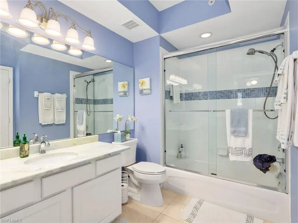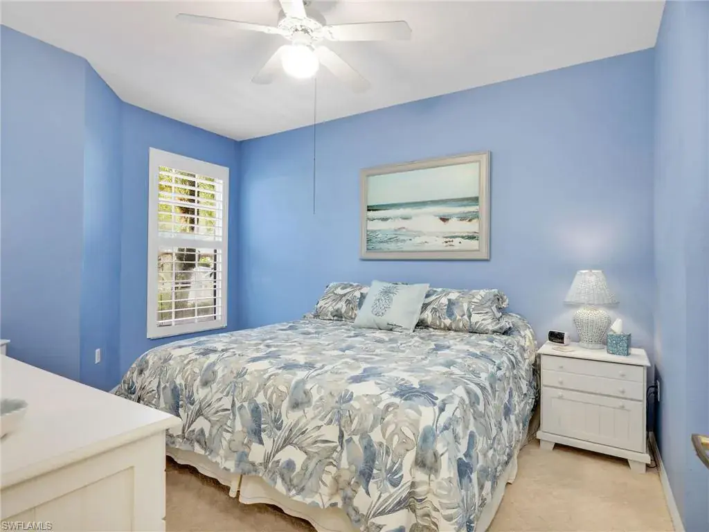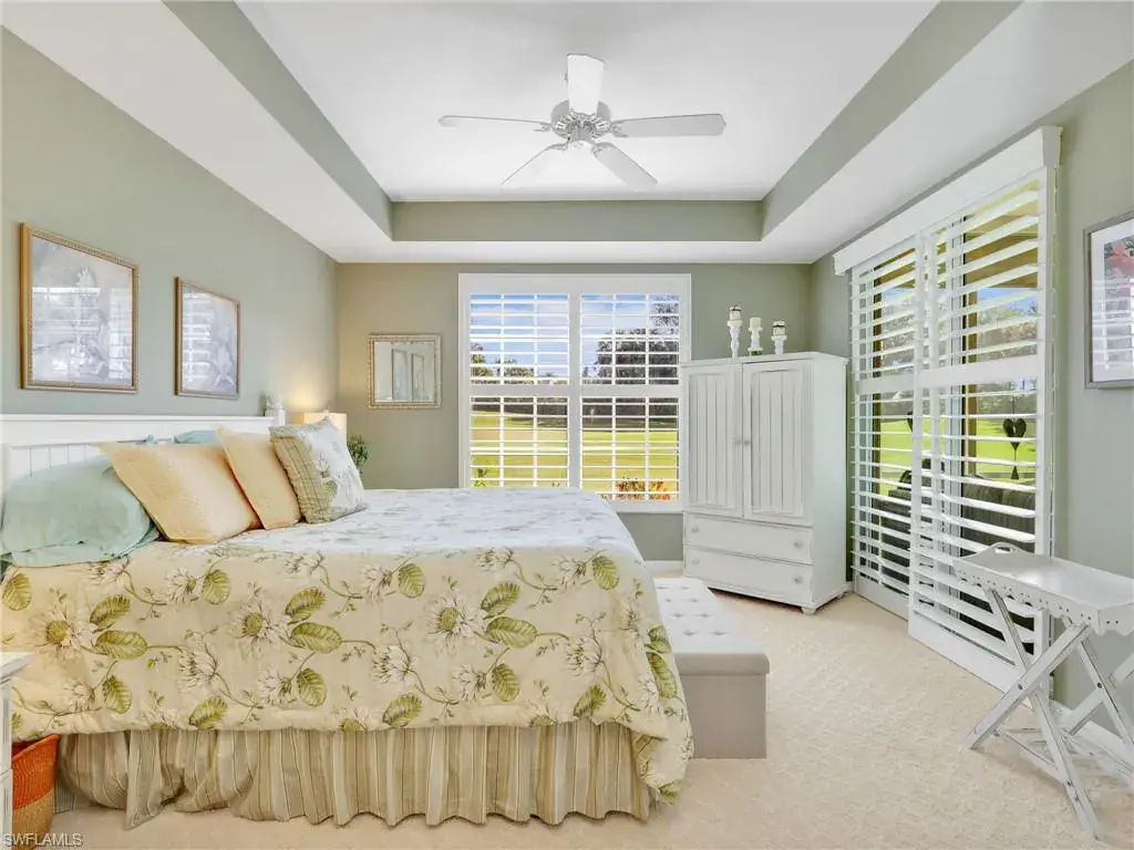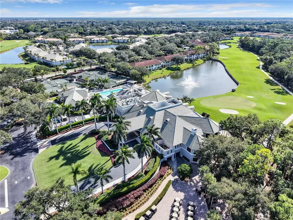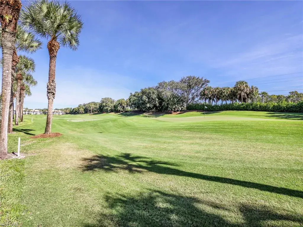 Welcome to this inviting first floor condo in the Carrington neighborhood of Stonebridge, offering comfortable living with one of the best views in the community. This 2 bedroom, 2 bathroom home overlooks the 14th hole green, giving you a front row seat to peaceful golf course scenery. The property is offered turnkey, making it easy to move right in and start enjoying the Stonebridge lifestyle. Inside, the layout feels open and welcoming, with plenty of natural light and an easy flow from the main living area to the kitchen and lanai. The home features plantation shutters throughout, adding a clean, classic touch and enhancing both privacy and style. The updated kitchen features modern finishes, good storage, and a bright breakfast nook. The primary bedroom is spacious and features a tray ceiling for added character. The attached primary bath includes dual sinks and a walk-in shower, offering both comfort and convenience. A guest bedroom and full guest bath provide a private space for visitors. One of the highlights of this home is the impact glassed lanai, which lets you enjoy the gorgeous golf course view in comfort throughout the year. Whether you’re relaxing in the afternoon or enjoying evening breezes, this space truly elevates the home. The building also received a new roof in 2019, the unit has a new AC system in 2023 and water heater in 2020 providing added peace of mind. Living in Stonebridge means enjoying a highly sought after country club lifestyle with amenities that include an 18-hole championship golf course, tennis, a fitness center, dining options, and an active social scene. All of this just minutes from Naples’ beaches, shopping, and restaurants.