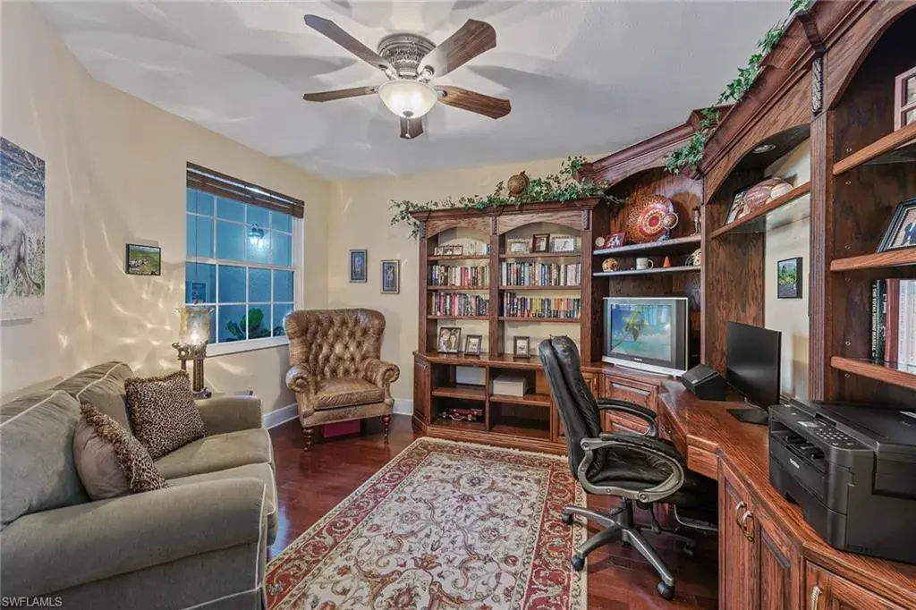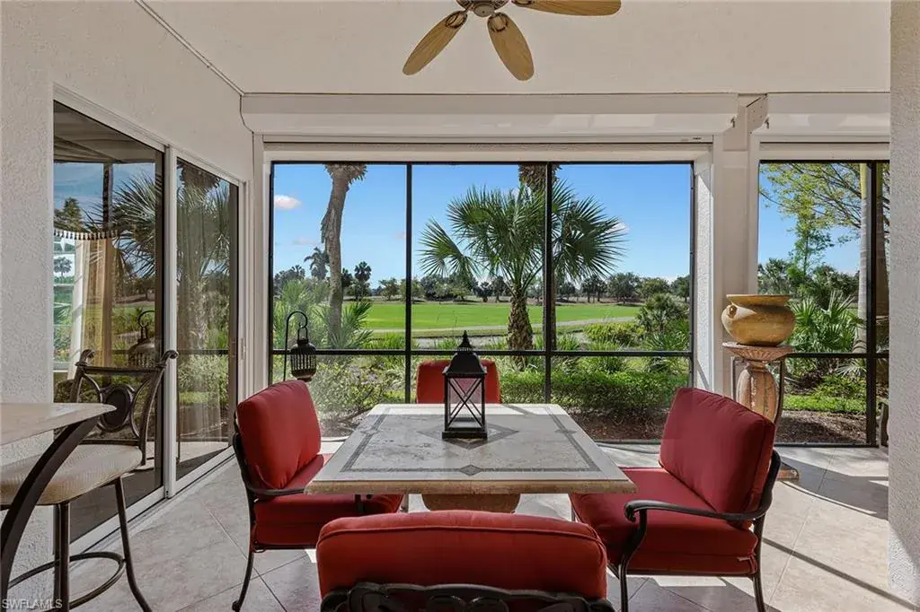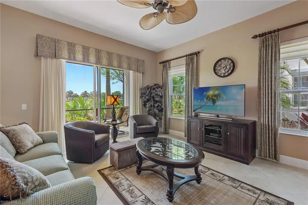 Introducing a beautifully maintained three-bedroom plus study, two full-bath coach home with two-car garage in the sought-after double-gated Cascada neighborhood of Fiddler’s Creek. Ideally on the first floor, this end-unit offers tranquil southeastern golf course views, an inviting courtyard entry, and a functional layout designed for comfort and elegance. Tile flooring runs throughout the main living areas, creating a seamless flow between expansive living room, family room and kitchen. Offered furnished, this condominium is filled with abundant natural light, enhanced by large windows and sliding doors that frame picturesque views of the golf course from multiple vantage points, including the main living areas, lanai and primary suite. The kitchen is a central gathering space, featuring a large island ideal for casual dining or entertaining, complemented by a stylish tile backsplash, natural gas cooking and generous cabinet space. Whether you’re preparing a quiet meal or hosting guests, the open-concept design connects the kitchen with the surrounding living and dining areas, offering functionality and flow. A newer HVAC system (2020) and a tankless water heater add modern efficiency and value. The primary suite is a private retreat with double door entry, two walk-in closets, featuring a primary bath with dual vanities, and a separate tub and shower. A set of double doors leads into the versatile den, ideal for a home office, media room or additional guest space. Go out to the screened lanai with electric hurricane screens and enjoy the serenity of the surrounding greenery and golf course views, an ideal spot for morning coffee or evening relaxation. The thoughtful design of this home allows for natural breezes and plenty of sunshine to fill the space throughout the day, creating a bright and airy atmosphere. Additional highlights of Cascada are the newer exterior paint, newer roof, lush landscaping, convenient village pool and a gated cul-de-sac street with no drive-through traffic. Enjoy access to world-class amenities including the award-winning Club & Spa, offering fine and casual indoor/outdoor poolside dining, fitness center with trainers and classes, resort-style pools, hot tub, spa services, sauna, steam room, bocce, an active tennis and pickleball program, and an extensive event calendar. Optional beach and marina memberships are available, and you also have the option to join the equity Creek Golf Course with new clubhouse and newly renovated golf course. Outstanding location with Publix, nail salon, hair salon, urgent care and a health food café/store coming soon, just outside the gate. Convenient to executive airport, parks, museums, kayaking, paddleboarding, beach yoga, restaurants, boutiques, art galleries and all Naples and Marco Island popular activities.