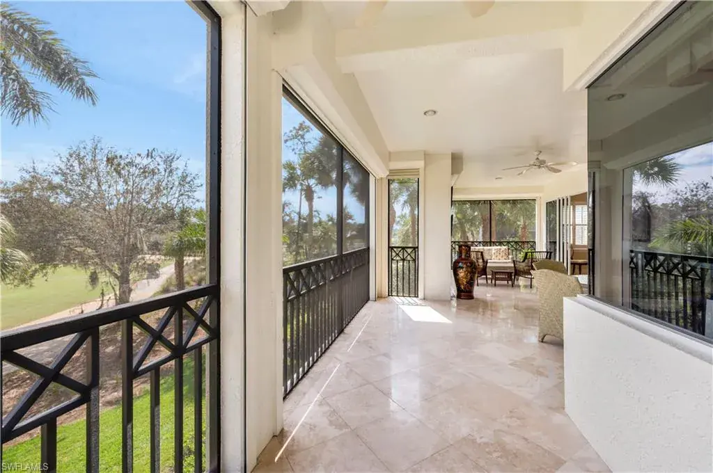 Bright & big golf course views from your screened & shuttered 1,000 sq. ft. balcony. Jerusalem limestone flooring throughout the entire residence & out to both balconies also. Special features include: desirable Gas cooking & gas water heater, crown molding throughout, separate living & family rooms, electric storm shutters, dual Plantation shutters, 2 balconies (larger screened & smaller balcony is open), private elevator & private 2 car garage. Steps to the tropical pool, spa, water feature & grilling stations. The buildings were just painted and new screening added. A Medallion Golf membership purchase is mandatory with this residence purchase, but seller may offer a discount toward the $200,000 membership deposit!.