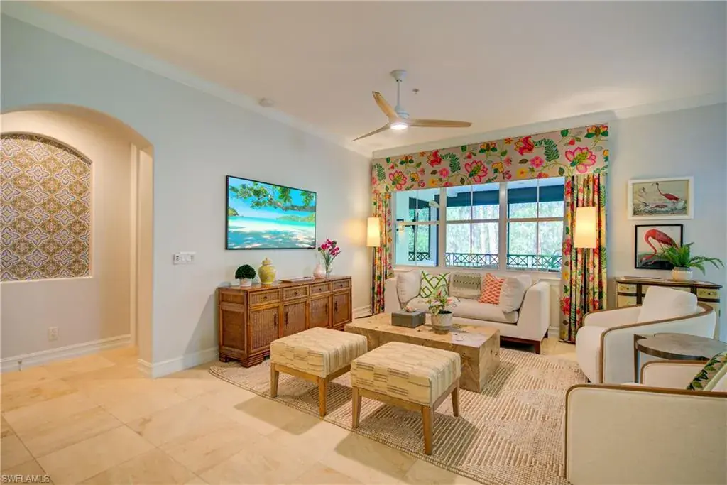 The expansive great room opens to a large screened lanai overlooking a tranquil preserve—perfect for dining, entertaining, or relaxing. Thoughtful details throughout include marble floors, custom window treatments, crown molding, and built-in cabinetry.