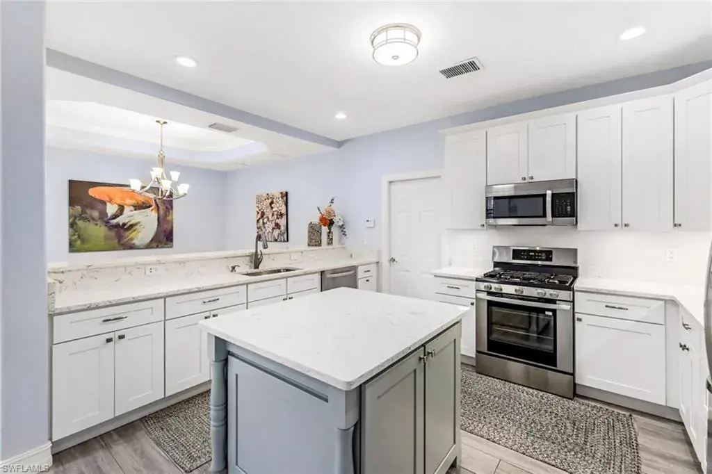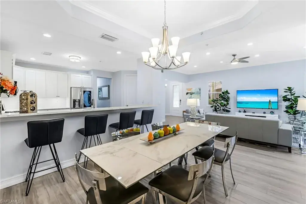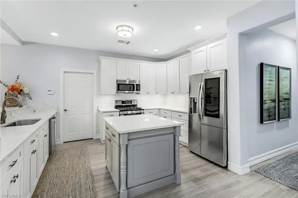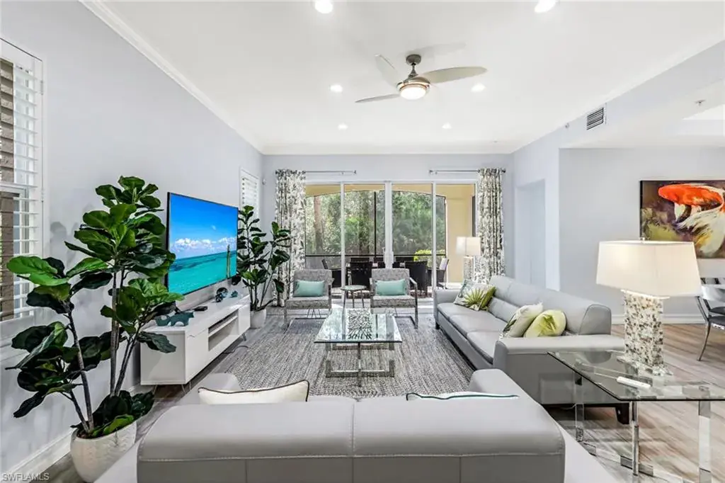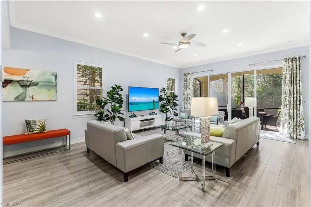 Step into this spectacular first-floor residence in the prestigious Tiburon community, where luxury and modern updates create a seamless, move-in-ready retreat! Beautiful plank tile flooring graces the entire condominium, setting a sophisticated tone throughout. The exquisite kitchen impresses with sleek quartz countertops, center island, a wraparound breakfast bar, recessed and under-cabinet lighting, soft-close doors and drawers, and a walk-in pantry for added convenience. Both baths boast matching quartz countertops, enhancing the property’s cohesive elegance. The spacious primary suite offers a walk-in closet, dual sinks, a large tile walk-in shower, a relaxing soaking tub and glass block windows that flood the space with natural light while maintaining privacy. Step out onto the expansive lanai, where lush landscaping and scenic preserve views await, creating a serene outdoor oasis. This property also includes a two-car attached garage, complete with epoxy flooring and built-in cabinetry. Living in Tiburon is unique, with access to the world-renowned 36-hole Greg Norman-designed golf course, managed by Troon and host to annual PGA and LPGA events. The community also features an exclusive Ritz-Carlton resort, complete with multiple waterslides, a lazy river, and a poolside bar and grill. Further perks include transportation to Vanderbilt Beach, access to a breathtaking Mediterranean-style 27,000-square-foot clubhouse, reciprocal Troon privileges, spa services, a state-of-the-art fitness center, tennis courts and a golf simulator. Indulge in the ultimate luxury golf lifestyle at Tiburon. Memberships are optional but not mandatory.