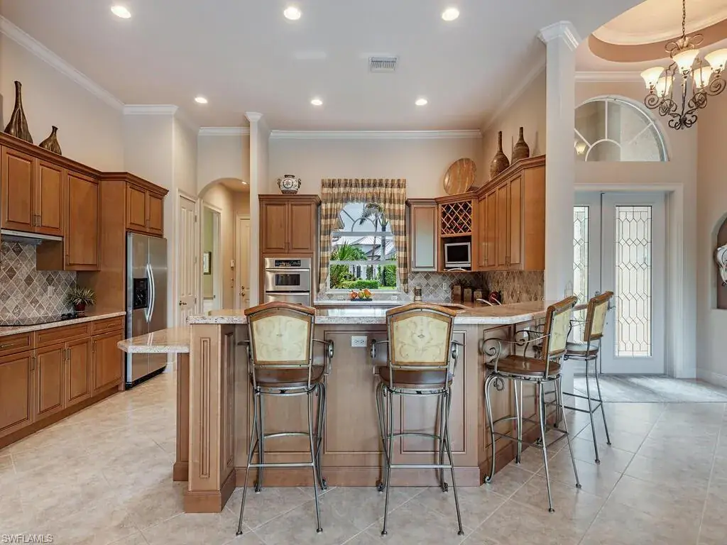 First time to the market! This is an extremely well-maintained single family pool home nestled in one of the nicest locations within Imperial Golf Estates. With western exposure, expansive yards on both sides, and views of a serene lake framed by a lush landscaping, this home offers exceptional privacy and breathtaking sunsets. Castlewood is a small enclave of homes within walking distance to the Clubhouse. Built in the 500X flood zone in 2006, 1749 Supreme Court boasts a 3-car garage, a large lanai with roll down storm shutters, solar heated pool and spa, pocket glass doors overlooking the lake view, a split 3-bedroom floor plan, high ceilings, whole house water softener, updated sound system, resurfaced garage floor and new landscape lighting. This home is being sold turnkey furnished with a few exclusions. Imperial Golf Estates has very low fees. The club and the (2) 18-hole championship golf courses are optional. This is a rare opportunity to own a beautifully cared-for home in Imperial Golf Estates, offering comfort, privacy, and the perfect Naples lifestyle.