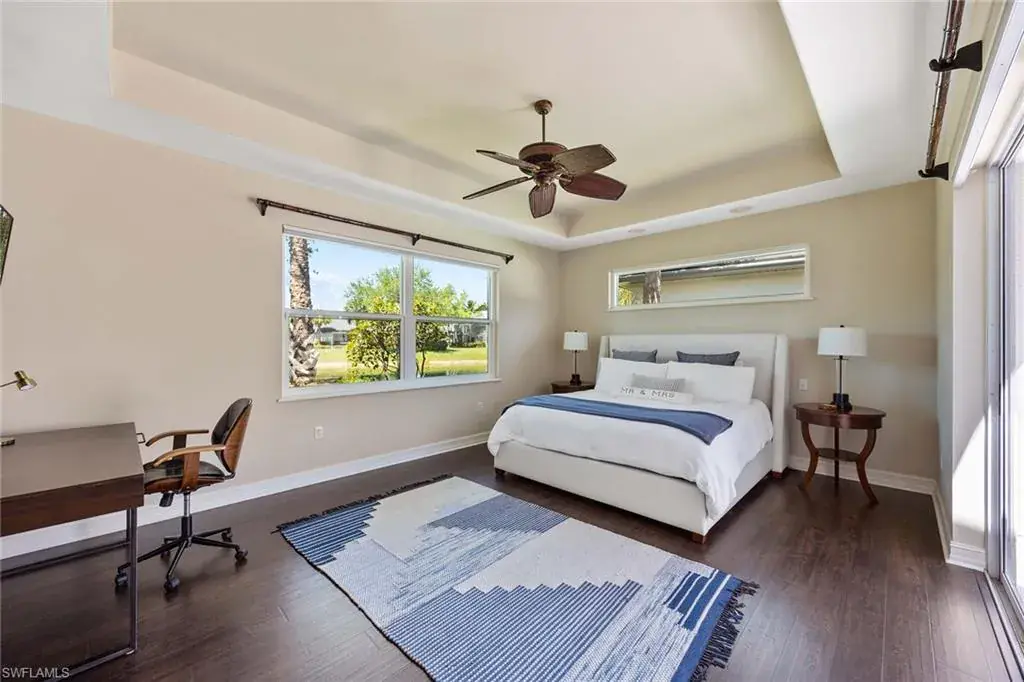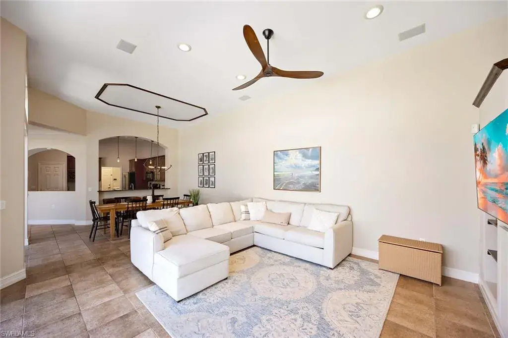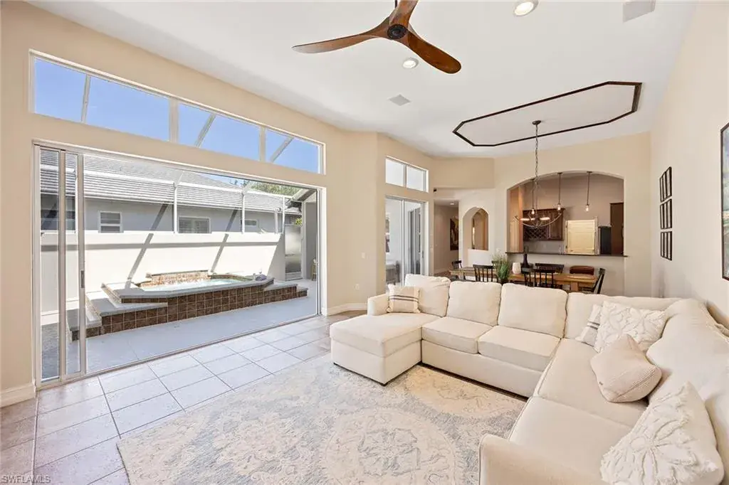 This beautiful luxury villa checks all the boxes, new roof, new impact glass and much more. Massive ceilings, towering doors, and an open courtyard layout that brings in tons of natural light. The covered lanai disappearing doors open to an eight-person in-ground pool spa, ideal for relaxing or entertaining. Enjoy southwest-facing long lake and fountain views right from your main bedroom. Inside, the home features tray ceilings throughout, high-end kitchen, tankless hot water, an integrated sound system, and designer fans throughout—every inch is thoughtfully upgraded. In Tarpon Bay, residents have access to the Castaway Club, which includes a full clubhouse, weight and cardio gym, yoga studio, Har-Tru clay tennis courts, a lakefront infinity pool, hot tub, kayak dock with boat storage, gazebo pier, barbecue grill area, and more. Whether you’re looking for a full-time home or a seasonal getaway, this villa offers easy living in a resort-style setting.