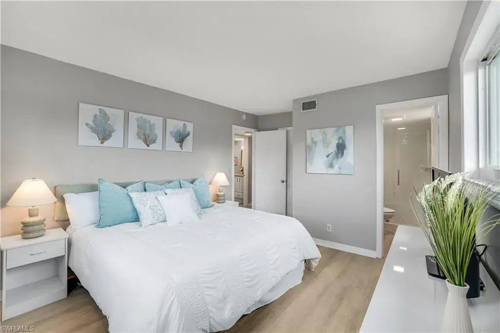 Move right in and enjoy the best of downtown Naples with this updated corner-unit, 2-bedroom, 2-bath condo in Central Garden. The desirable floor plan is filled with natural light, featuring brand-new impact glass windows throughout and a sliding door that opens to a private balcony — the perfect place to relax and take in vibrant sunset skies. Offered turnkey furnished, the residence is ready for immediate enjoyment. The entire condominium has recently completed an exterior renovation, giving the community a fresh, updated look. Residents enjoy a heated pool surrounded by tropical landscaping, poolside grills, assigned parking with ample guest spaces, extra storage, and high-speed internet and cable. Known for its welcoming atmosphere and unbeatable location just blocks from Naples Beach, Fifth Avenue South, and Wynn’s Market, Central Garden continues to be one of Olde Naples’ best values.