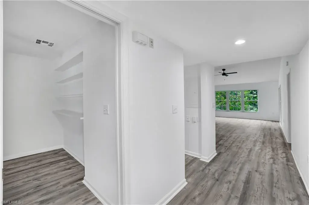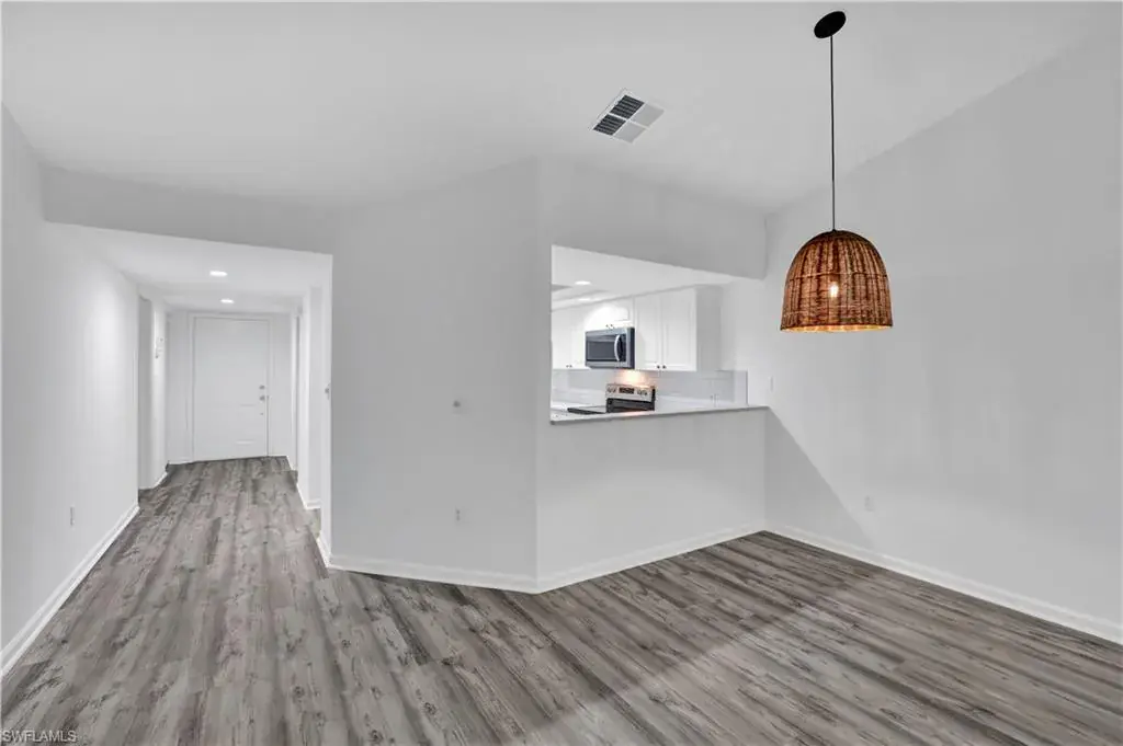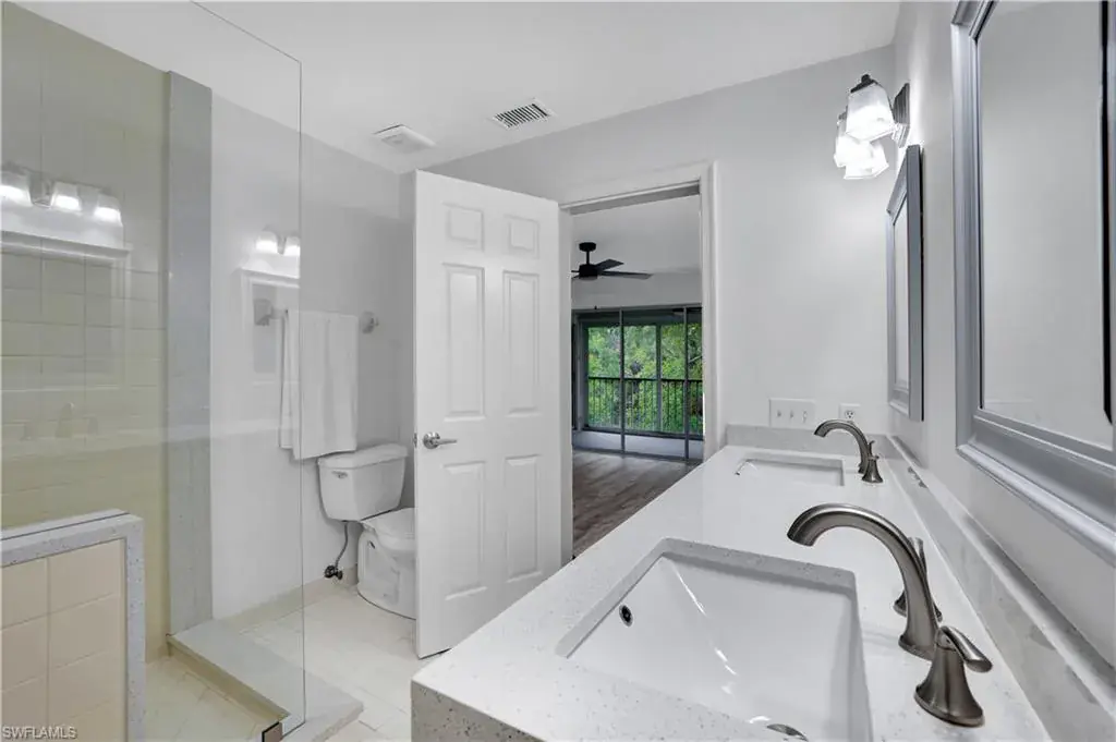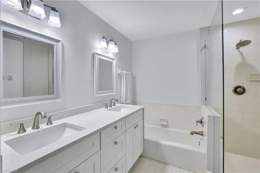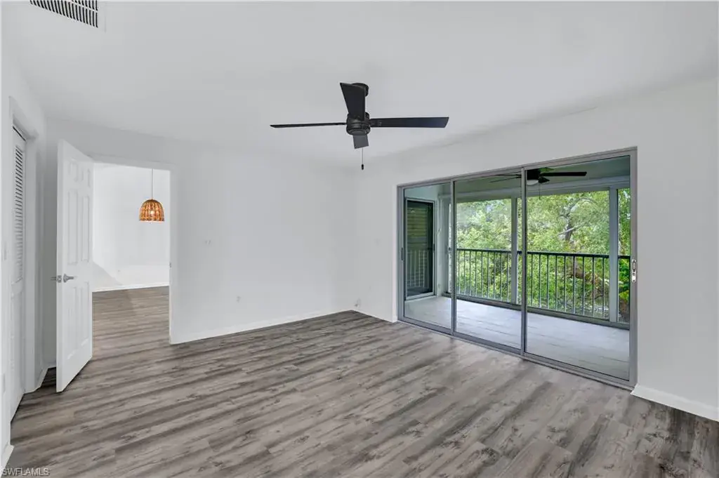 Lovely Bright southern exposure second floor unit enjoys lake and lush tropical landscape views. Tastefully refreshed decor throughout includes new paint, LVP light wood flooring, ceiling fans, closets , baths, newer appliances and kitchen backsplash . Opportunity to own in this low density low rise coastal community. This is a spacious, 2 bedroom plus den with 2 baths with an enclosed lanai that provides year round use. Chanteclair Maisonettes is at the south end of Pelican Bay close to Artis-Naples and Upscale Waterside Shops. This residence is only steps away to the community heated pool. Located close to the tram for beach access. Pelican Bay amenities include three miles of beachfront, two private beachfront pavilions, kayaks and canoes for resident use, miles of walking paths, fitness center, tennis. Located between upscale Waterside shops, restaurants and the Ritz Carlton Beach Resort.