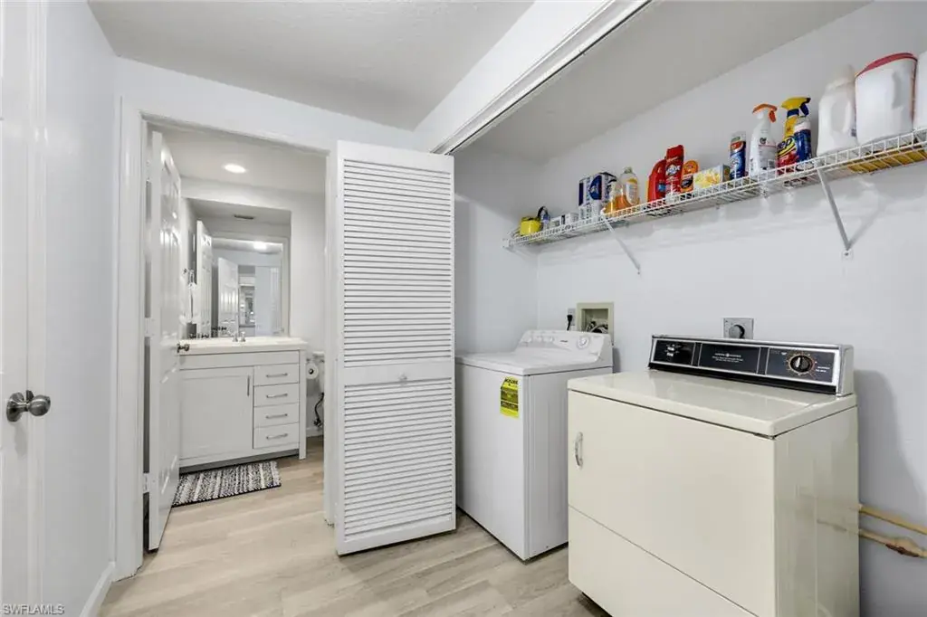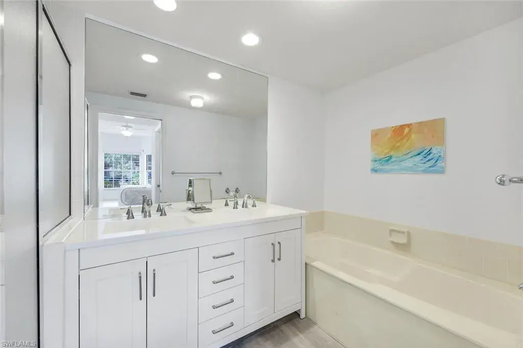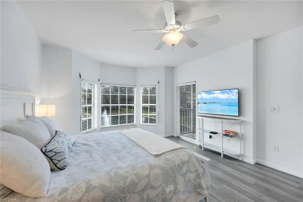 This unit has tons of updates and upgrades. Most furniture can be included if buyer chooses. Wonderful spacious residence with serene coastal decor that creates a calm retreat with sparkling lake views. There are 2 screened lanais allowing coastal breezes to flow through. The beautiful luxury vinyl wood plank flooring has warm tones. The new kitchen has white shaker cabinetry, quartz counters, stainless steel appliances and a tray ceiling with accent lighting and crown molding. This modern design has the popular open shelving concept and glass cabinetry. A large pantry closet has enough extra space for storing your small appliances too. The owner’s suite has lovely lake views, large walk-in closet and vanity with dual sinks, quartz counters and a separate shower and soaking tub. The guest bedroom has ample closet space and a refreshed bathroom with new cabinetry and quartz counters. The main lanai has storm shutters and gorgeous lake views. The second lanai off the kitchen has colorful skies at sunset and has storm shutters too. It is an easy walk to the community pool and hot tub. Chardonnay is nestled in the highly sought after neighborhood of the Vineyards. Close to a large variety of shopping, dining, Naples’ white sandy beaches, medical facilities and I-75 for traveling. This one checks all the boxes.