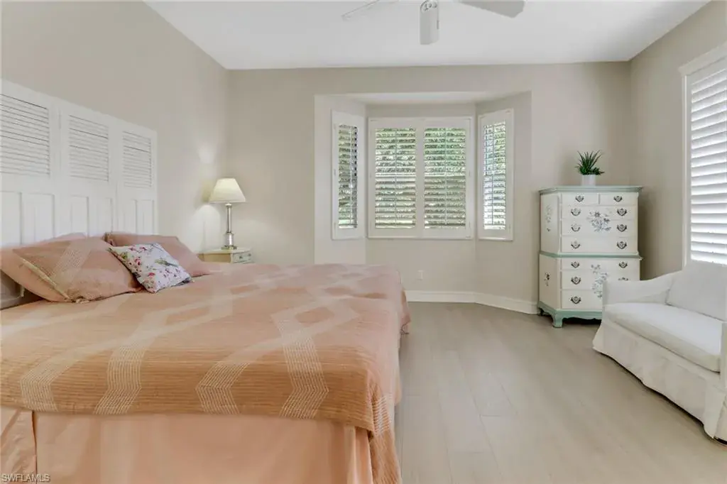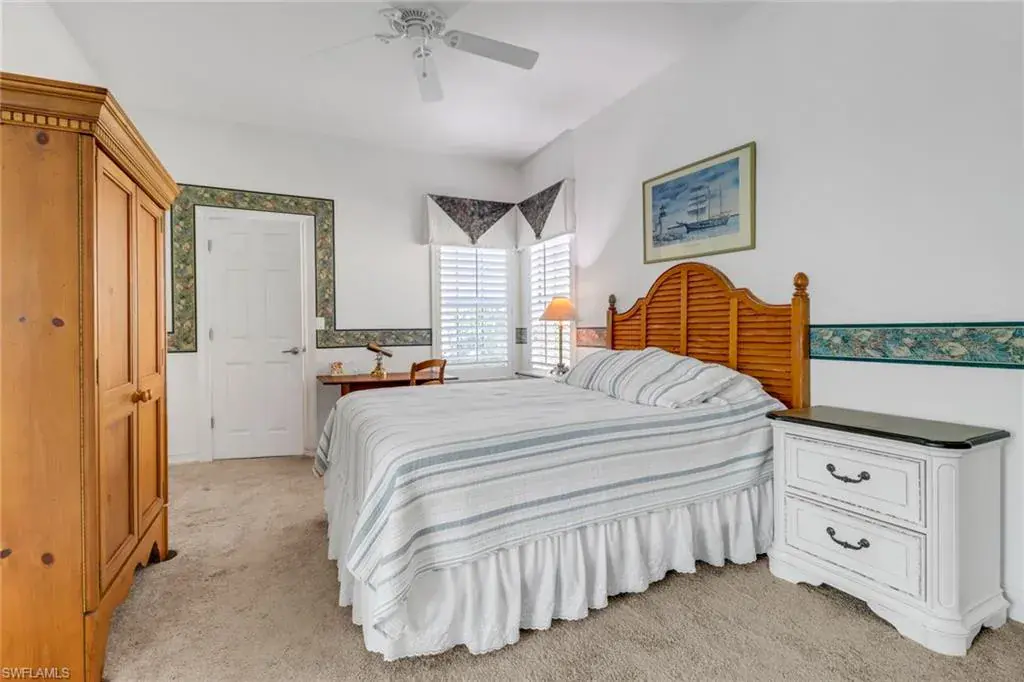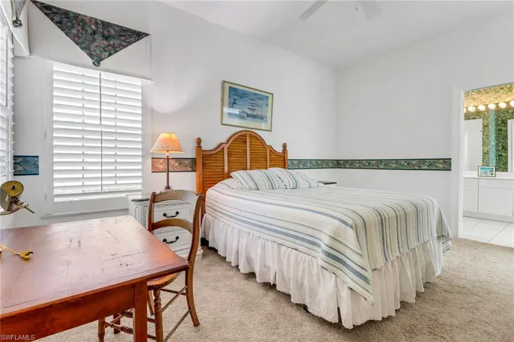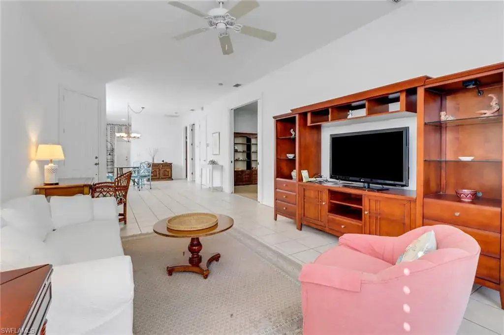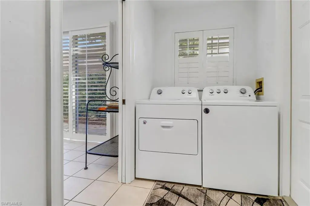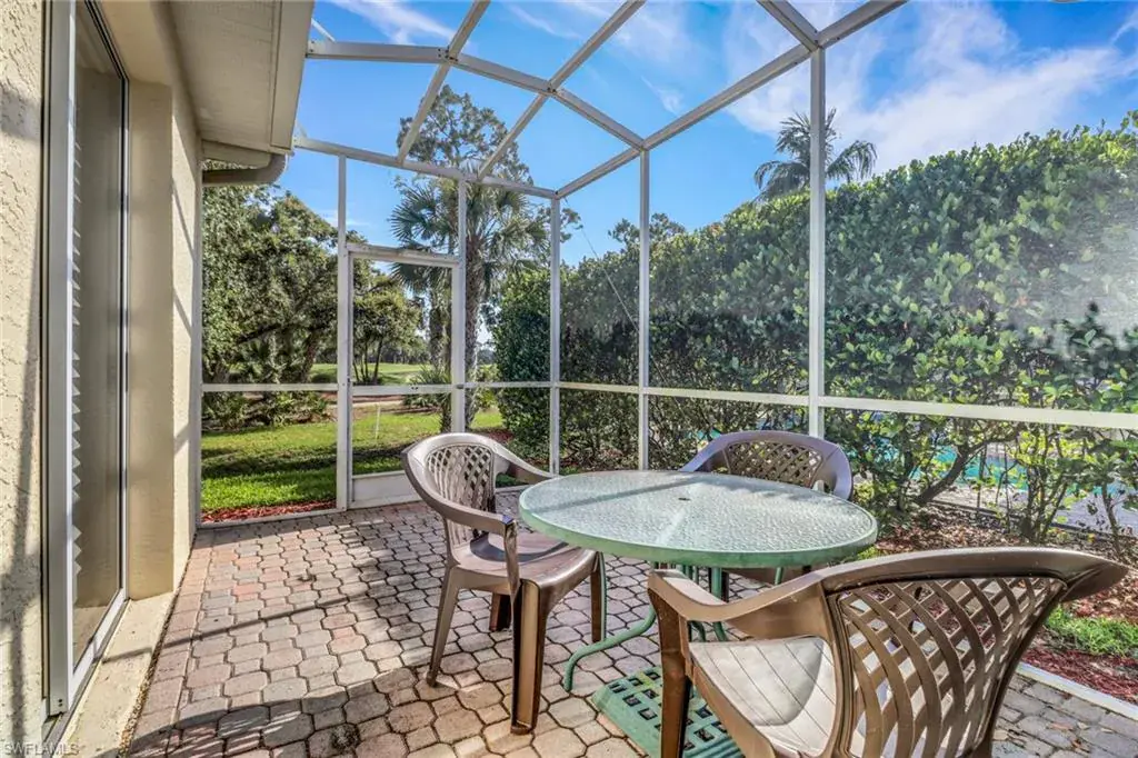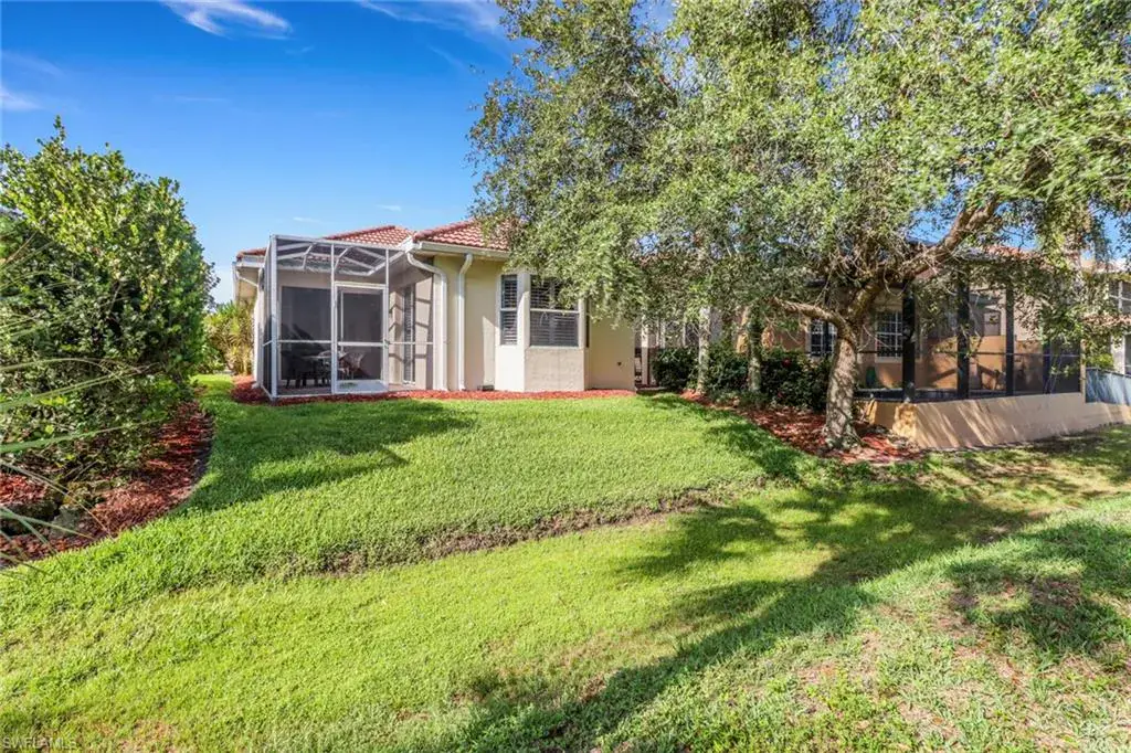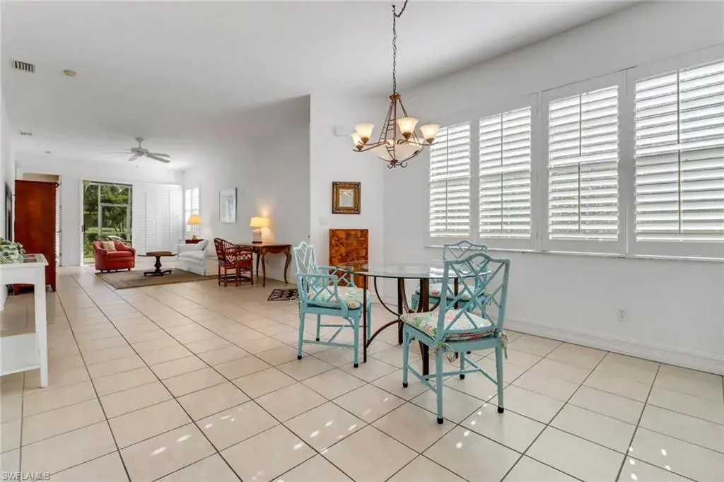 Experience the beauty of Lely Resort from this inviting, spacious detached villa. Offering a bright, open-concept layout with a desirable split-bedroom design, this home features two bedrooms plus a versatile den that could easily be transformed into a third bedroom. Key upgrades include a newer tile roof (installed in 2018) and a recently updated washer and dryer. Enjoy breathtaking golf course views right from your own backyard, while the community pool, just across the street, offers a private-like oasis for relaxation. Lely Resort boasts two semi-private courses—Flamingo and Mustang—as well as a prestigious private club, The Classics, for those seeking an exclusive golfing experience. Perfectly positioned between the tranquil shores of Marco Island and the vibrant cultural scene of downtown Naples, this location offers the best of both worlds. Additional features include plantation shutters throughout and new screens on the lanai, enhancing the overall appeal of this beautifully maintained home.