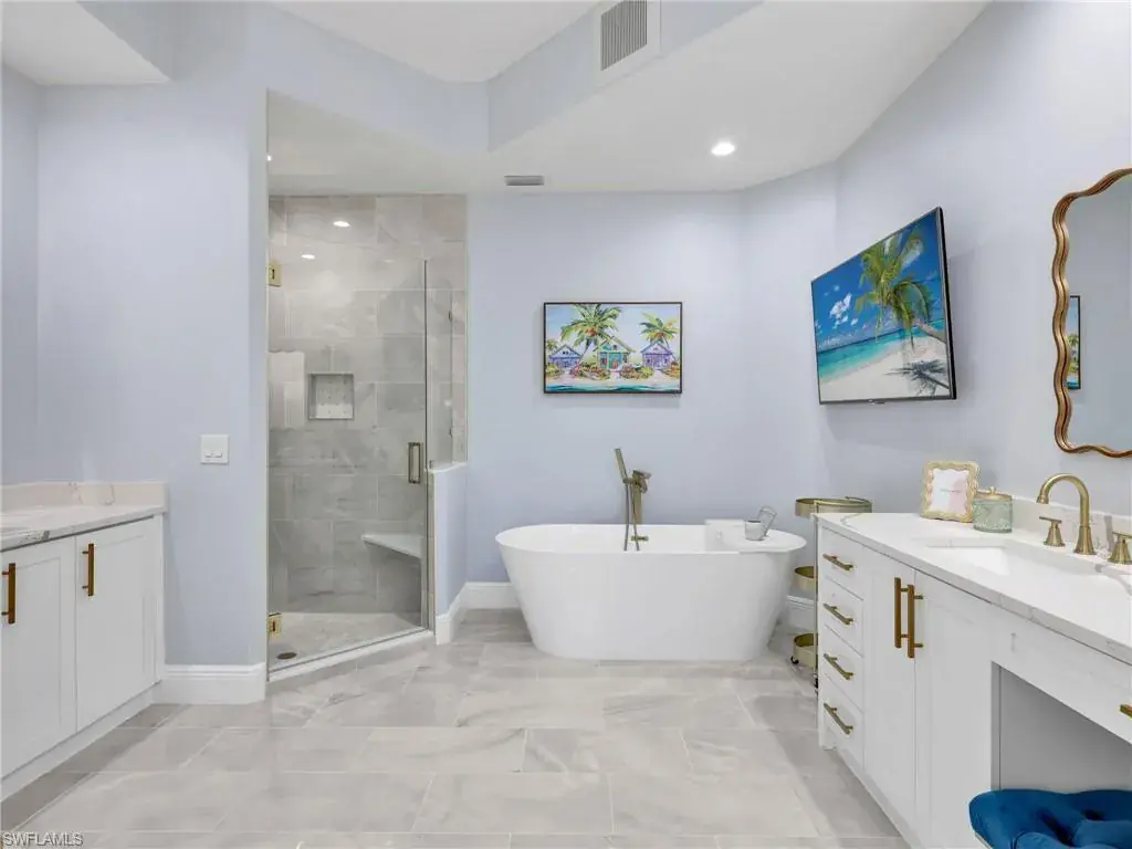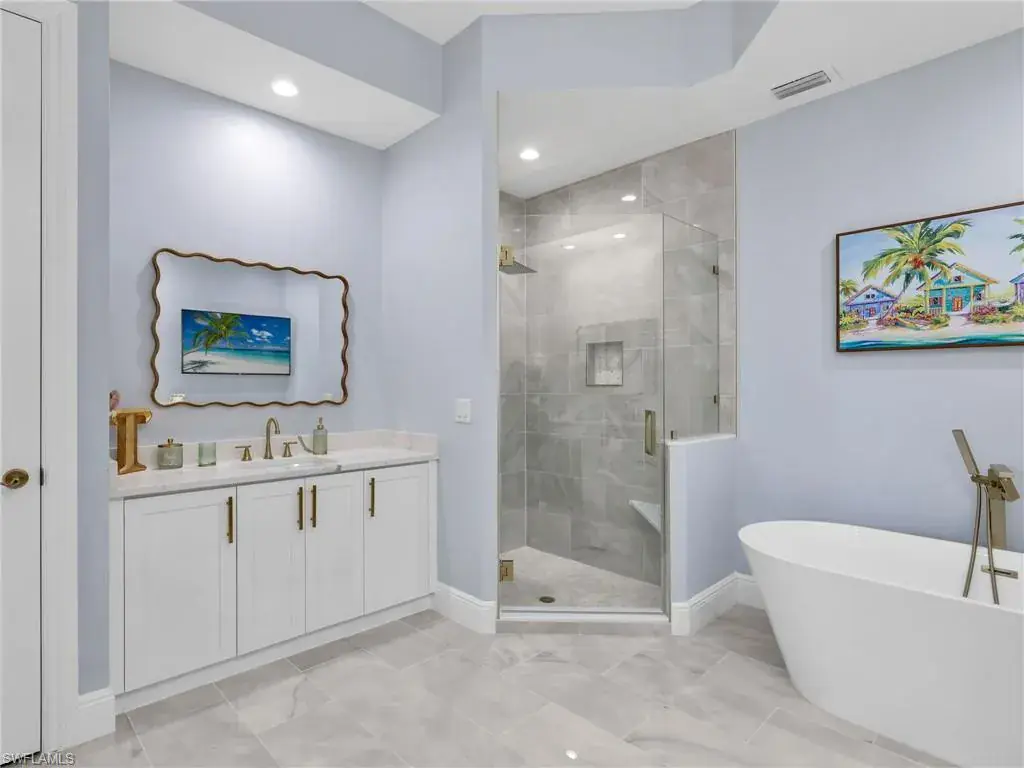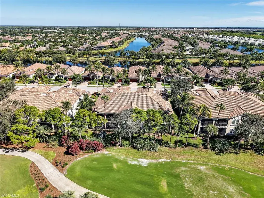Located 8th hole of the famous Marriott Resort owned Rookery Golf Club, this beautifully updated property is offered turnkey, allowing you to move right in and start enjoying the Fiddler’s Creek lifestyle from day one. Step inside to an inviting open layout filled with warm natural light and thoughtful finishes. The spacious living and dining areas are ideal for both daily relaxing and entertaining, highlighted by crown molding throughout the main living areas and a striking stone accent wall in the dining room. Plank tile flooring flows through the living spaces, adding both style and durability, while large windows and sliding doors connect seamlessly to the screened lanai. The den provides a flexible space perfect for an office, media room, or quiet retreat. The eat-in kitchen is fully renovated and designed for both style and functionality. It showcases a large island, stainless steel appliances, gas cooking, wine fridge, upgraded cabinetry, a pantry, and a tile backsplash, creating a sophisticated culinary space. The generous primary suite offers a private sanctuary with direct lanai access, two walk-in closets, and a luxurious master bath complete with dual sinks, a free-standing tub, vanity area, and an oversized walk-in shower. Two additional bedrooms are well appointed for guests or family, and the full guest bath is tastefully updated. A 2023 A/C system and 2024 tankless water heater provide added efficiency and peace of mind. Outside, the screened lanai offers a peaceful place to unwind and appreciate the golf course view with surrounding tropical landscape. Additional exterior features include a paver driveway and an attached 2-car garage for convenience and extra storage. Located within the award-winning master-planned community of Fiddler’s Creek, residents enjoy a truly upscale lifestyle. The Club & Spa features a fitness center, resort-style lagoon pool with poolside service, along with a full social calendar. The community also offers on-site dining, tennis, pickleball, bocce, a day spa, miles of walking and biking paths, and beautifully maintained nature preserves. Golf membership is optional, providing flexibility while still offering access to an impressive 18-hole championship course for those who choose to join.