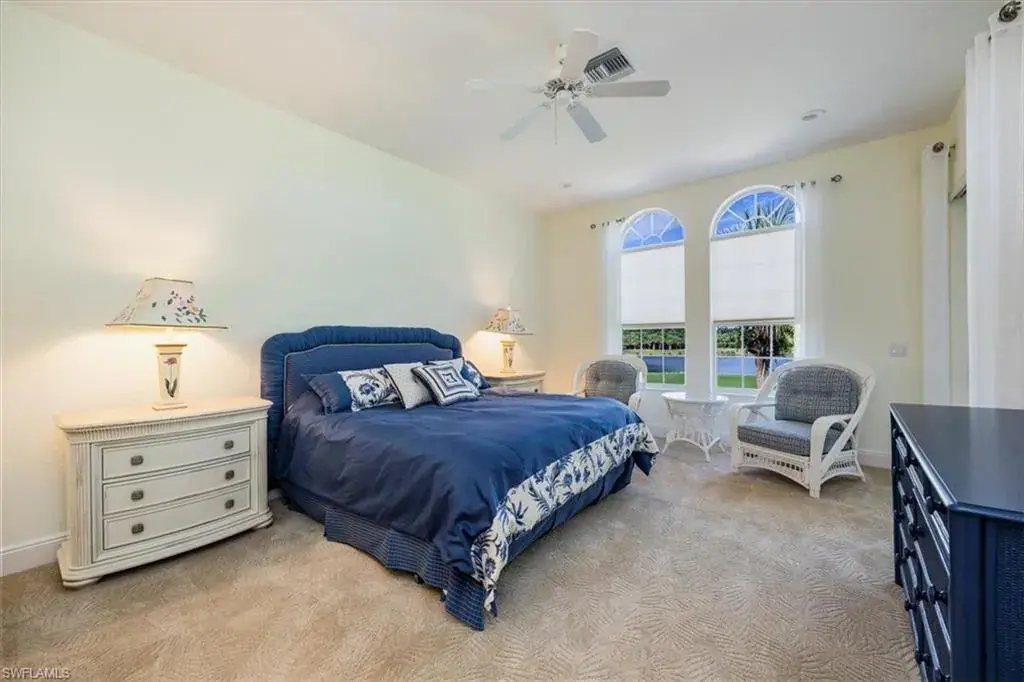 Fabulous Second-Floor End-Unit Coach Home with Golf Course Views. Discover elevated living in this spacious 3,010 sq. ft. second-floor end-unit coach home in the prestigious Cherry Oaks community at Fiddler’s Creek. This residence offers three generously sized split bedrooms, a private den, three full bathrooms, and an attached two-car garage with a private elevator—all enhanced by breathtaking golf course views. The large, open-concept kitchen flows seamlessly into the living and dining areas, perfect for entertaining or relaxing with family. Step out onto the expansive lanai overlooking the golf course and take in the peaceful, scenic views. Located in one of Naples’ most sought-after communities, Fiddler’s Creek, residents enjoy access to a wide range of resort-style