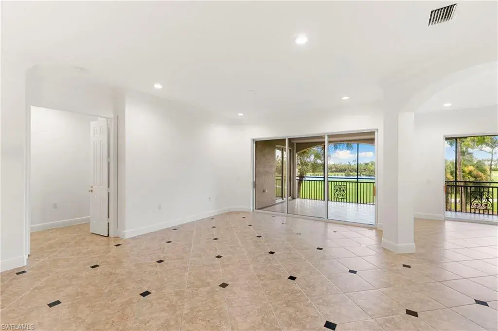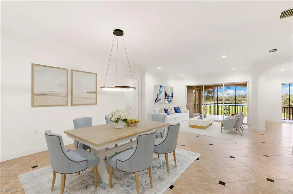 Step into elegance and comfort with this expansive 3-bedroom + den, 3-bathroom end-unit condo located in the well-regarded Cherry Oaks neighborhood. Boasting over 3,000 sq. ft. of interior space, this residence offers the ultimate in resort-style living. Enjoy panoramic golf course and serene water views from your private, expansive lanai — perfect for entertaining or relaxing and enjoying every Florida sunset. Enjoy intimate meals in your eat-in kitchen featuring granite countertops and a generously spacious pantry, or let the evening take you into your formal dining room where memories are waiting to be made. The property is further enhanced by crown moulding throughout and plantation shutters that adorn the home’s impact glass windows. With rich wood flooring, built-ins, and crown moulding, the den lends itself as an ideal space to express one’s more studious side. Complete with a 2-car garage, high ceilings, generous storage, and storm screens this home delivers luxury, convenience, and security. Don’t miss this rare opportunity to own a beautifully maintained, move-in ready condo with unparalleled views and space! The resort style community of Fiddler’s Creek is enhanced by a club and spa, fitness center, swimming pools, two golf courses, tennis courts, pickleball courts, a bocce court, fine and casual dining, social activities, and miles of biking and walking paths. Optional beach club and marina memberships are available. Experience the epitome of luxury living, where every detail is thoughtfully curated to complement your lifestyle.