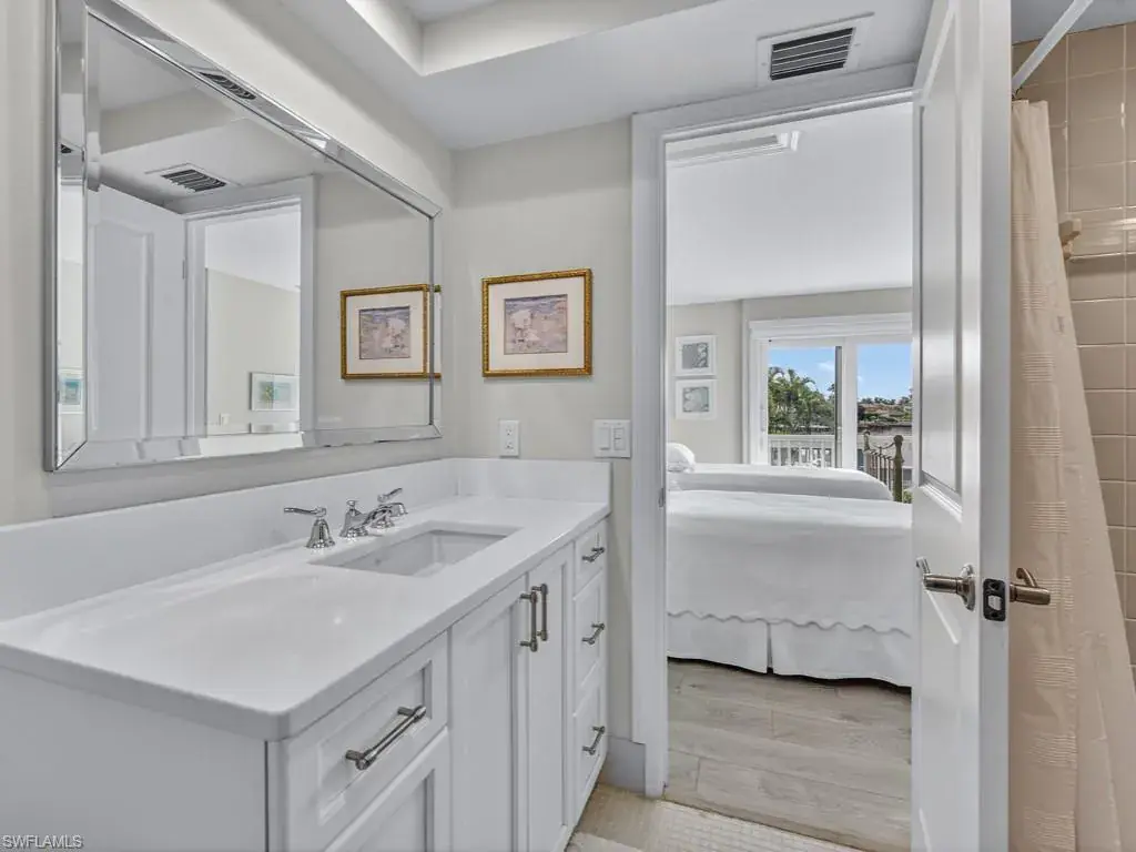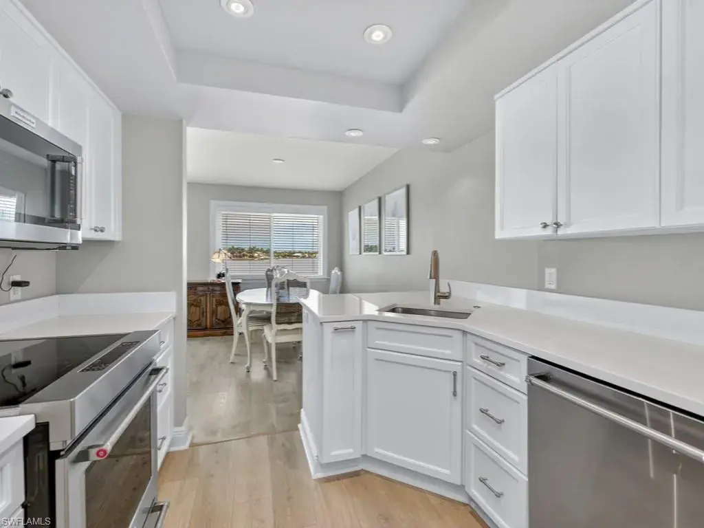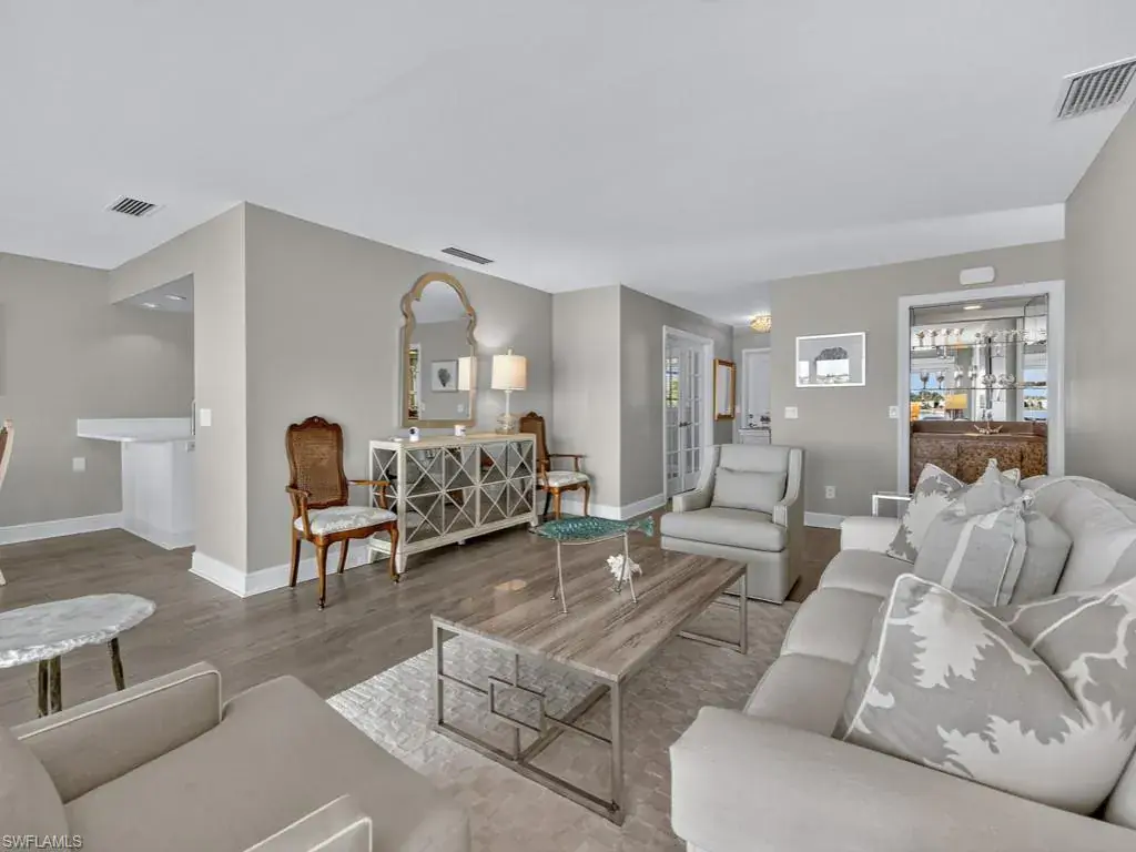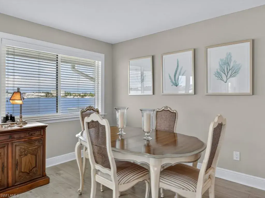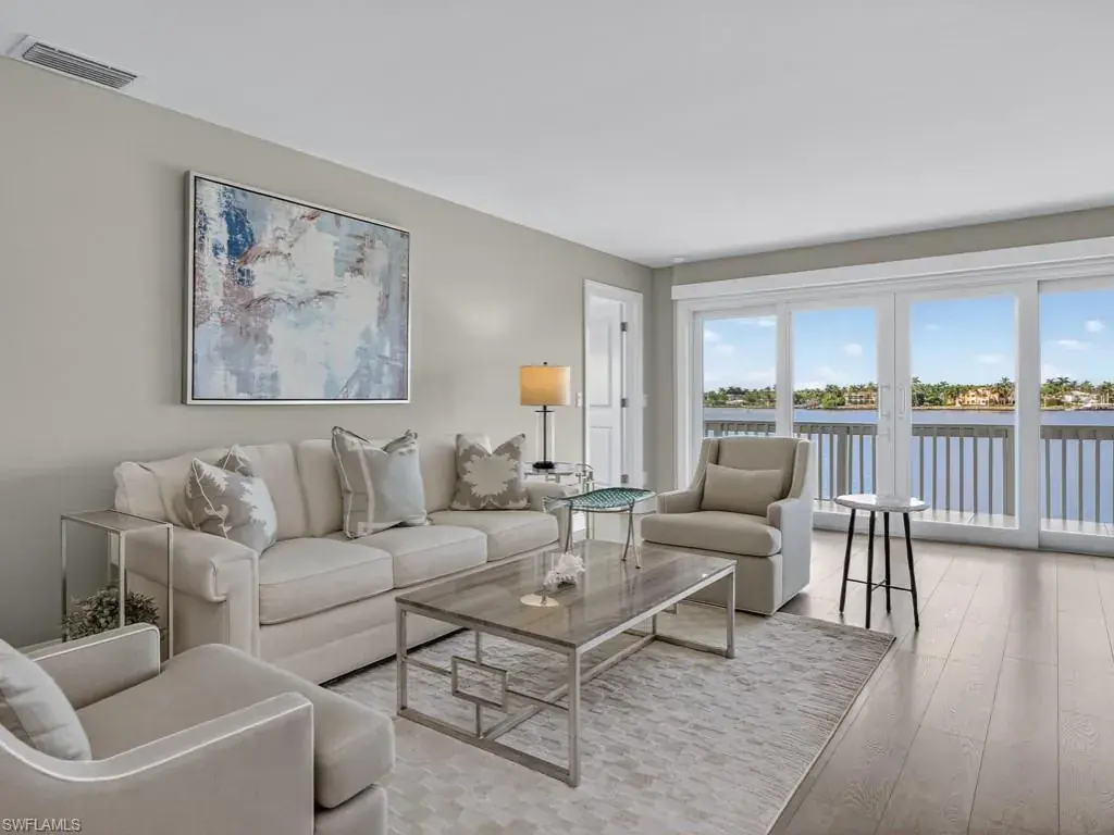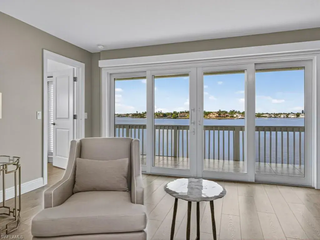 Unrivaled Views. Unmatched Lifestyle. Welcome to your dream coastal retreat in the heart of Naples’ coveted Oyster Bay, where breathtaking views and refined updates come together in perfect harmony. This beautifully renovated 2-bedroom + den, 2-bathroom condo offers commanding, unobstructed views of Naples Bay from nearly every room — including the living and dining areas and both bedrooms. Perched at the end of a quiet cul-de-sac, this residence offers direct Gulf access and includes a deeded dock, making it ideal for boating enthusiasts and sunset seekers alike. With desirable southern and western exposures, you’ll enjoy panoramic water views, golden afternoon light, and unforgettable Naples sunsets — all from the comfort of your own home. Set in a tranquil natural setting, watch dolphins glide, manatees surface, and coastal birds soar — right from your windows or balconies. This is more than a home — it’s a front-row seat to the serene rhythm of life on the water. Inside, you’ll find tasteful, modern upgrades including wood-look luxury vinyl flooring throughout, stainless steel KitchenAid appliances, soft-close cabinetry and quartz/quartzite countertops ,recessed lighting and motorized blinds for effortless ambiance and impact-resistant windows and sliders for peace of mind. Both bathrooms have been fully updated with sleek vanities, designer lighting, and spacious walk-in showers. Step outside to enjoy two private balconies, a covered carport, and extra storage. Located in the intimate community of Chesapeake Point, you’re just a short walk or bike ride to downtown Fifth Avenue, home to Naples’ finest dining, shopping, and cultural attractions. Whether you’re seeking a year-round residence or a luxurious seasonal escape, this waterfront gem delivers the ultimate Southwest Florida lifestyle — tranquil, elegant, and endlessly scenic.