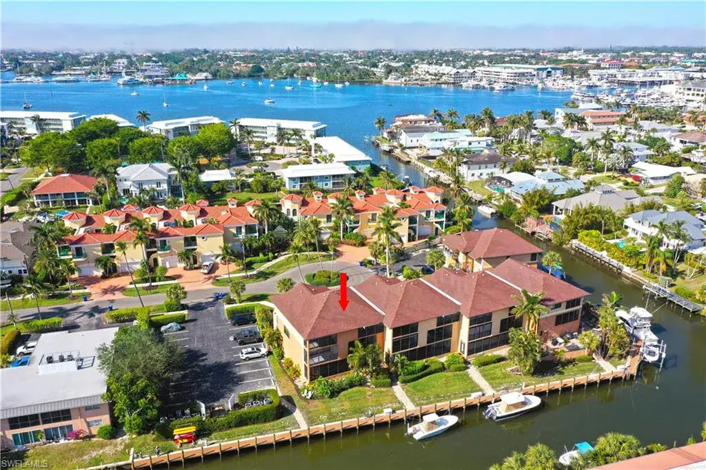 SELLER MOTIVATED! Discover a boaters paradise nestled in the heart of Naples. This hidden gem offers serene canal views with direct, bridge-free access to Naples Bay and the Gulf of Mexico. Imagine your 36-foot boat docked just steps away from your door, with water and electricity conveniently provided by the Association. This elegant two story residence features high ceilings, 2 bedrooms, 2.5 bathrooms and ample closet space. Start your day with coffee on the upper or lower lanai, and unwind during golden hour overlooking the tranquil water. The main living area boasts gorgeous diagonal tile flooring, while the renovated kitchen, complete with granite countertops and a breakfast bar, offers delightful water views. Recent updates include a new air conditioning system and roof in 2022. The community room, adjacent to the heated saltwater pool, has also been recently renovated, enhancing the friendly atmosphere of this charming complex. Situated on a quiet cul-de-sac, you’re just minutes away from the vibrant scenes of Bayfront, Tin City, 5th Avenue and the stunning beaches of Olde Naples. With your boat awaiting in the backyard, endless adventures beckon-be it sunset cruises or dining excursions. Now is the perfect time to embrace the waterfront lifestyle you’ve always dreamed of. One pet, any size, is permissible. Zero flooding in all hurricanes! This complex is high and dry! Let Clam Court make it a reality!
