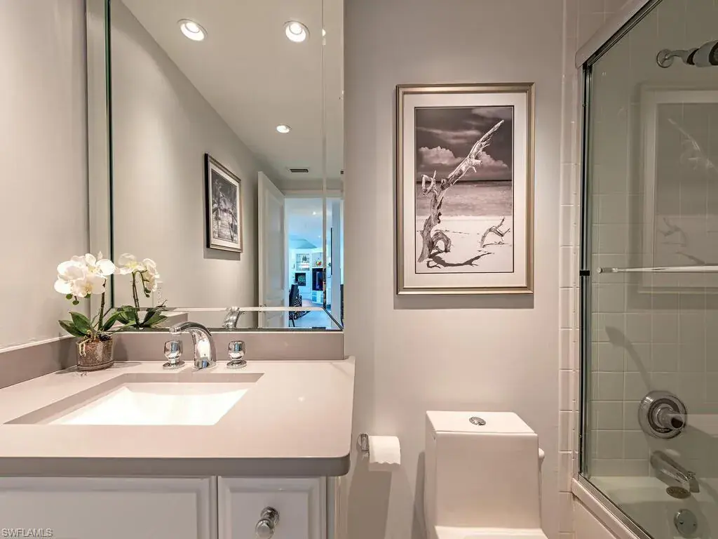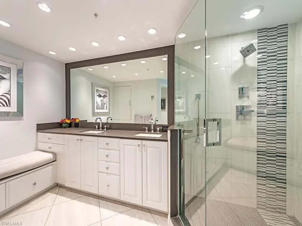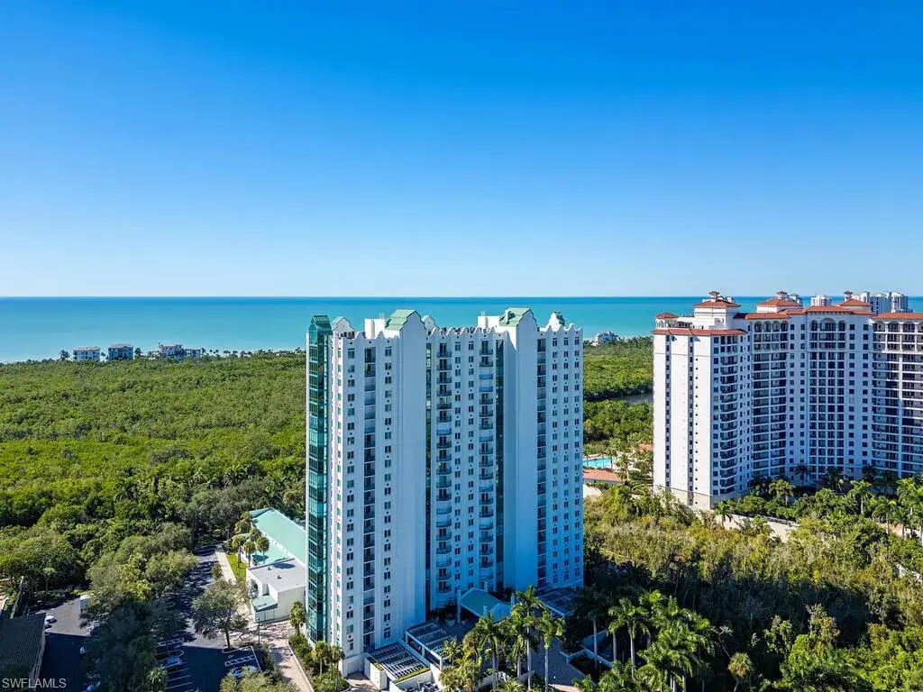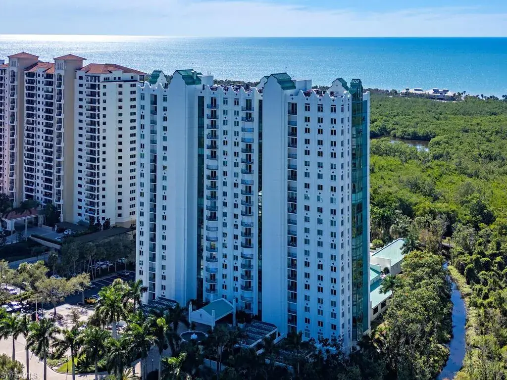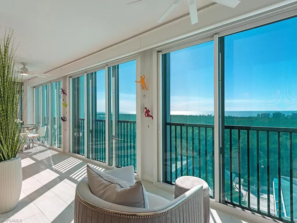This commanding 9th-floor residence boasts an extraordinary 50 feet of FLOOR-TO-CEILING GLASS, capturing uninterrupted views of the Gulf of Mexico. The additional sunrise terrace and easterly views provide tranquil golf course and lush landscape views. Inside, 2,417 square feet of sophisticated living include 2 Bedrooms plus a spacious Den, 3 Full Baths, and two elegant Living areas—the Den easily functioning as a 3rd en-suite bedroom retreat. Modern enhancements including porcelain tile, LED lighting, hardwired ethernet, surround-sound audio, electric blinds, and updated appliances blend comfort with contemporary style. Custom cabinetry and LED-lit closets elevate both utility and design. With 2 secure under-building PARKING SPACES, extra storage, and only 2 residences per floor, privacy and convenience are assured. Claridge offers a refined lifestyle with its Art Deco–influenced architecture, tropical pool deck, fitness and spa amenities, social rooms, 2 guest suites, and on-site management. Residents enjoy the full Pelican Bay experience, including private beachfront dining/bar, full beach service, kayaking, paddle boards, pickleball, tennis, fitness and miles of scenic trails and just moments from Artis–Naples, Waterside Shops, and Mercato.