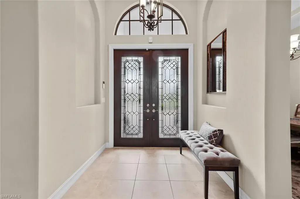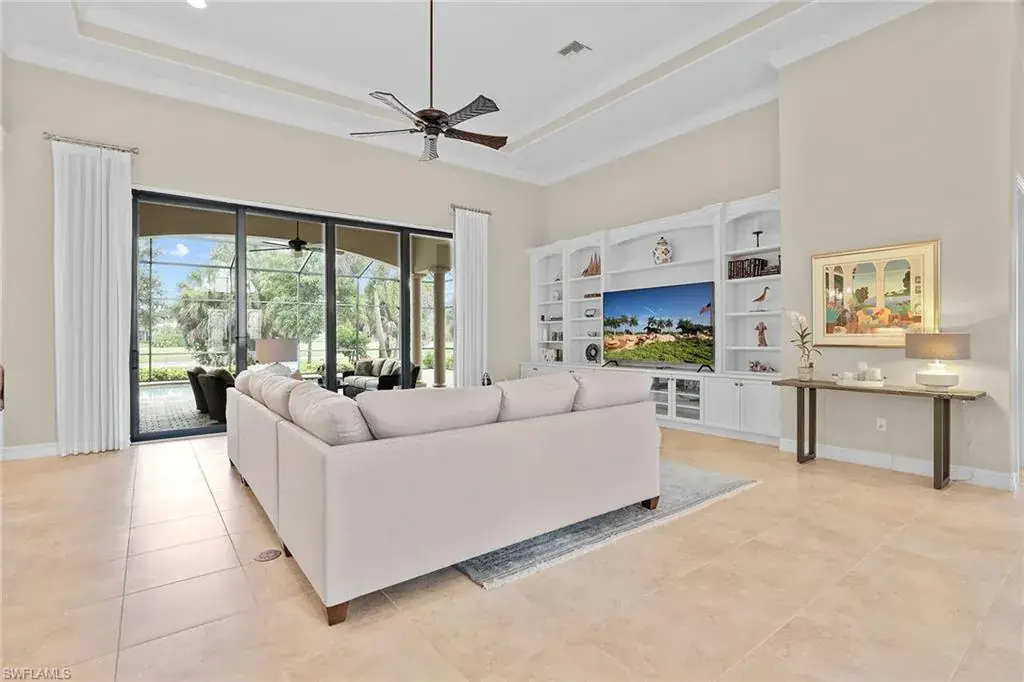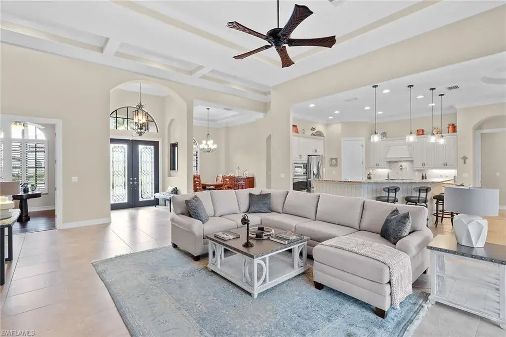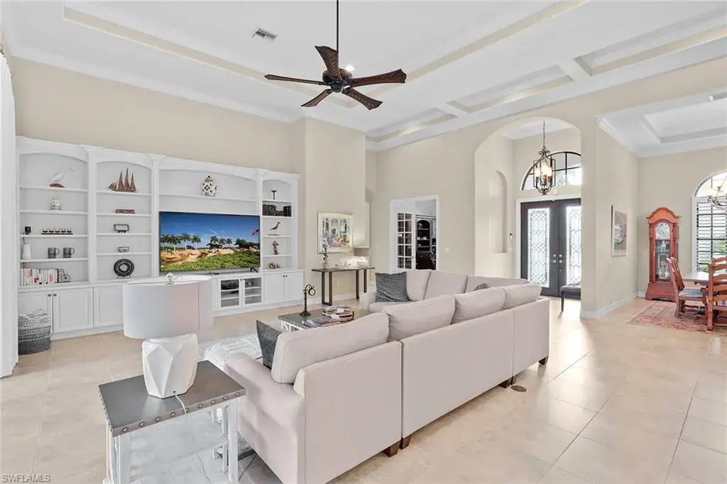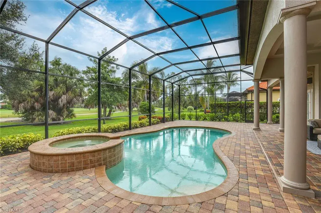 In the esteemed guard-gated Classics Plantation Estates at Lely Resort, this stunning great-room Muirfield model is a standout. Positioned on a generous premium lot with serene golf course vistas, this impeccably maintained estate offers ample space with four bedrooms, a den, and 3.5 bathrooms. Brimming with modern enhancements, it features plantation shutters, electric rolldown hurricane shutters, custom built-ins, fresh paint, and elegant crown molding throughout. The expansive covered lanai includes a vented gas outdoor kitchen, while the large screened area envelops a heated pool and spa, creating an entertainer’s paradise. The gourmet kitchen has custom light wood cabinetry, granite countertops, stainless steel appliances, gas cooktop and walk-in pantry. Conveniently just minutes from the beaches of Old Naples and Marco Island. Enjoy the highly renowned Players Club & Spa which offers resort-style swimming pools, state-of-the-art tennis and pickleball facility, fitness center, bocce ball, several restaurants, tiki bar and grill, billiards room, theater room and spa. Lely Resort is also home to three championship 18-hole golf courses.