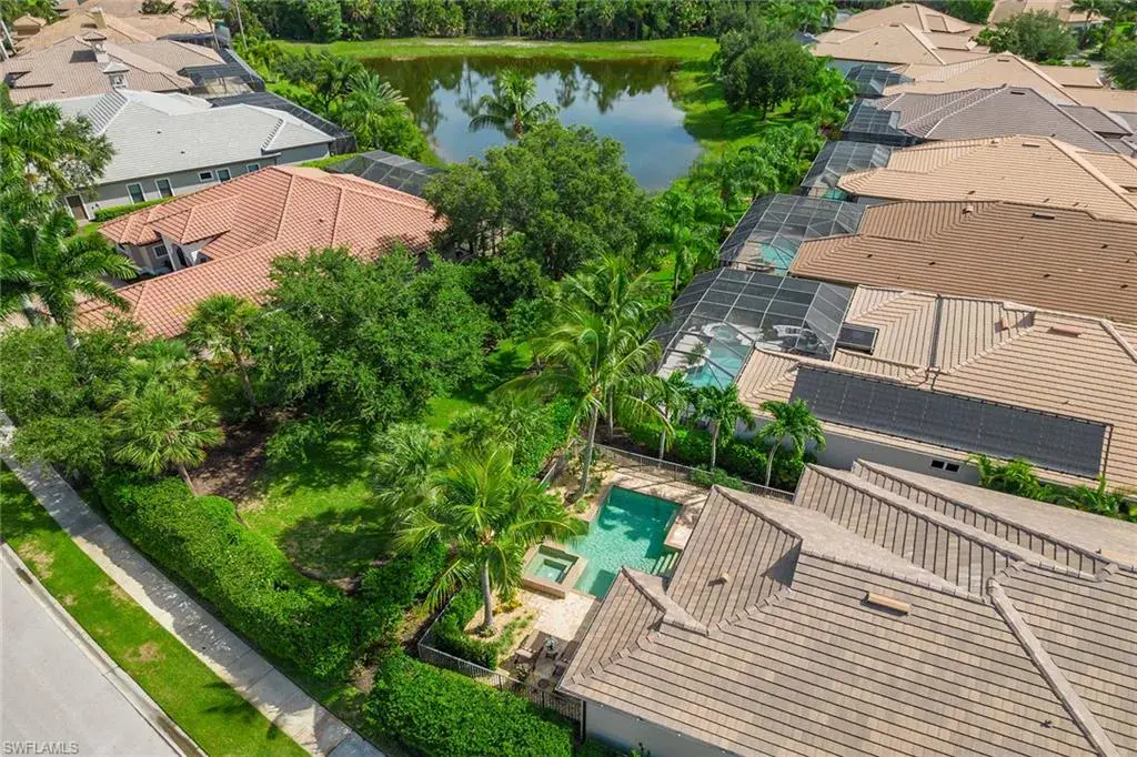 Welcome to an exquisite residence in the prestigious Classics Plantation Estates at Lely Resort, where luxury and comfort harmonize effortlessly. This stunning home offers 3,099 square feet of living space with three bedrooms, a den, three full baths, one-half bath, a two-car garage and upscale amenities. On a private cul-de-sac with northwest exposure, this home features an elegant tile roof, impact doors and windows, and a wide paver driveway and walkway. The private lanai includes a brick paver floor, covered outdoor living area with recessed lighting and a fully equipped outdoor kitchen with a built-in gas grill, hood, mini fridge and tile backsplash. The heated pool and spa, with waterfall feature, create an idyllic retreat. The home is turnkey furnished with tile flooring in the main living areas and a split bedroom concept for privacy. Enjoy a state-of-the-art Bose surround sound system that enhances your entertainment experience. The kitchen is a chef’s dream, equipped with custom wooden cabinets, under-cabinet lighting, granite countertops, recessed lighting, a tile backsplash, a four-seater breakfast bar and a center island with storage. Top-of-the-line KitchenAid appliances complete this culinary space. Adjacent to the kitchen is a dining area with a bank of windows overlooking the pool, plantation shutters and lanai access through a glass door. The formal dining room features custom wood trim, a tray ceiling and tall windows, while the living room offers glass sliders opening to the lanai and a custom wood built-in entertainment center. The owner’s suite is a sanctuary with lanai access, plantation shutters, a walk-in closet with custom built-ins, and an en-suite bath featuring dual vanities, a walk-in shower with a glass enclosure and a separate soaking tub. Both guest bedrooms are designed with comfort in mind, one with a private garden view, a walk-in closet and an en-suite bath with a vanity and shower-tub combo, and the other with tall windows, a walk-in closet, and an en-suite bath with a vanity and walk-in shower with a glass enclosure. The den, with its custom tray ceiling, glass French doors and custom-built cabinets with a seating area by the window, offers an ideal space for work or relaxation. The powder bath is adorned with wood trim and crown molding. The laundry room provides ample storage with white cabinets, a utility sink, a Whirlpool top-load washer and a Whirlpool front-load dryer. The spacious garage completes this exceptional home. Residents of Lely Resort enjoy unrivaled amenities, including access to The Player’s Club & Spa, a 15-acre tropical oasis and three golf courses, including a members-only course and two resort courses open to the public. Close to Marco Island and downtown Naples, this home offers an ideal blend of luxury living and convenience. Welcome to your new home in the serene and lush community of Classics Plantation Estates at Lely Resort.