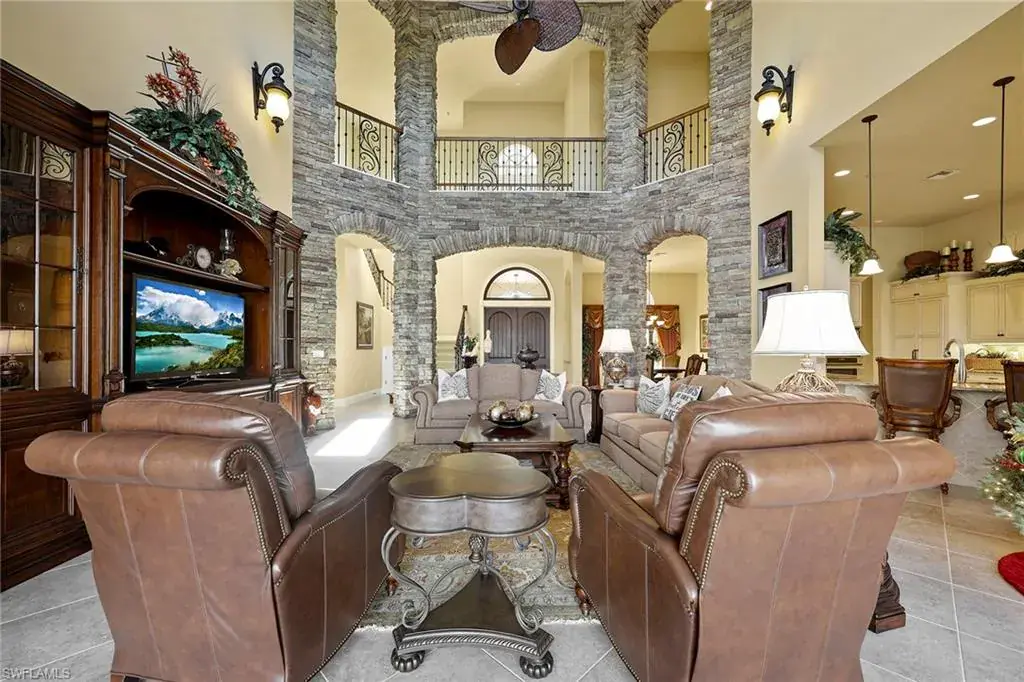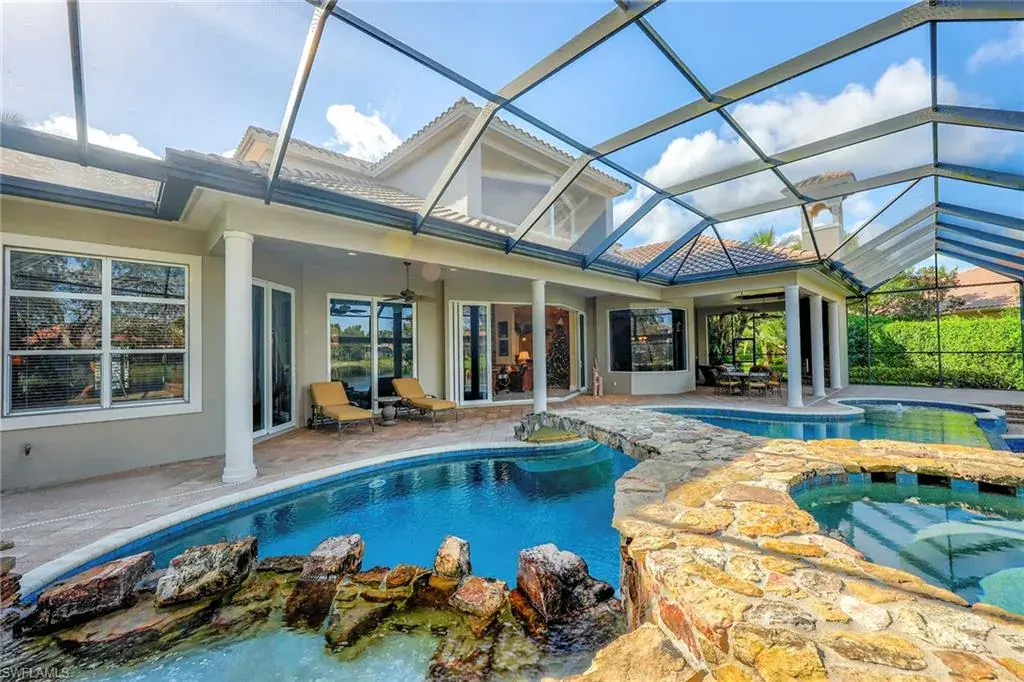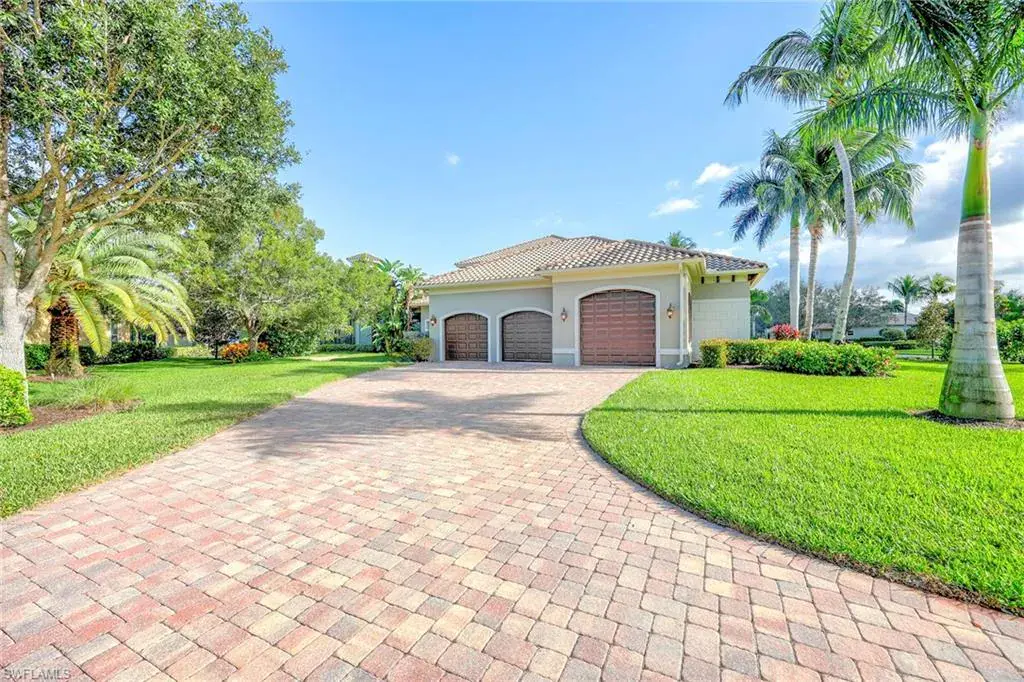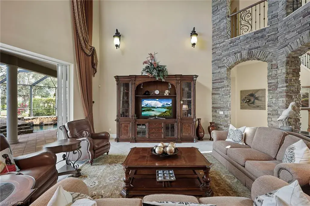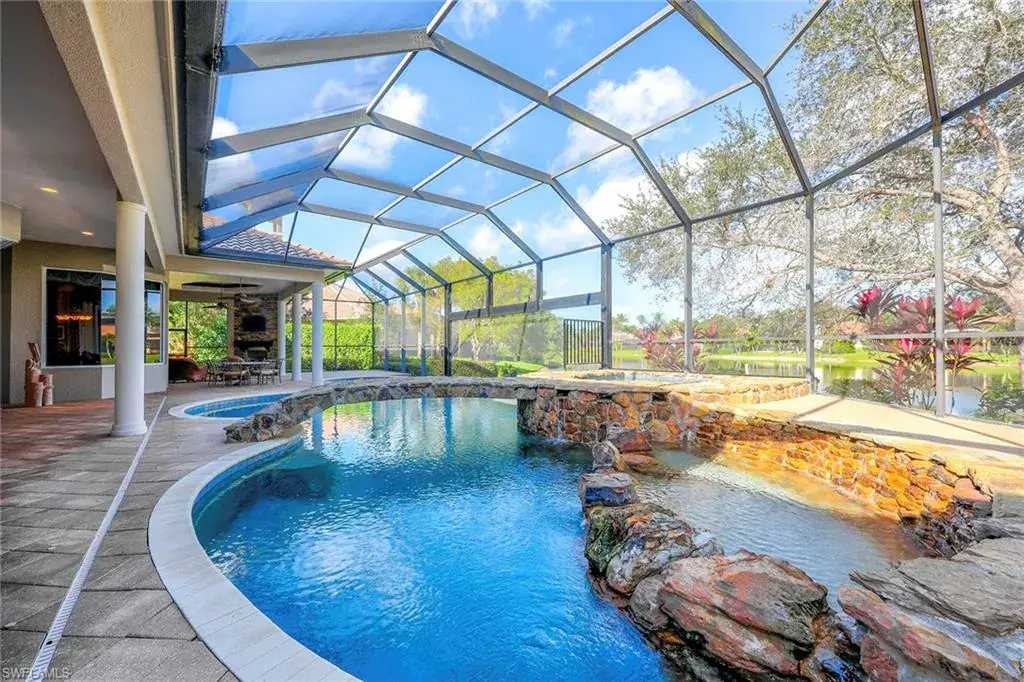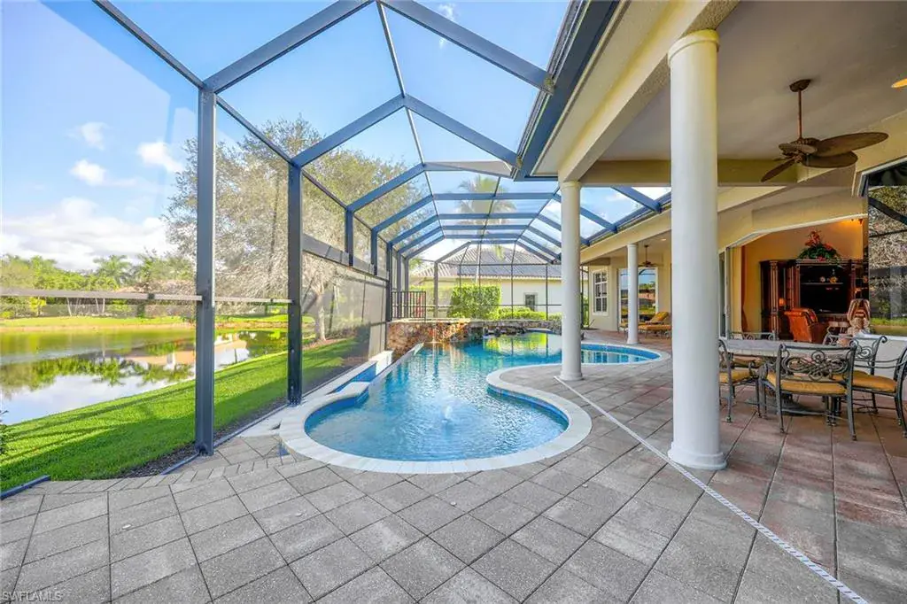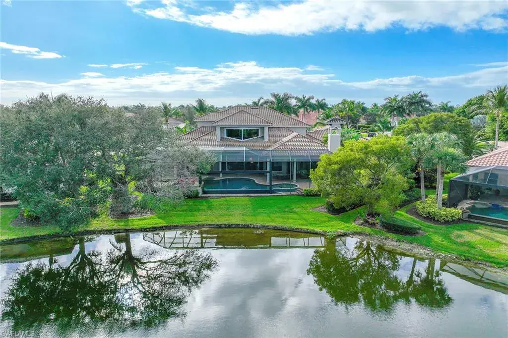 Uncover refined luxury in this exquisitely designed custom estate, crafted by Lundstrum Development Corporation. In the prestigious guard-gated Classics Plantation Estates at Lely Resort, this breathtaking residence commands attention. Set on a generous corner lot with expansive lake frontage, it seamlessly blends sophistication with tranquil outdoor living. This architectural gem offers five bedrooms, a versatile den, four full baths and an expansive four-car garage. Elevated with premium upgrades, including granite countertops, elegant crown molding, a cozy gas fireplace and a fully equipped outdoor kitchen. Retreat to your private sanctuary, featuring a gas-heated negative edge pool, a raised spa and a picturesque bridge. The 23-foot volume ceilings add grandeur, while oversized walk-in closets and an outdoor balcony enhance the living experience. Enjoy immediate access to the Players Club & Spa, renowned for its resort-style amenities. Embrace the lifestyle of Lely Resort, where three championship 18-hole golf courses await, ensuring a balance of leisure and recreation. This is more than a home, it’s a sanctuary for those seeking the pinnacle of upscale living.