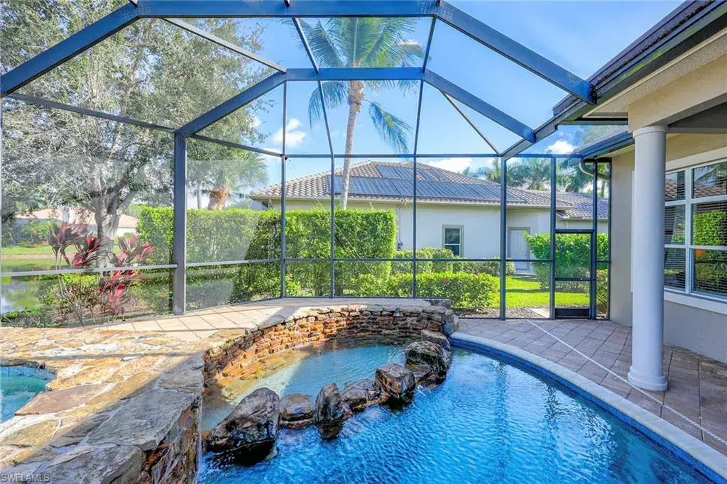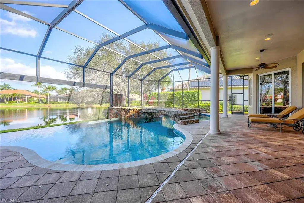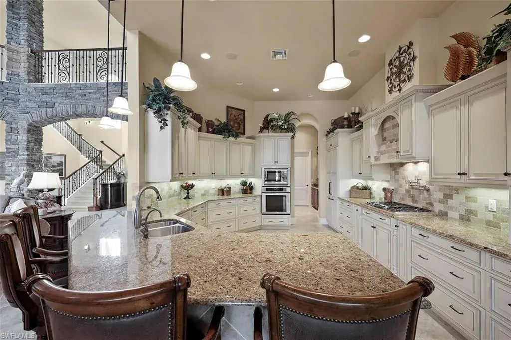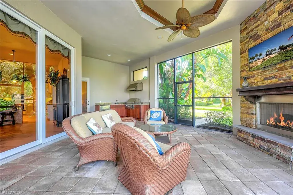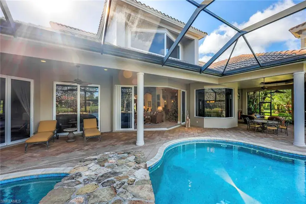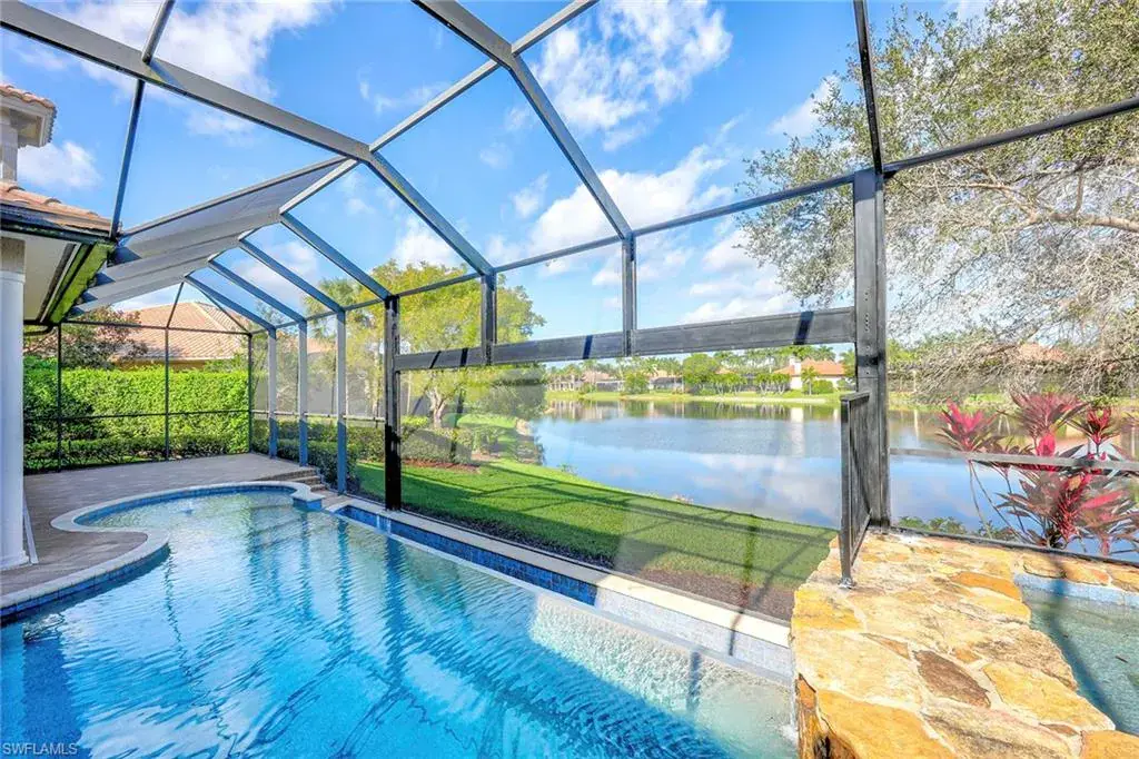 Uncover refined luxury in this exquisitely designed custom estate, crafted by Lundstrum Development Corporation. In the prestigious guard-gated Classics Plantation Estates at Lely Resort, this breathtaking residence commands attention. Set on a generous corner lot with expansive lake frontage, it seamlessly blends sophistication with tranquil outdoor living. This architectural gem offers five bedrooms, a versatile den, four full baths and an expansive four-car garage. Elevated with premium upgrades, including granite countertops, elegant crown molding, a cozy gas fireplace and a fully equipped outdoor kitchen. Retreat to your private sanctuary, featuring a gas-heated negative edge pool, a raised spa and a picturesque bridge. The 23-foot volume ceilings add grandeur, while oversized walk-in closets and an outdoor balcony enhance the living experience. Enjoy immediate access to the Players Club & Spa, renowned for its resort-style amenities. Embrace the lifestyle of Lely Resort, where three championship 18-hole golf courses await, ensuring a balance of leisure and recreation. This is more than a home, it’s a sanctuary for those seeking the pinnacle of upscale living.