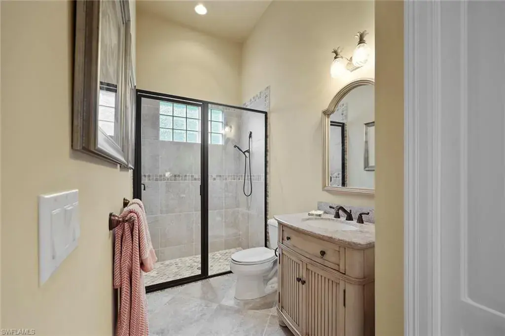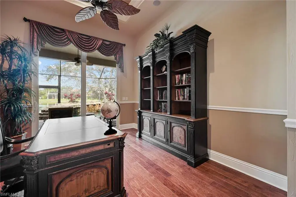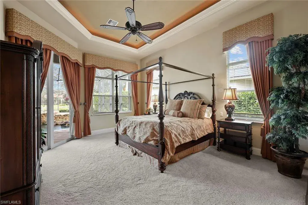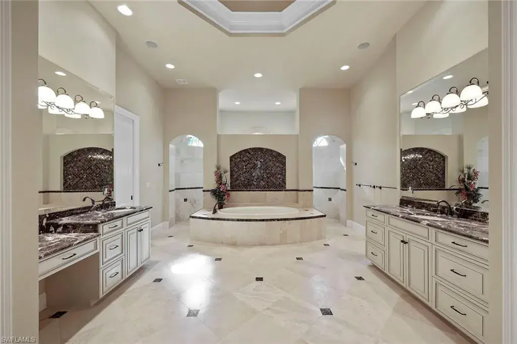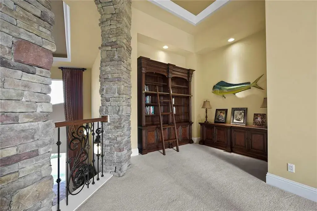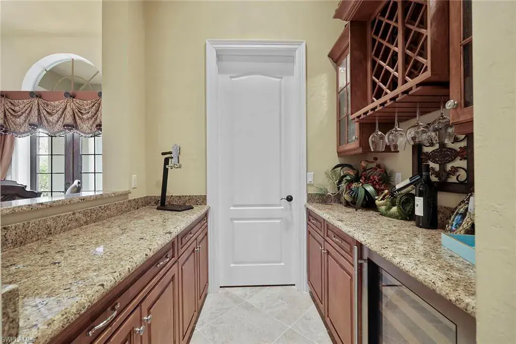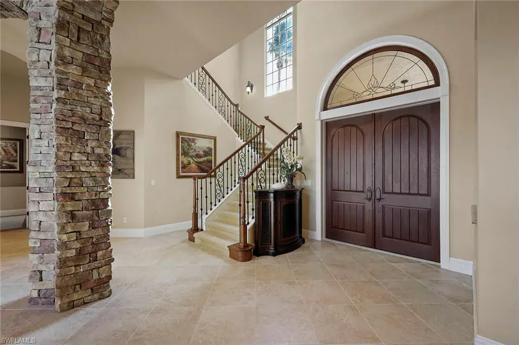 Uncover refined luxury in this exquisitely designed custom estate, crafted by Lundstrum Development Corporation. In the prestigious guard-gated Classics Plantation Estates at Lely Resort, this breathtaking residence commands attention. Set on a generous corner lot with expansive lake frontage, it seamlessly blends sophistication with tranquil outdoor living. This architectural gem offers five bedrooms, a versatile den, four full baths and an expansive four-car garage. Elevated with premium upgrades, including granite countertops, elegant crown molding, a cozy gas fireplace and a fully equipped outdoor kitchen. Retreat to your private sanctuary, featuring a gas-heated negative edge pool, a raised spa and a picturesque bridge. The 23-foot volume ceilings add grandeur, while oversized walk-in closets and an outdoor balcony enhance the living experience. Enjoy immediate access to the Players Club & Spa, renowned for its resort-style amenities. Embrace the lifestyle of Lely Resort, where three championship 18-hole golf courses await, ensuring a balance of leisure and recreation. This is more than a home, it’s a sanctuary for those seeking the pinnacle of upscale living.