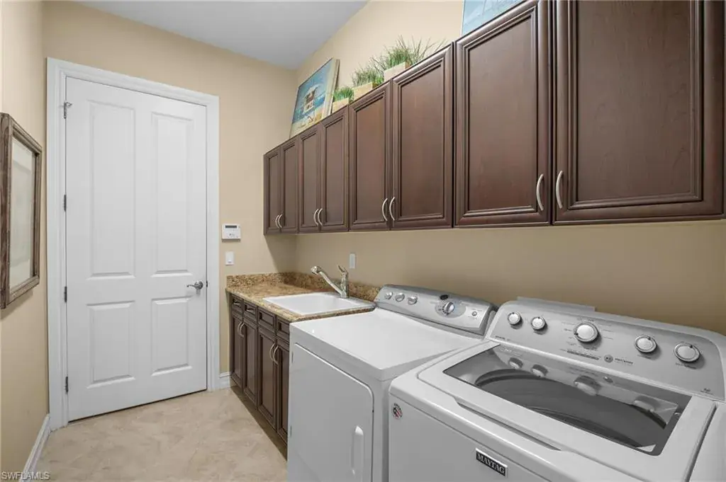 Fully equipped laundry room with access to a side-load three-car garage (includes a second refrigerator),