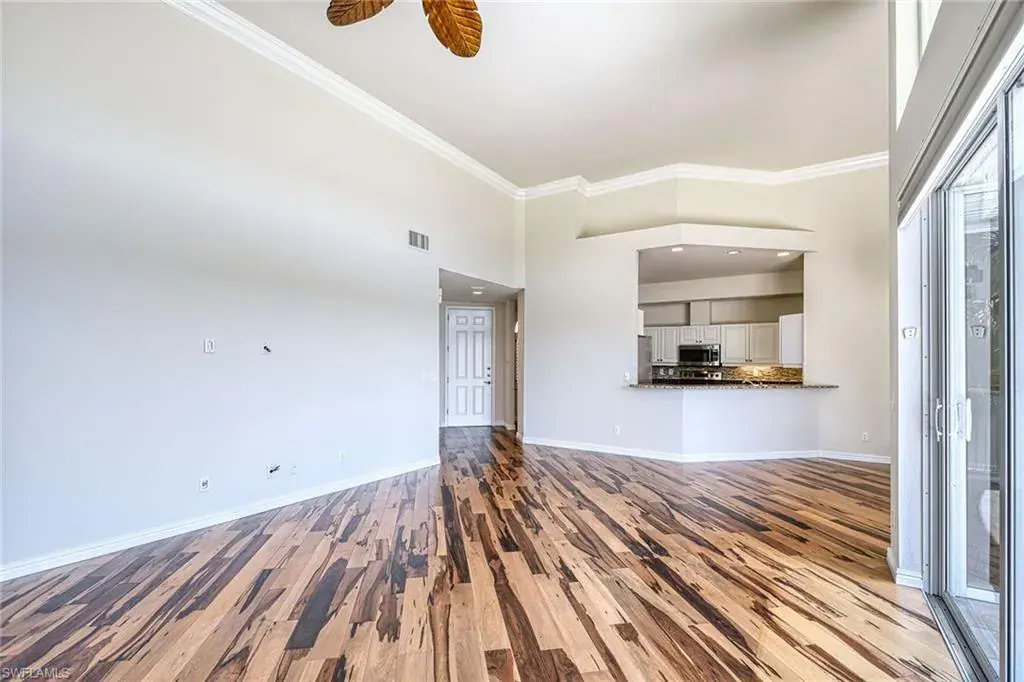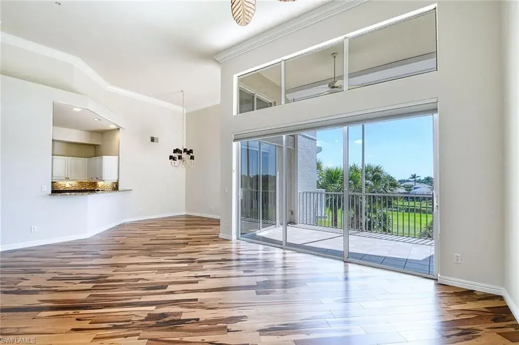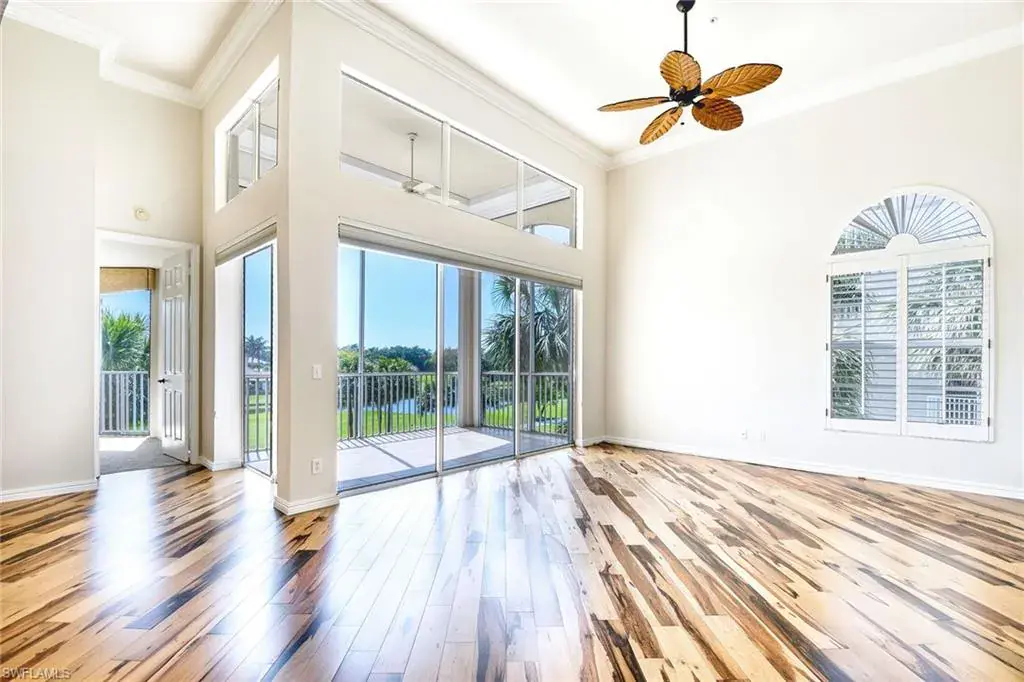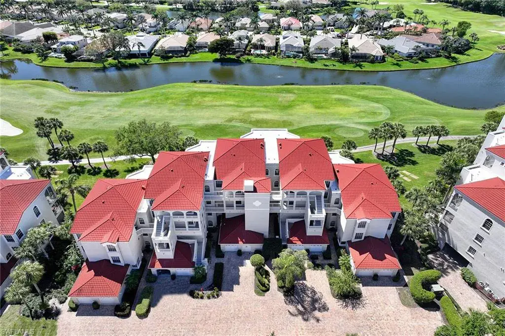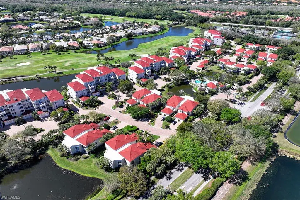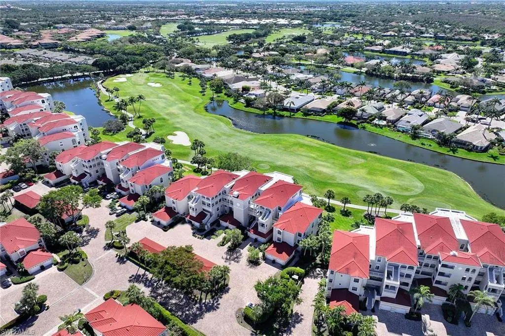 Enjoy breathtaking golf course and lake views from this spacious third-floor condominium in Pelican Marsh. Soaring vaulted ceilings and rich hardwood flooring enhance the open-concept design. The updated kitchen boasts white cabinetry, granite countertops, stainless steel appliances and a stylish backsplash. The primary suite features a cozy window nook, walk-in closet, private balcony access, and a spa-like bath with dual vanities, a soaking tub and a walk-in shower. Two guest bedrooms, a formal dining area, a dedicated laundry room and an attached garage add to the home’s appeal. In a sought-after community with resort-style amenities, including a clubhouse, fitness center, tennis courts and scenic walking trails. Move-in ready and designed for effortless Florida living. Explore acres of scenic paths through lush tropical landscapes and preserved natural areas. Pelican Marsh offers four gated access points, allowing quick and convenient access to upscale shopping, fine dining, The Mercato, Shoppes at Vanderbilt, Waterside Shops, Artis-Naples and beautiful beaches.