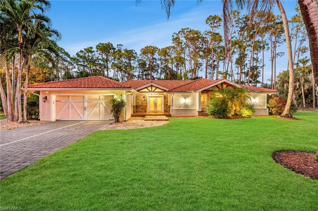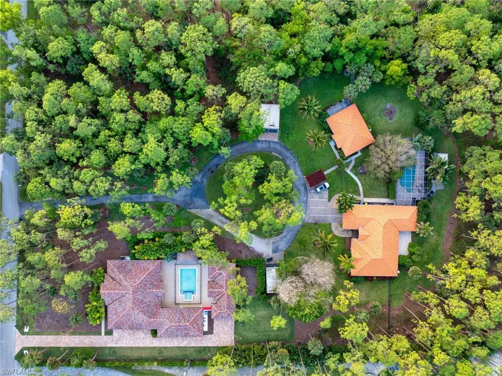 Discover endless opportunities on this stunning 2.53-acre parcel located off Coach House Lane, with an adjacent lot available as a package deal for a total of approximately 5 acres. The adjacent lot is designed as the ultimate guest compound! Enjoy privacy in this gated property, nestled in one of Naples’ most desirable areas, west of Airport-Pulling Road and south of Pine Ridge Road. It’s just minutes from the beautiful Lowdermilk Beach and the vibrant shopping and fine dining along 5th Avenue in Olde Naples. This expansive single-story residence features 4 bedrooms and 3 full bathrooms, along with an open-concept kitchen. Dive into the spacious in-ground pool or unwind in the adjacent jetted spa. For entertaining, the property includes a generous guest house with 2 additional bedrooms, a bathroom, a full kitchen, and a living area. Homeowners on Coach House Lane have leveraged the large, oversized lots to create their dream homes. This parcel is ideal for building a custom estate ranging from 7,000 to 10,000 square feet under air.