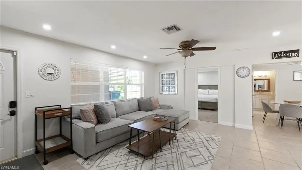 Rare opportunity to own this updated 4 Bedroom 2 Bath Single family home in the heart of Naples. Only 10 minute away from 5th Ave S and the white sandy beach. Conveniently located next to shopping, dining, coffee shops, community park and more. NO HOA RULES OR FEES. MOVE IN READY AND CLEAN. And the best part it comes fully furnished/turnkey. Updated kitchen granite, stainless steel appliances, white shaker cabinets. Great outdoor space with barbecue pad, a covered 10×20 lanai and large fenced backyard perfect for relaxing and entertaining guests. Circle concrete driveway with an extra parking. Attached carport and shed/shop 22.5 FT long. Great short term rental history. Whether for you or a rental income, this home has the potential for a perfect Naples getaway.