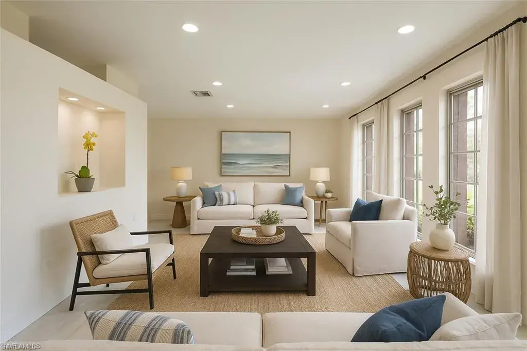 Brand NEW ROOF with 50-yr warranty shingles just installed in September 2025 and fresh neutral/white exterior paint in October 2025 and NO price increase! So centrally located near everything Naples has to offer! Hop on your boat from your backyard to the Gulf via the wide-open legendary Gordon River! The all-new bright OPEN kitchen has gorgeous views across your sparkling new pool to the canal, and features granite counters, new white shaker cabinetry, and new stainless Samsung appliances. This floorplan offers tremendous flexibility to suit your lifestyle including a large primary suite with new bathroom and oversized walk-in closet with wood built-ins, and boasts its own den/office or exercise area and lanai access. Plenty of room for family here with 2 large guest bedrooms and a newly renovated guest bath with linen closet, enclosed by its own pocket door for guests’ privacy, and nicely separated on the other side of the house from the primary suite. All beautiful new designer tile flooring throughout the home! The pool was completely redone with all new concrete/tile in 2022; the lanai was rescreened in 2019. AC is 2022 (compressor and ductwork) and 2019 (air handler). The systems in this home are essentially new including 2024 water heater, home completely re-piped (2023), electrical panel 2024, new driveway 2022, and new fans and LED lighting. Home priced to sell almost $200K below attached April 2025 appraisal! Feb. 2025 4-point inspection done for you and attached, although completed prior to new roof. Coconut River Estates has no rental restrictions and is one of Naples’ best-kept secrets, and is 10-12 minutes from beautiful beaches, renowned 5th Ave./3rd St. or Mercato or Waterside shopping and dining, or 5 minutes from scenic Naples Greenway biking/hiking! There are more and more Coconut River Estates homes valued well over $1-$2 million. VOLUNTARY HOA fee of $450/year is optional, and the amenities and activities are amazing, including a large heated pool, 4 pickleball courts, tennis, shuffleboard, basketball, clubhouse, playground, community boat dock, dog park, storage for boat trailers or kayaks/canoes, and activities such as tennis lessons, concerts and a family-friendly holiday parade! Note, many other homes in Coconut River do NOT offer boat access from your lot to the Gulf. So come make this YOUR new slice of PARADISE!